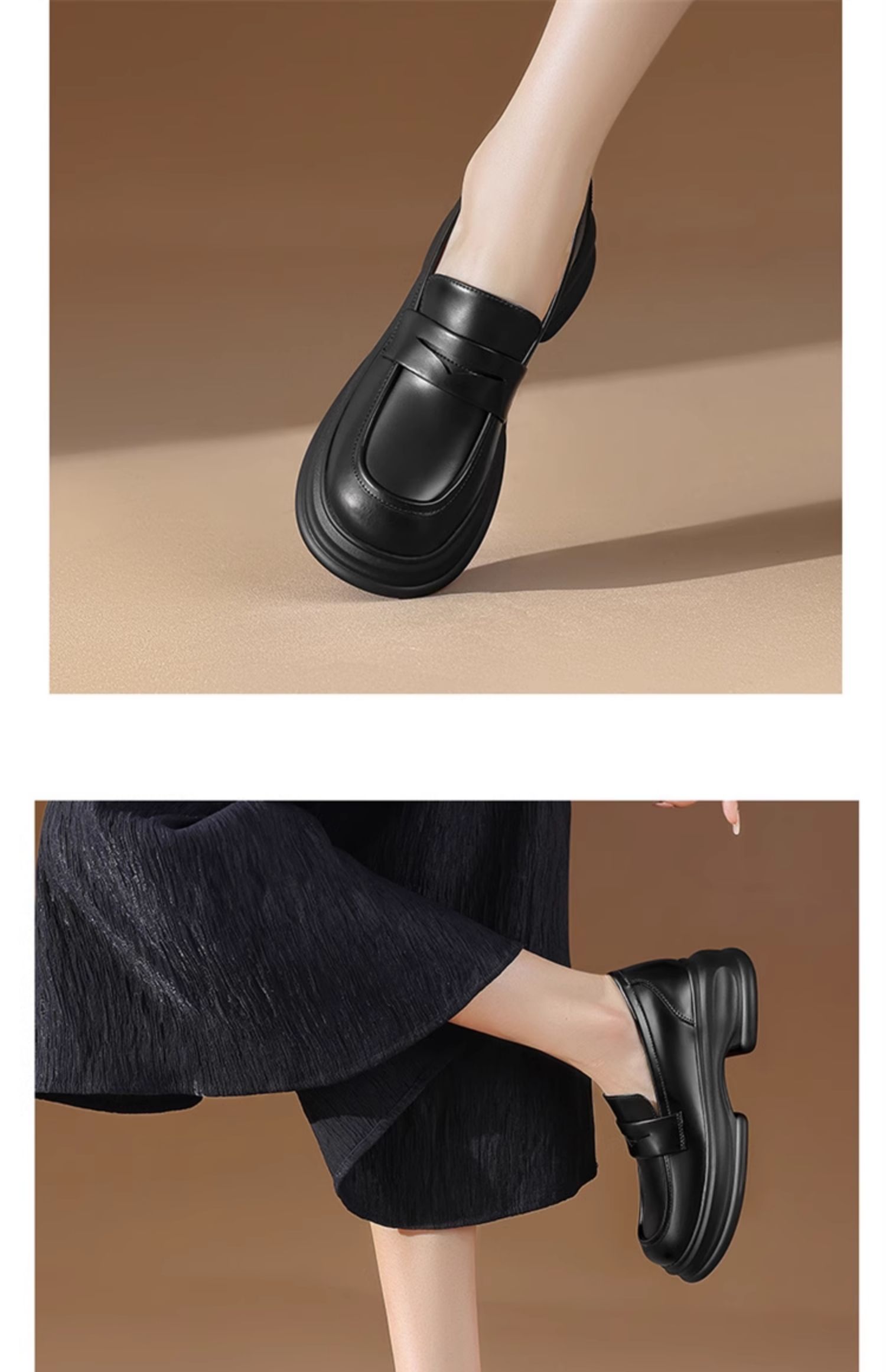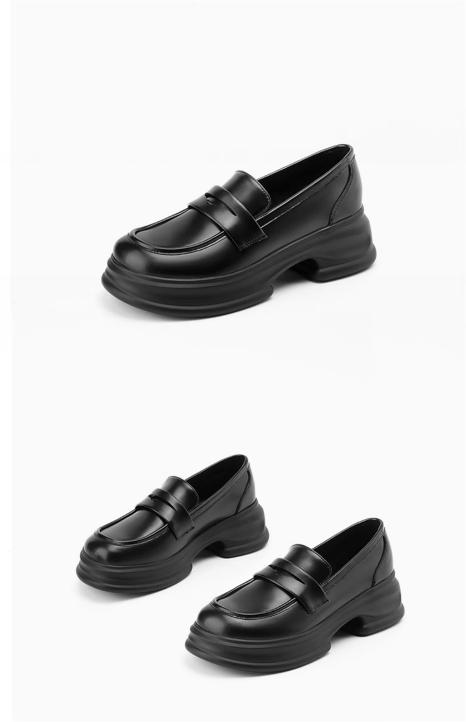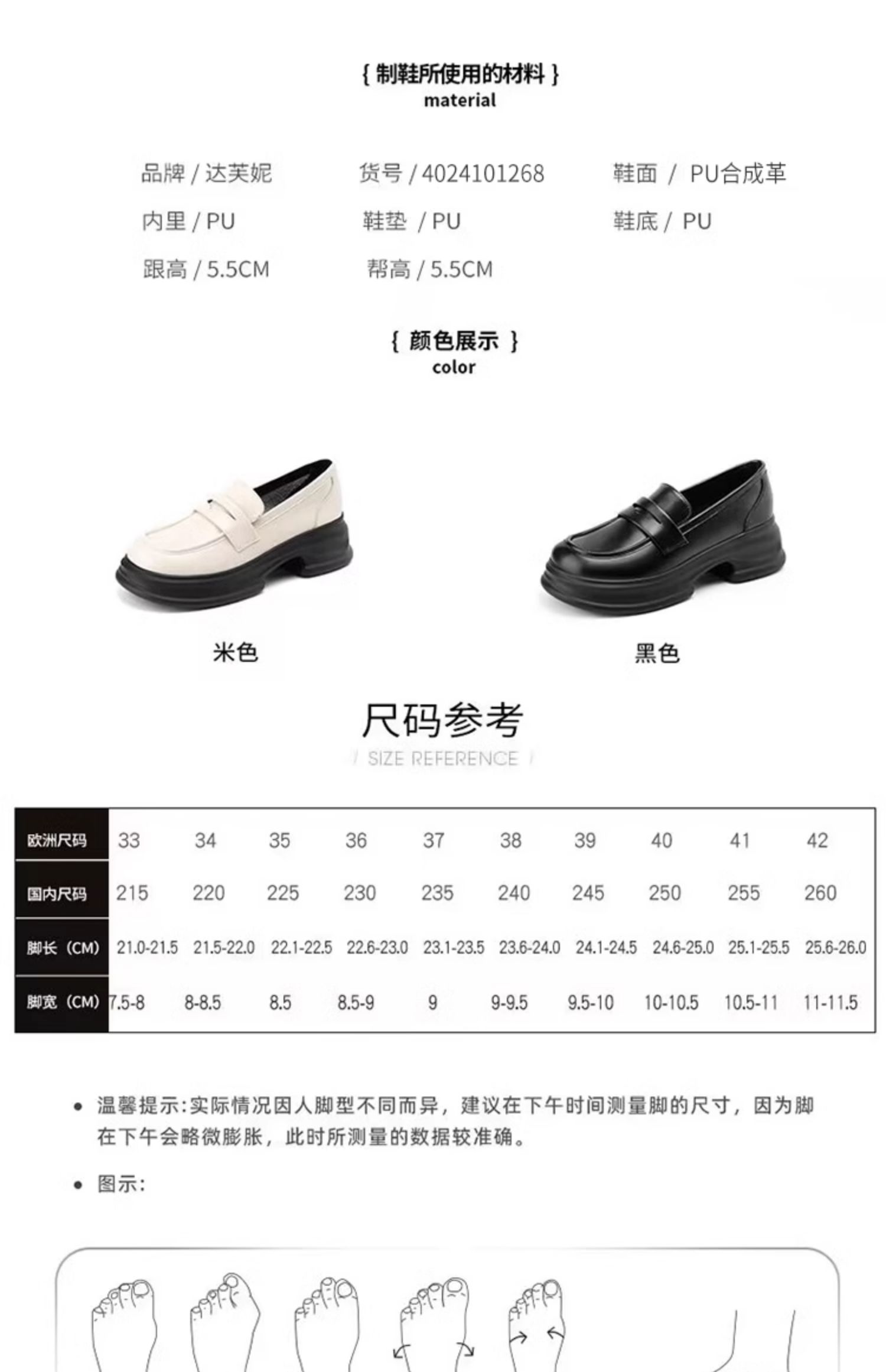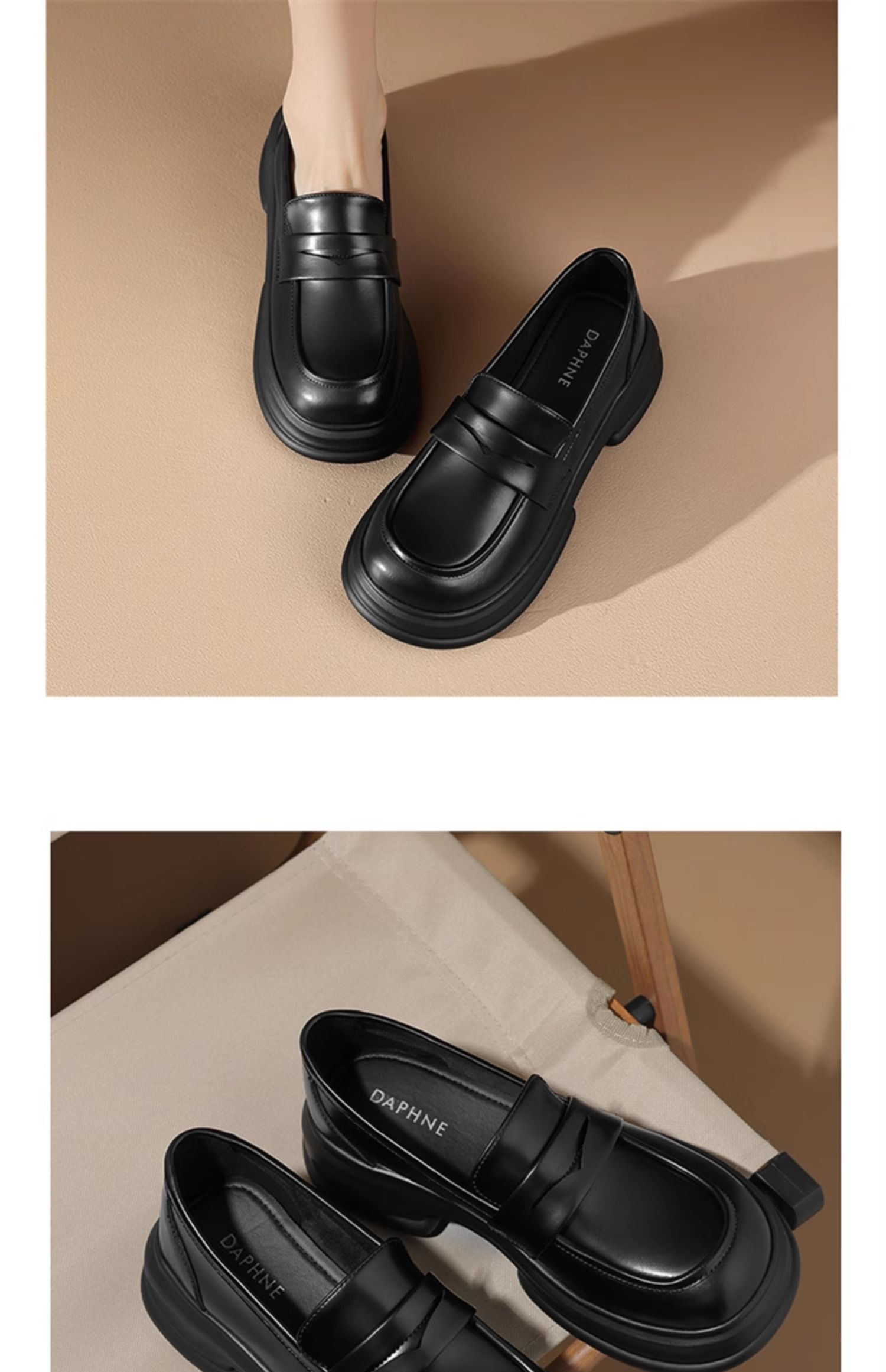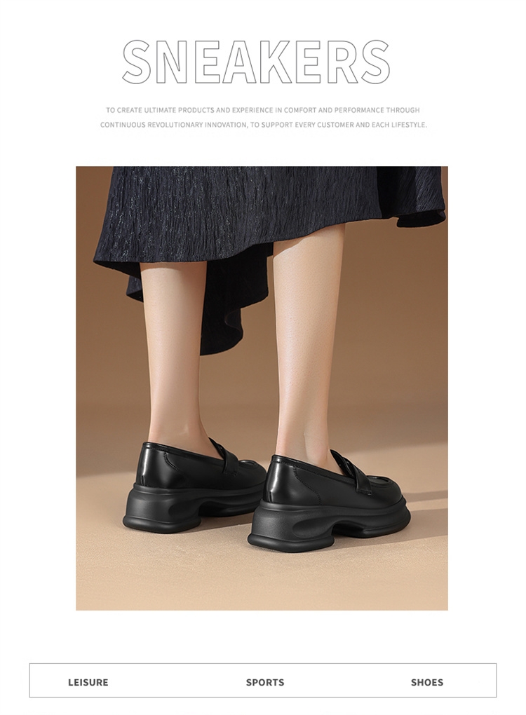 达芙妮厚底增高乐福鞋女新款夏季粗跟一脚蹬小皮鞋4024101268