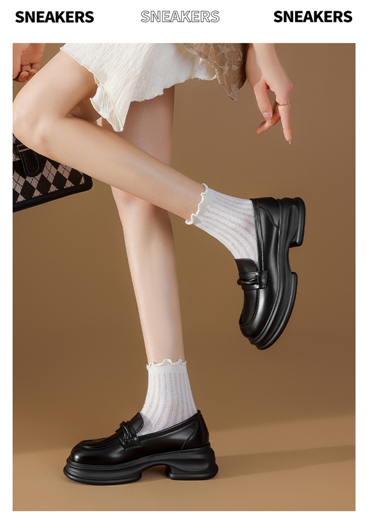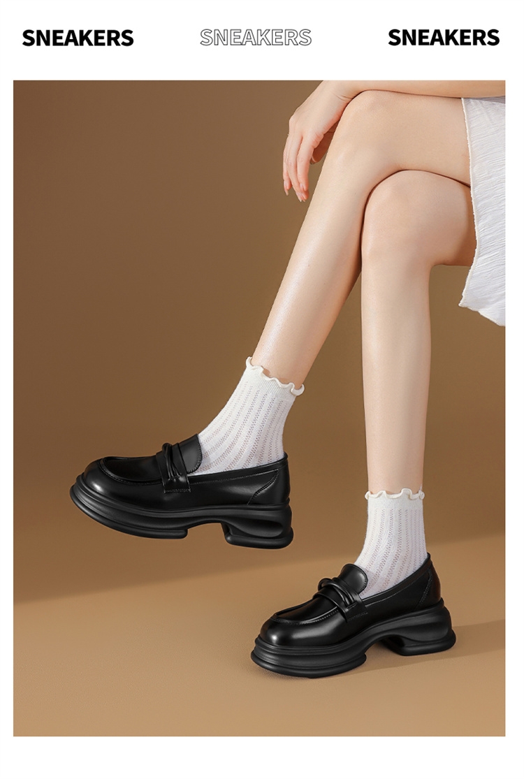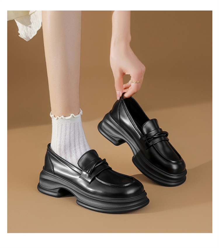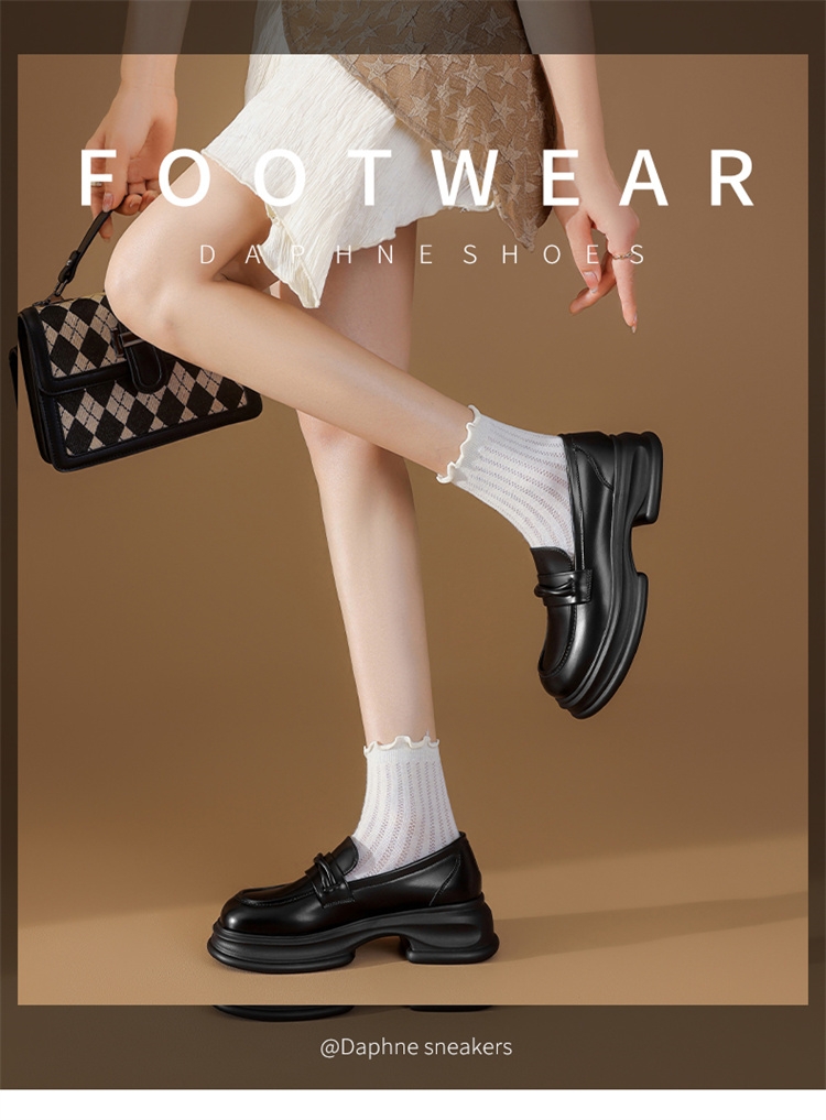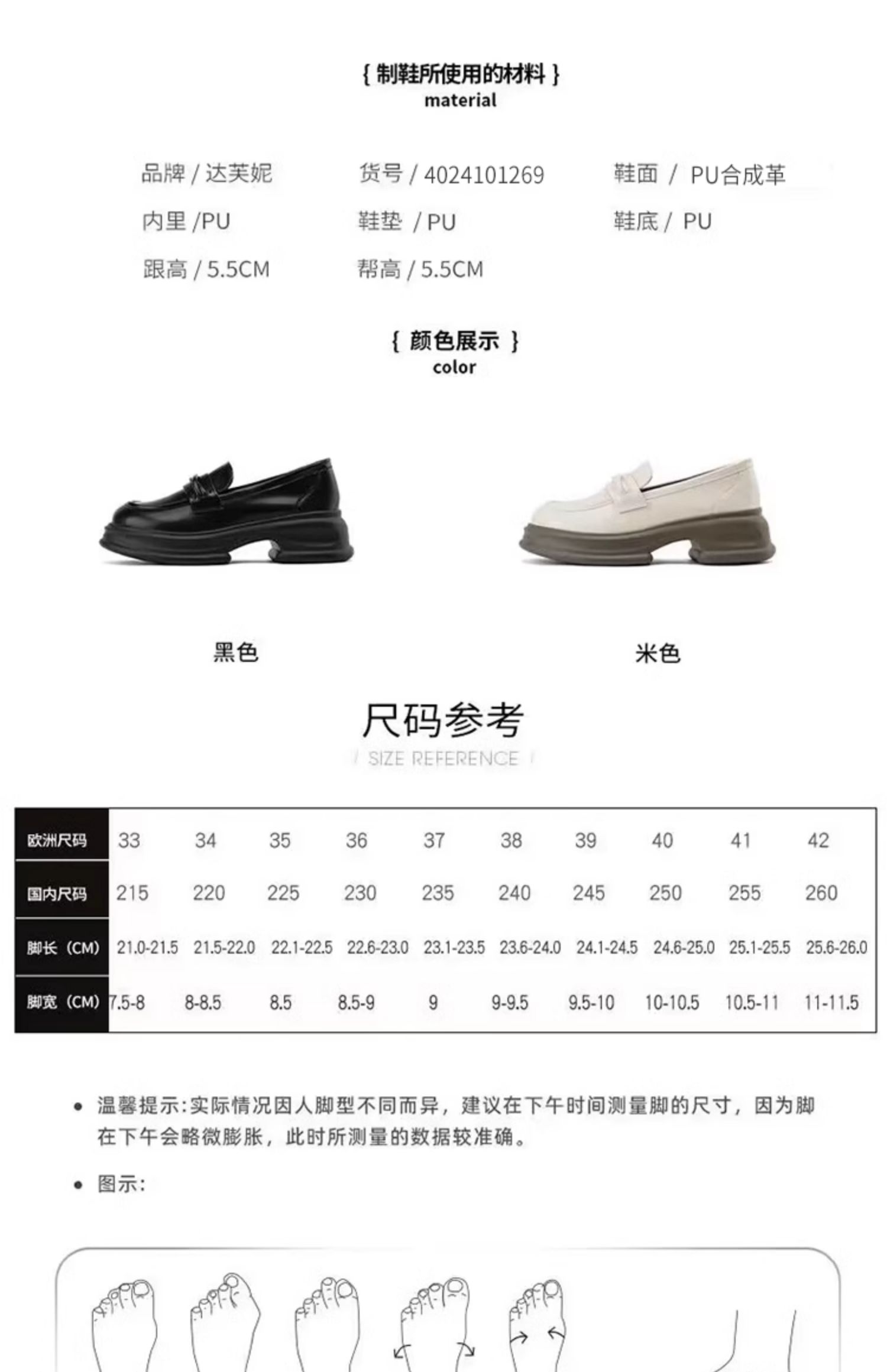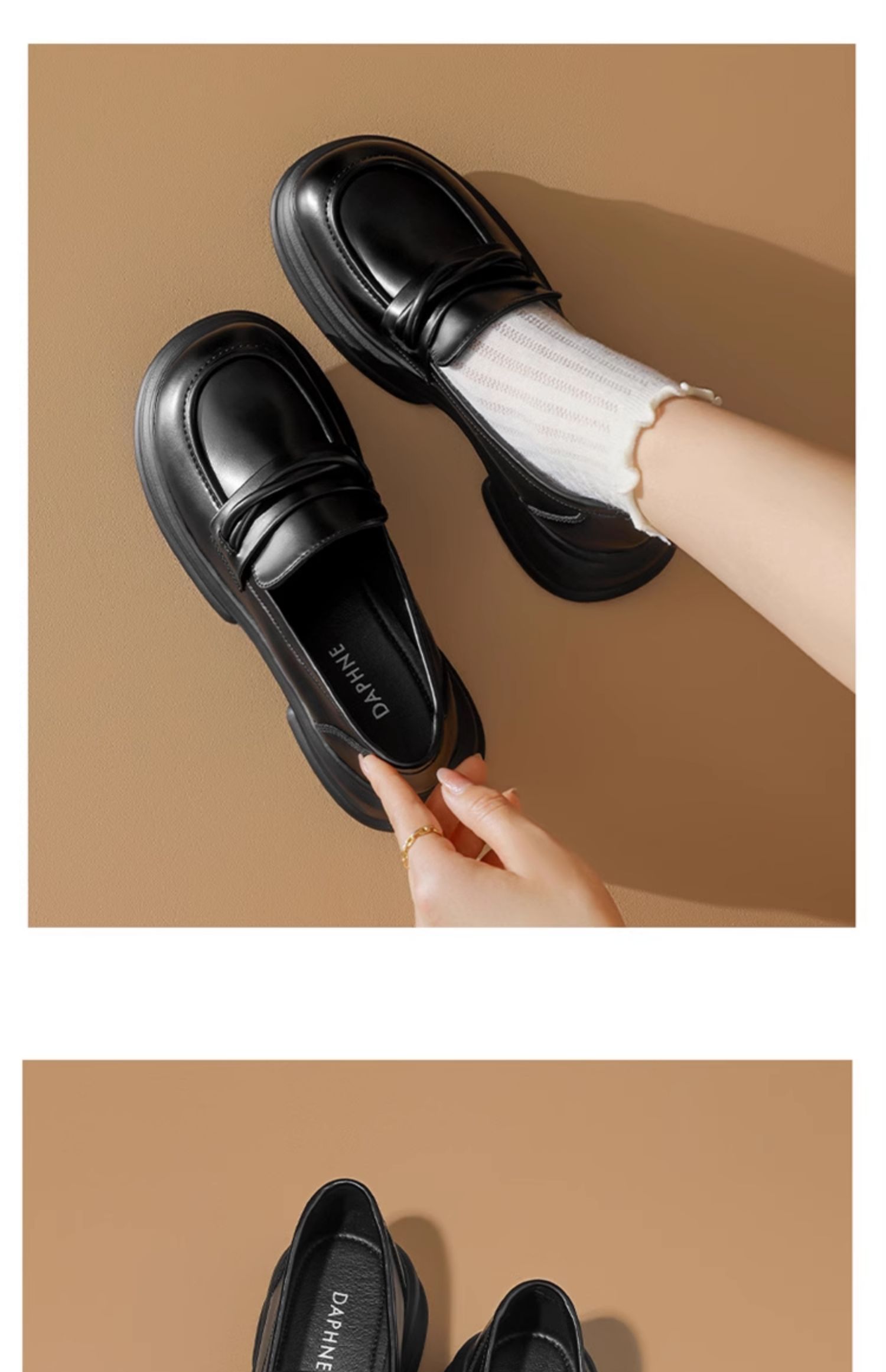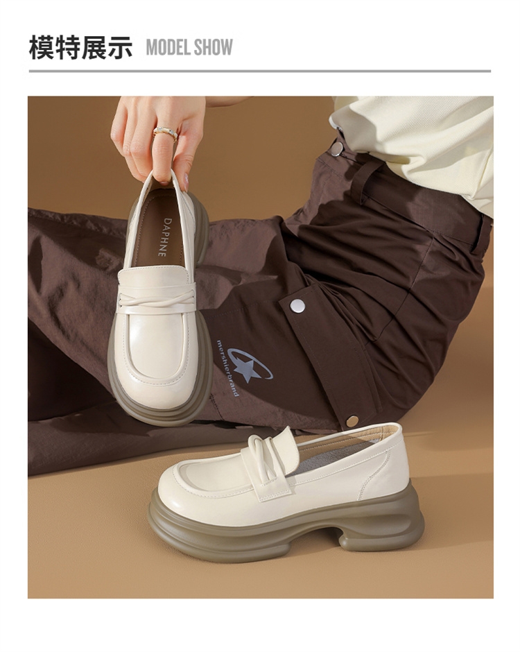 达芙妮厚底软底乐福鞋女新款夏季增高小皮鞋4024101269