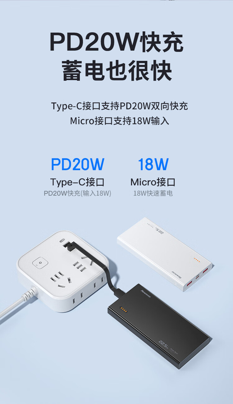纽曼(Newmine)10000毫安时大容量22.5W超级快充充电宝 双USB 轻薄款