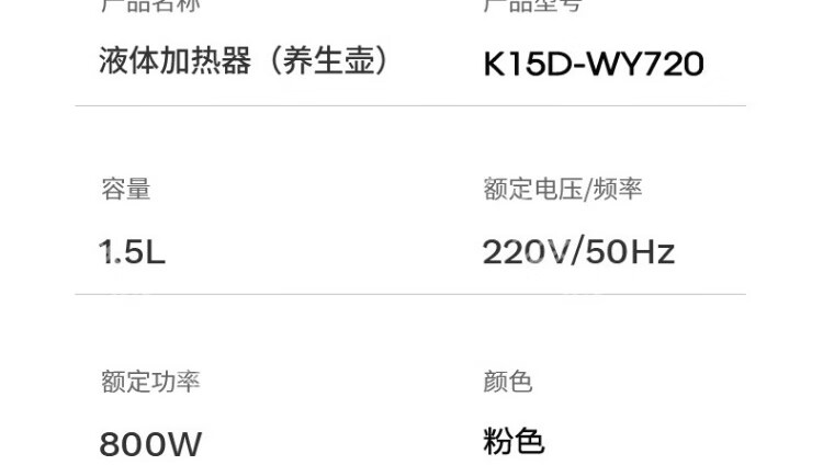 九阳(Joyoung)养生壶K15D-WY720 粉色多功能煮茶器电水壶开水煲