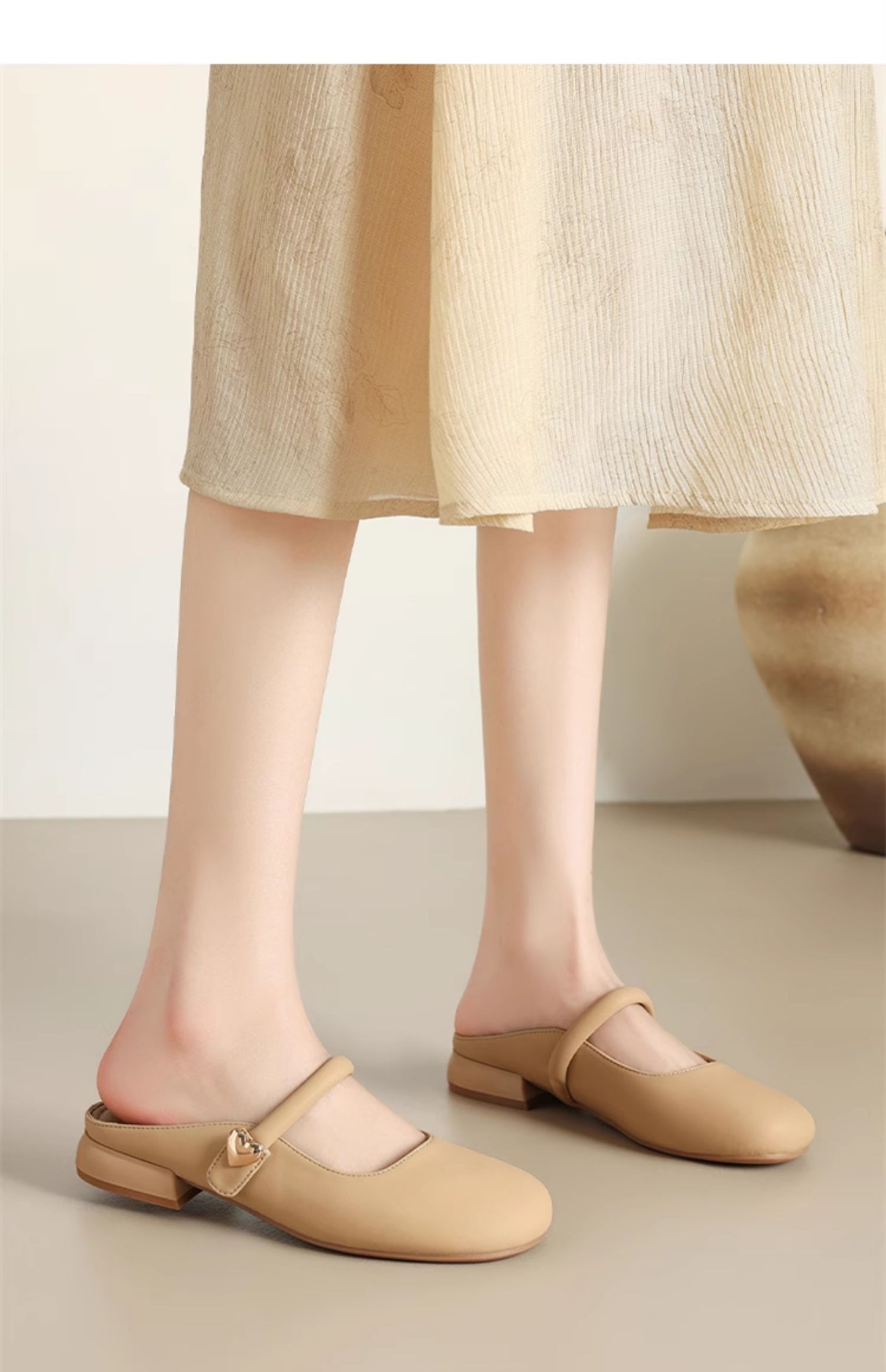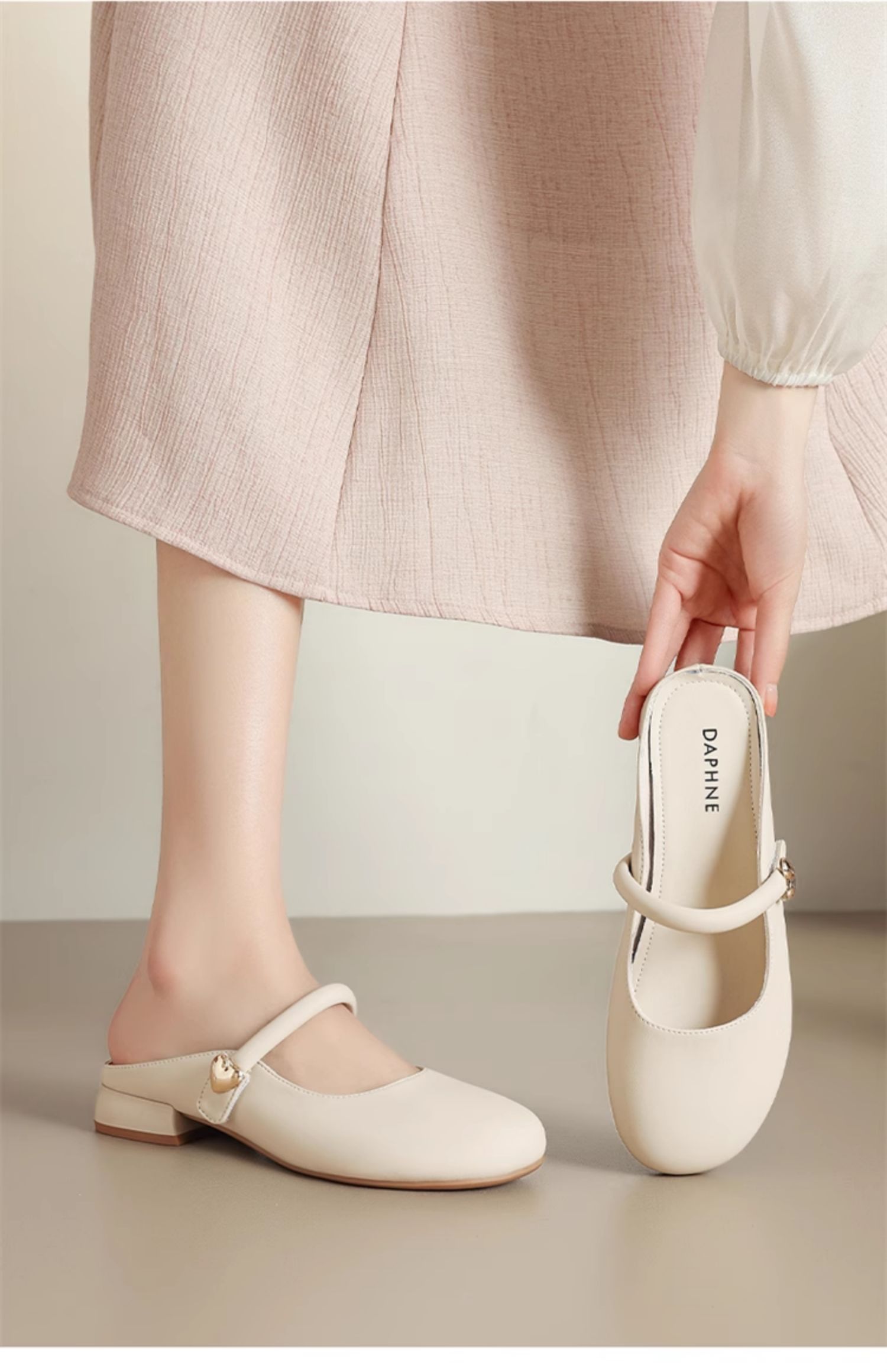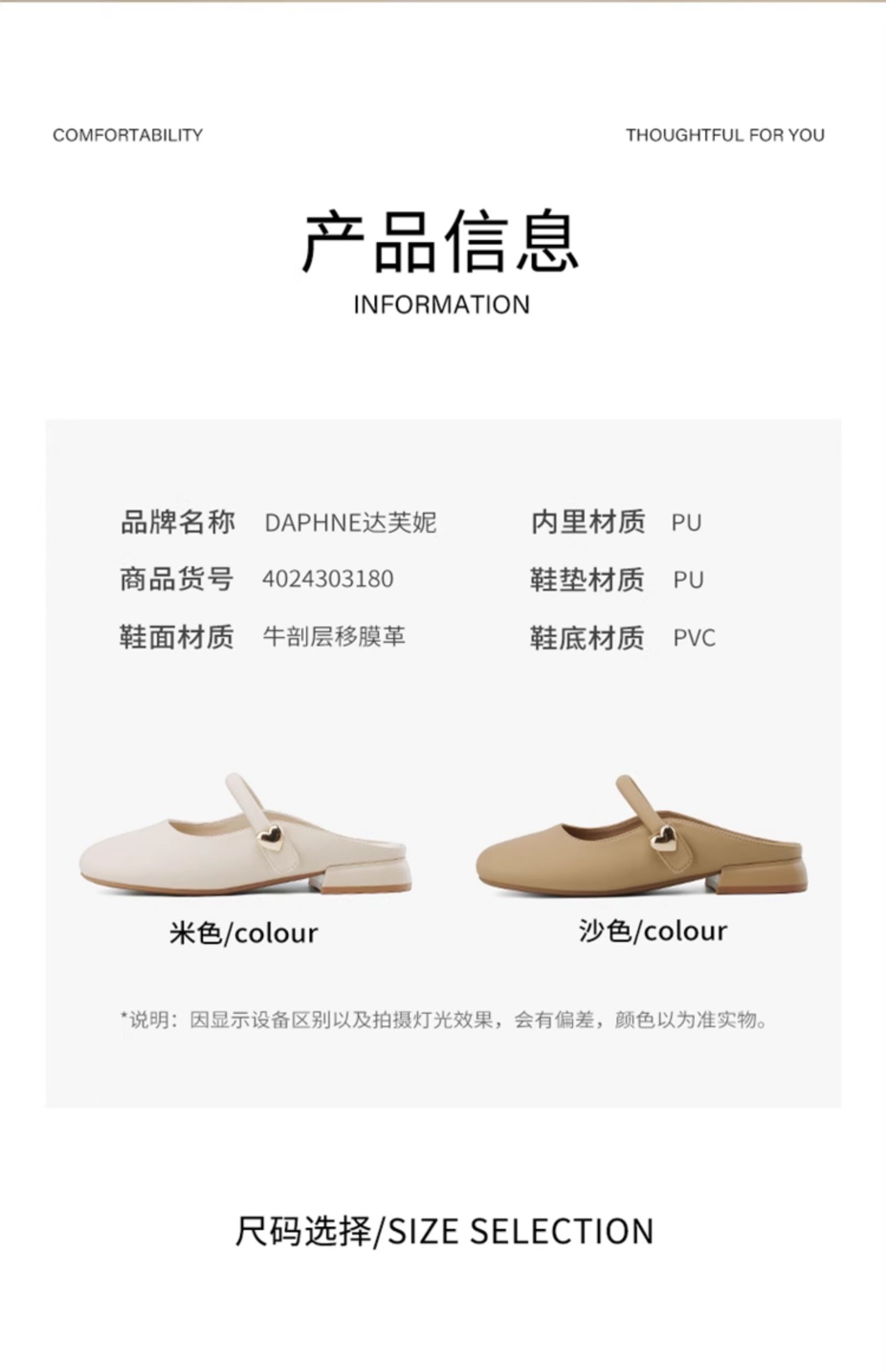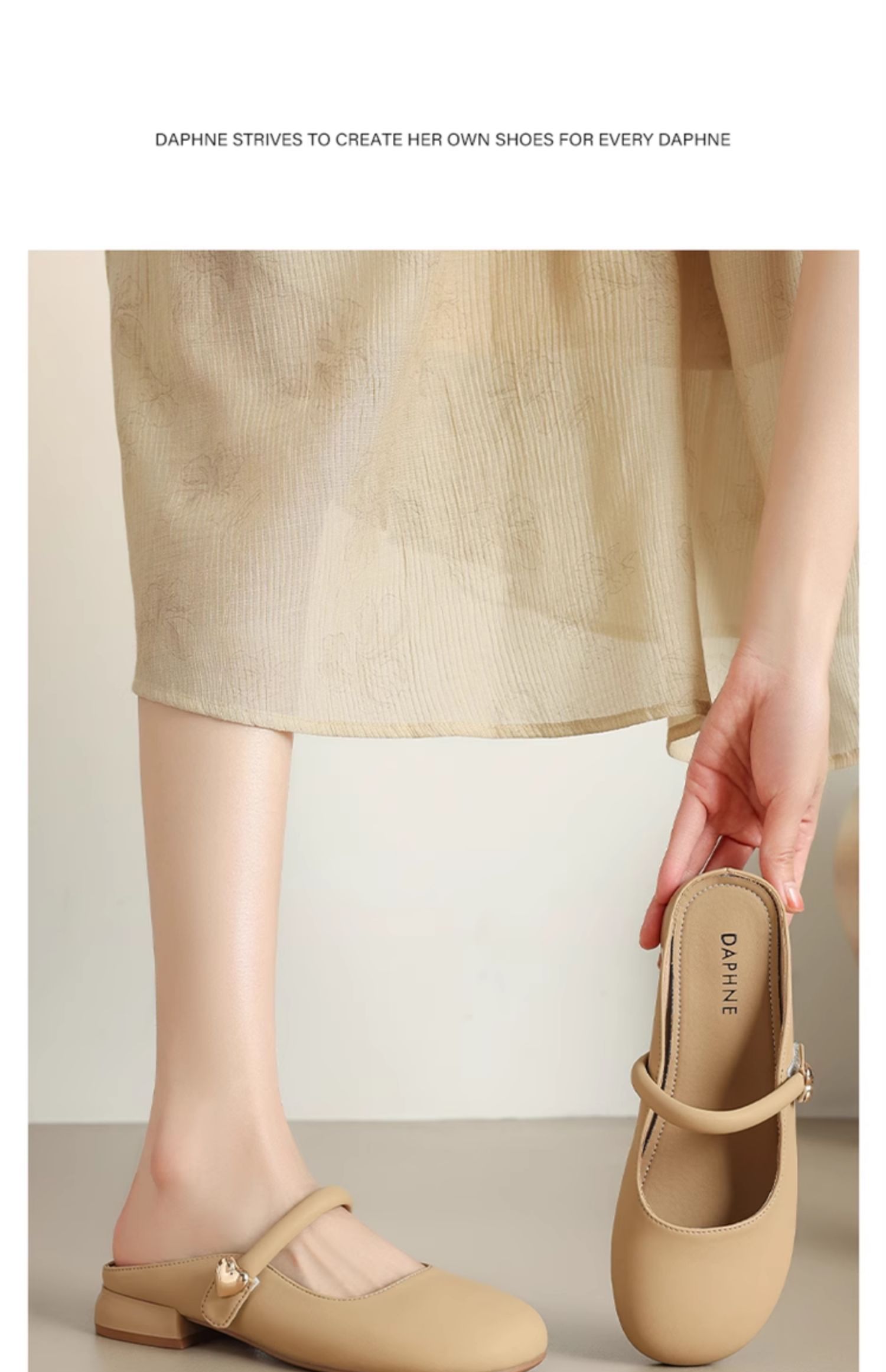 达芙妮包头半拖鞋外穿凉拖法式平底4024303180