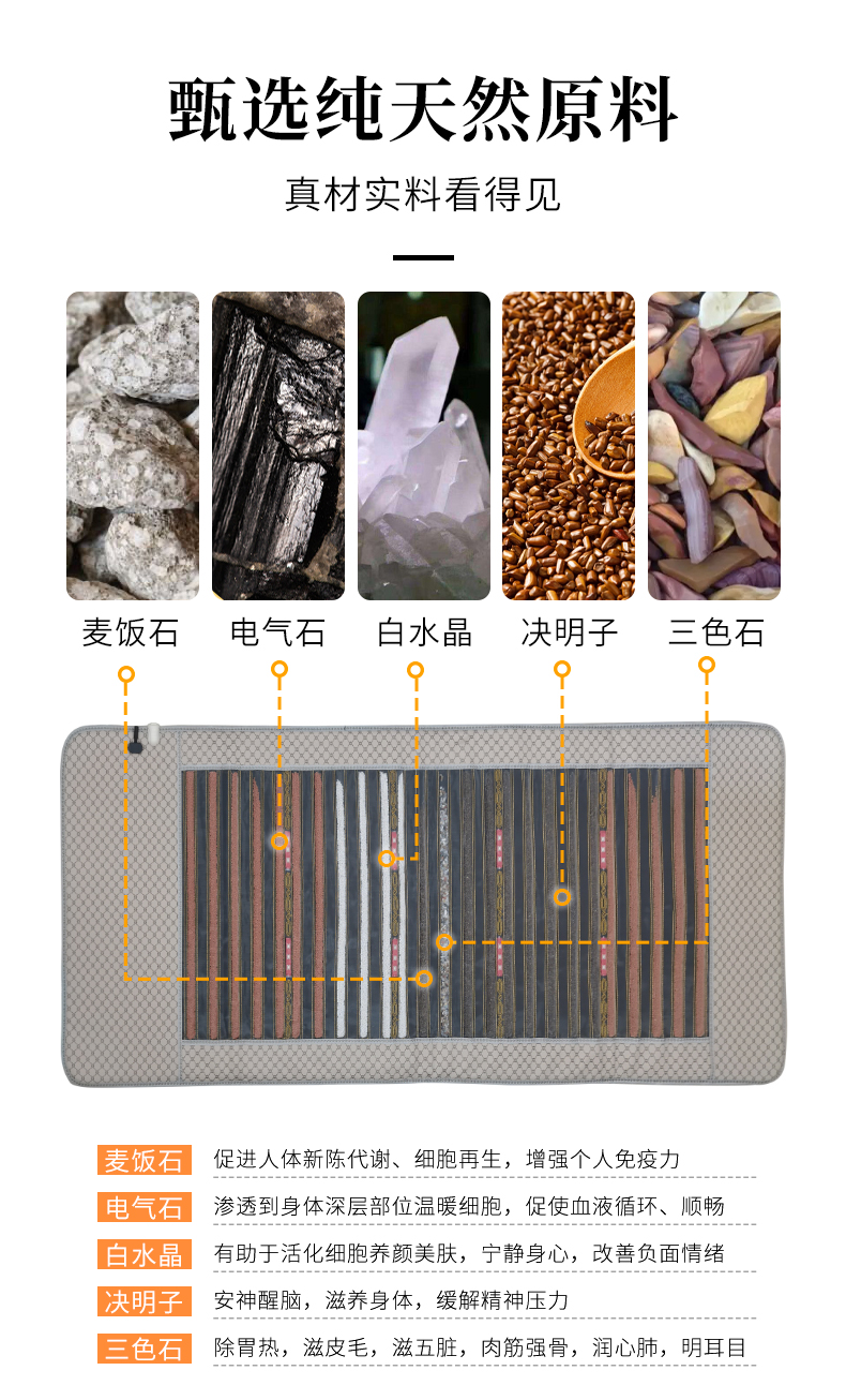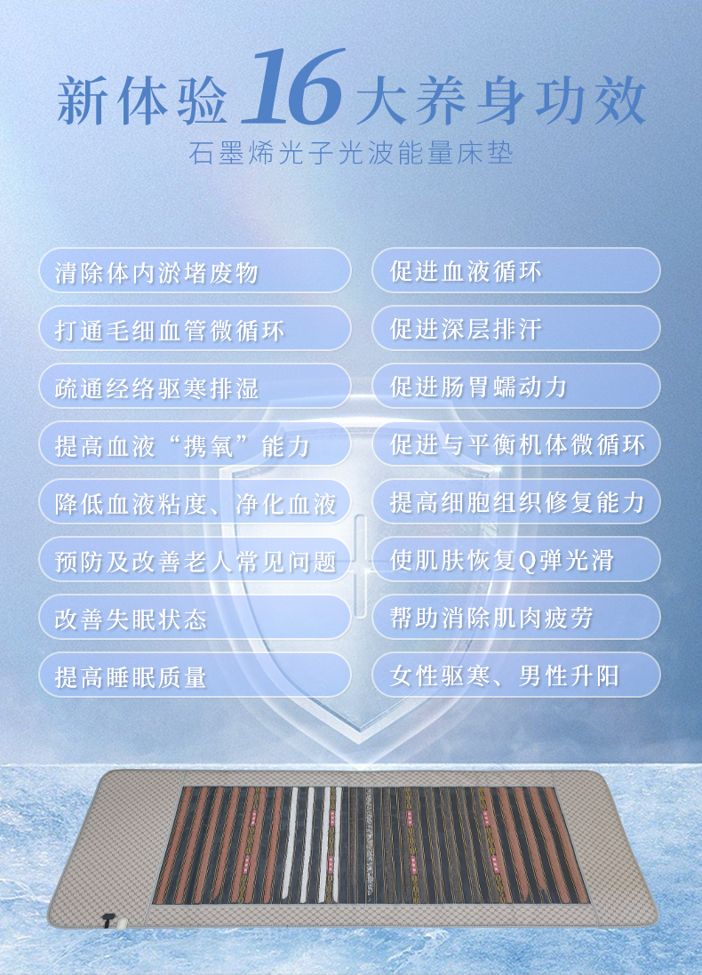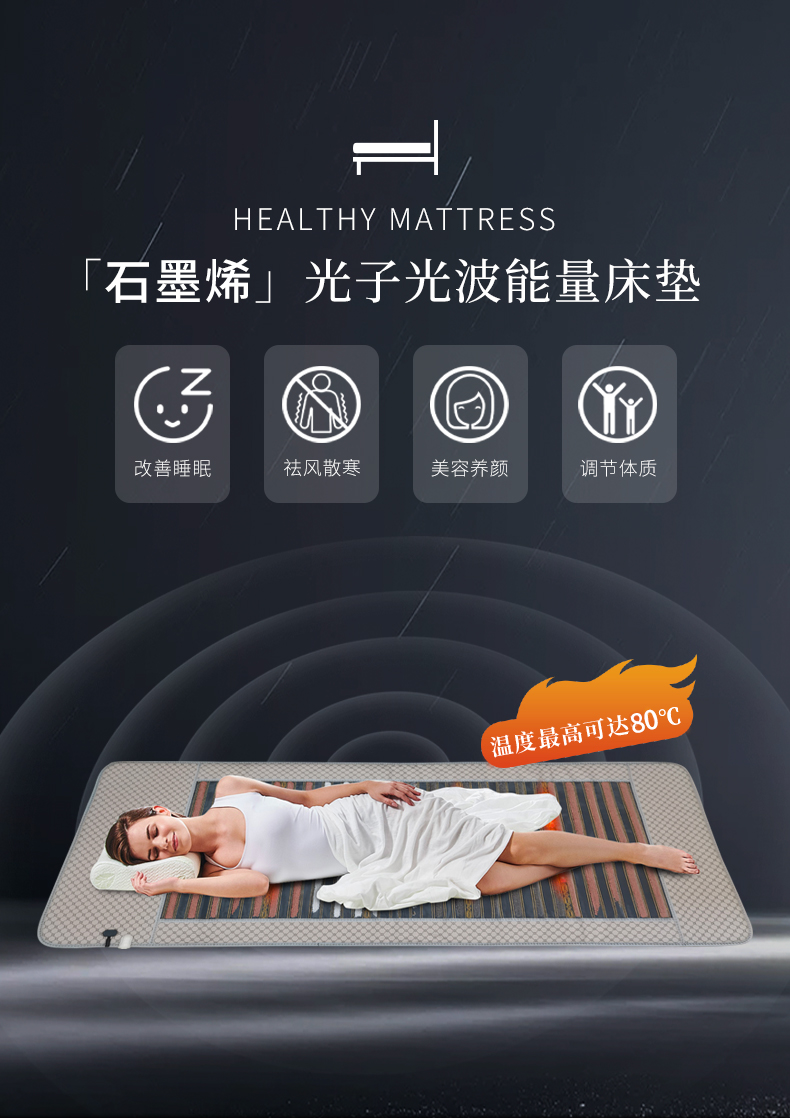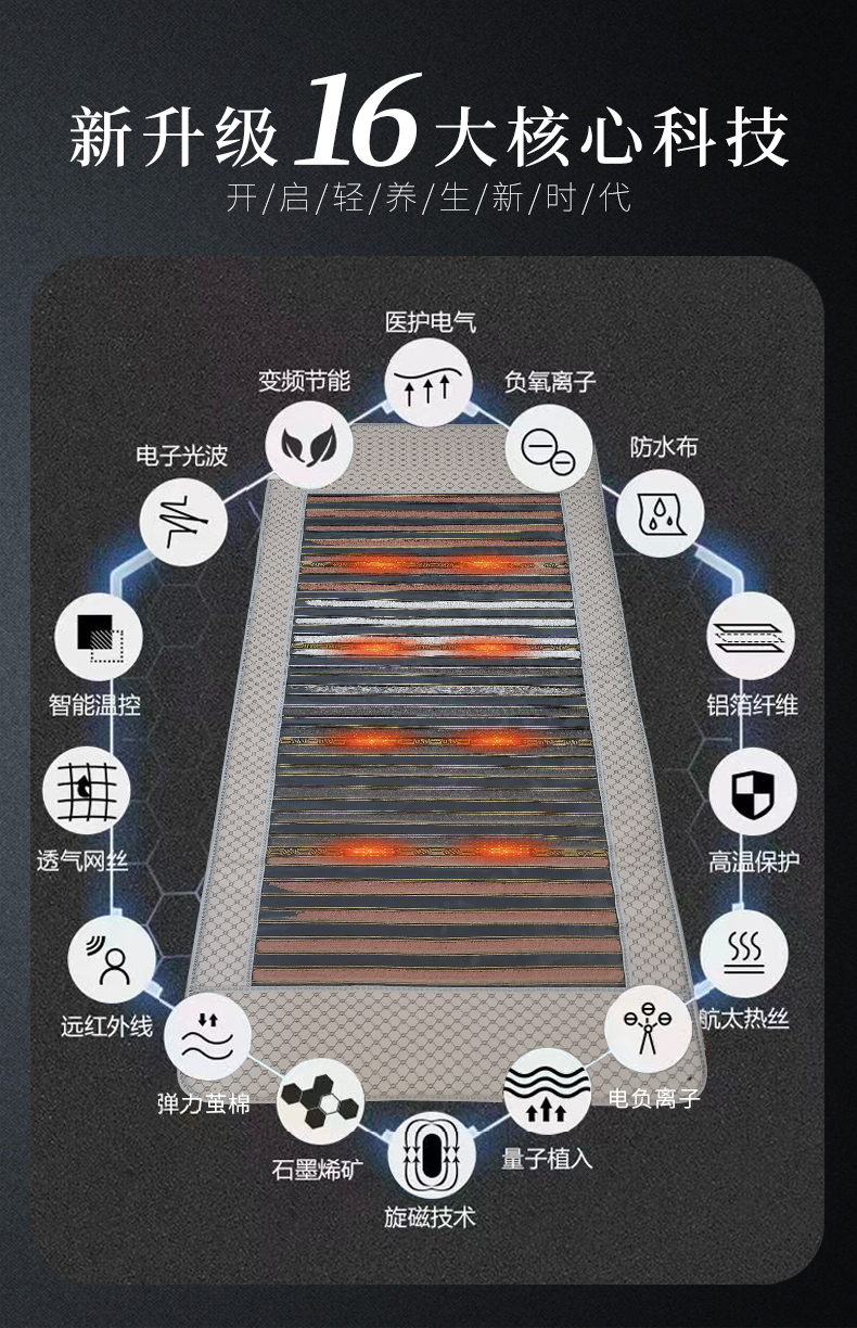代代康 光子能量床垫锗石火山石床垫远红外理疗加热保健光波玉石床垫DD020