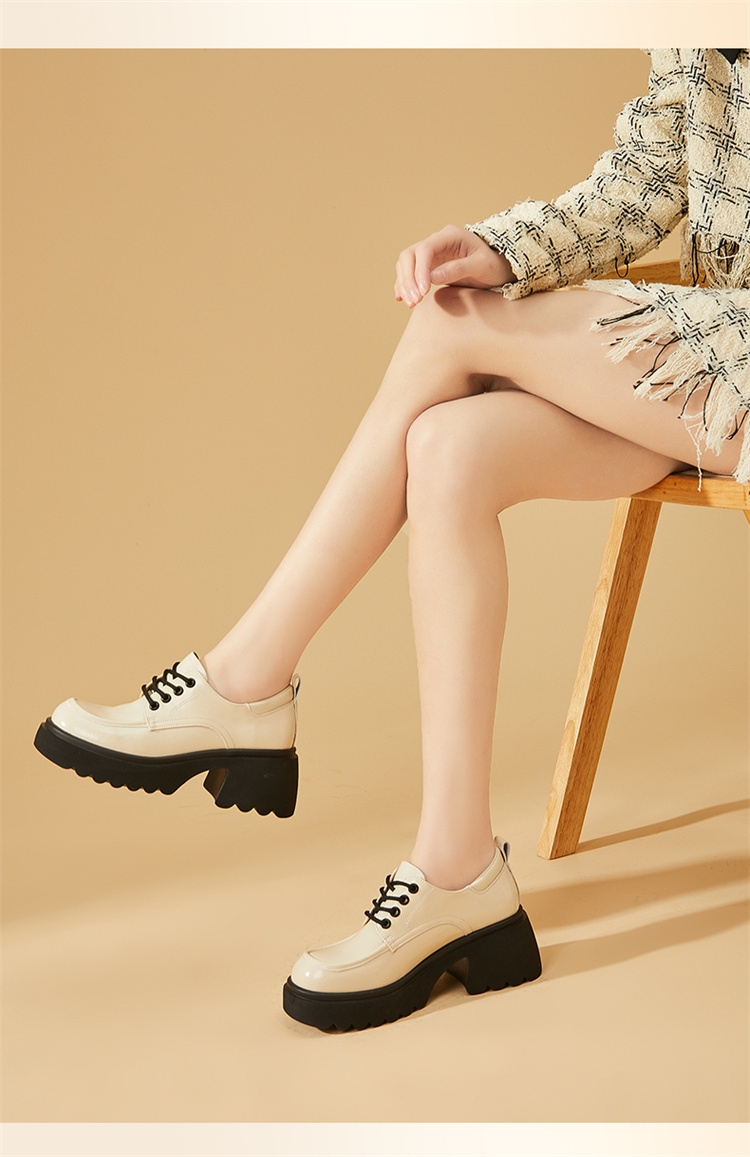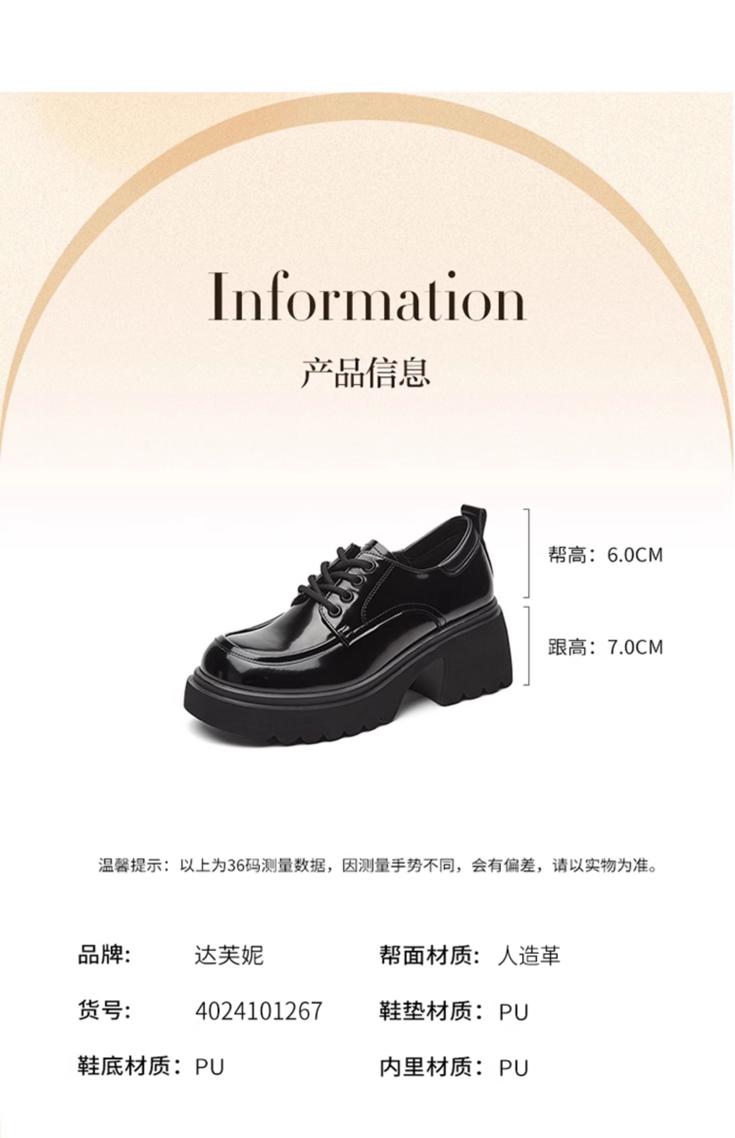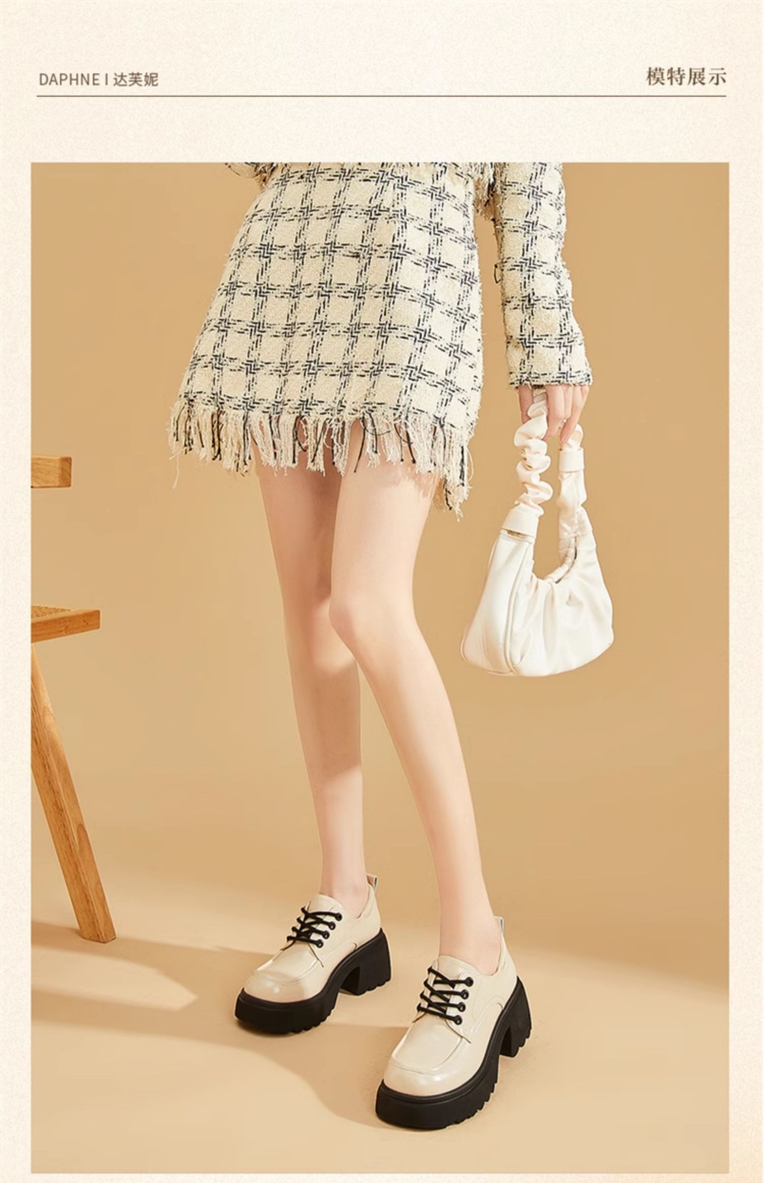 达芙妮厚底高跟乐福鞋女通勤增高小皮鞋增高鞋4024101267