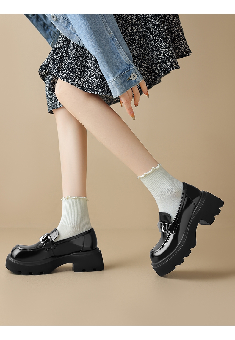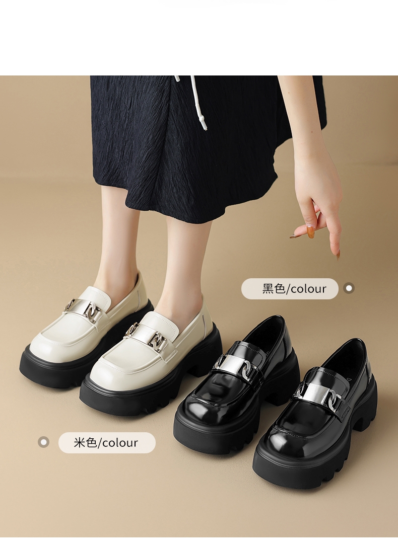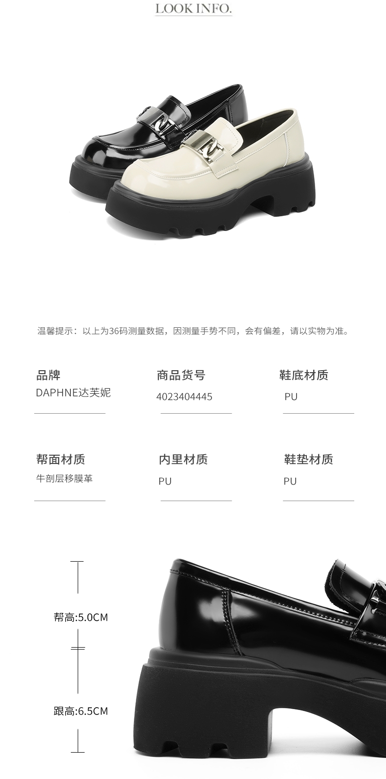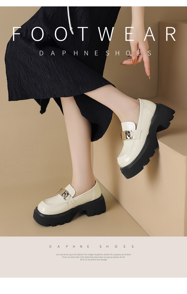 达芙妮厚底乐福鞋女鞋一脚蹬小皮鞋4023404445