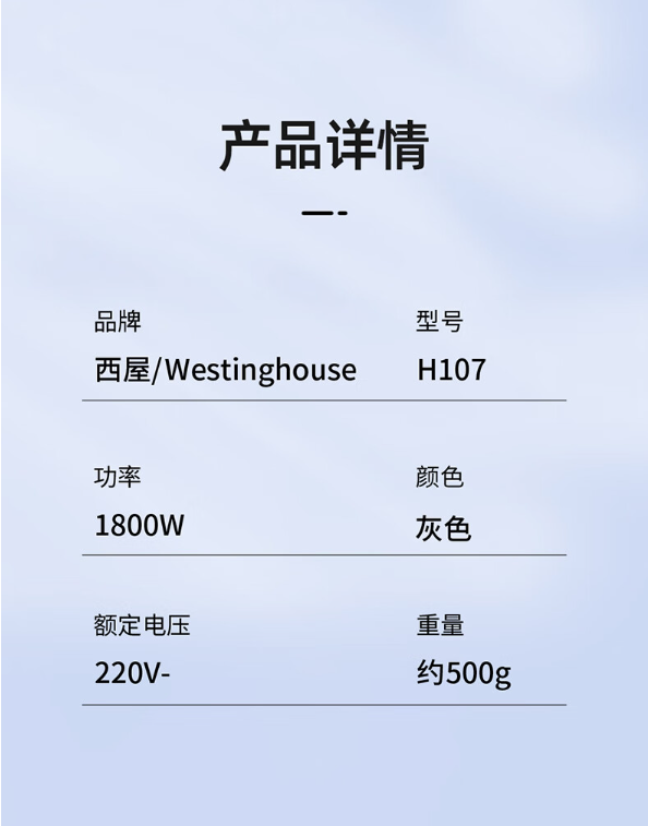 西屋电吹风家用负离子护发吹风机大功率大风力风筒 灰色H107