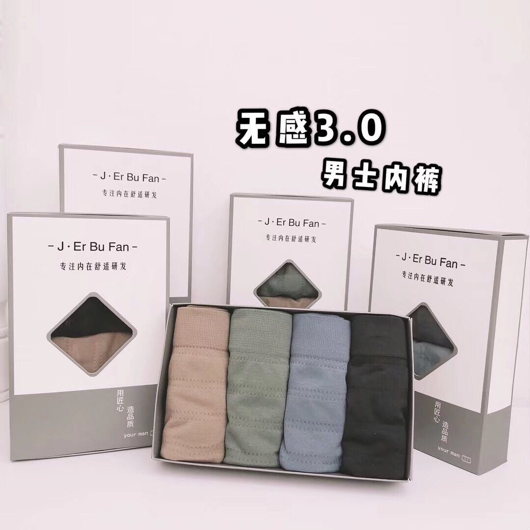 【秋鹭】款号2086四条装无感3.0裸感男士平角内裤中腰无痕无束缚大码三角裤