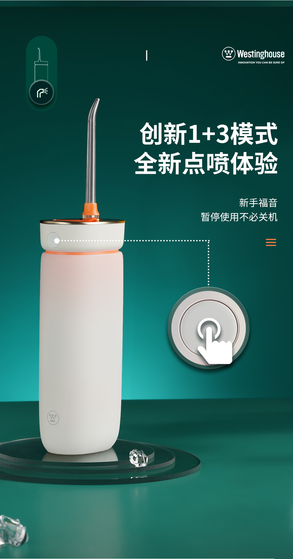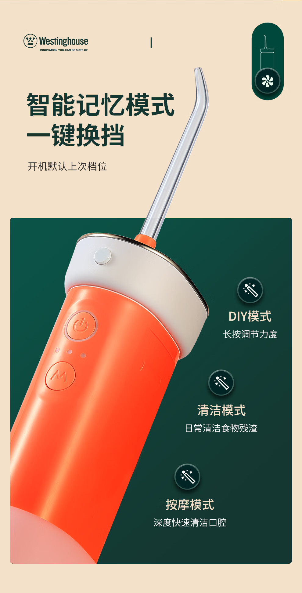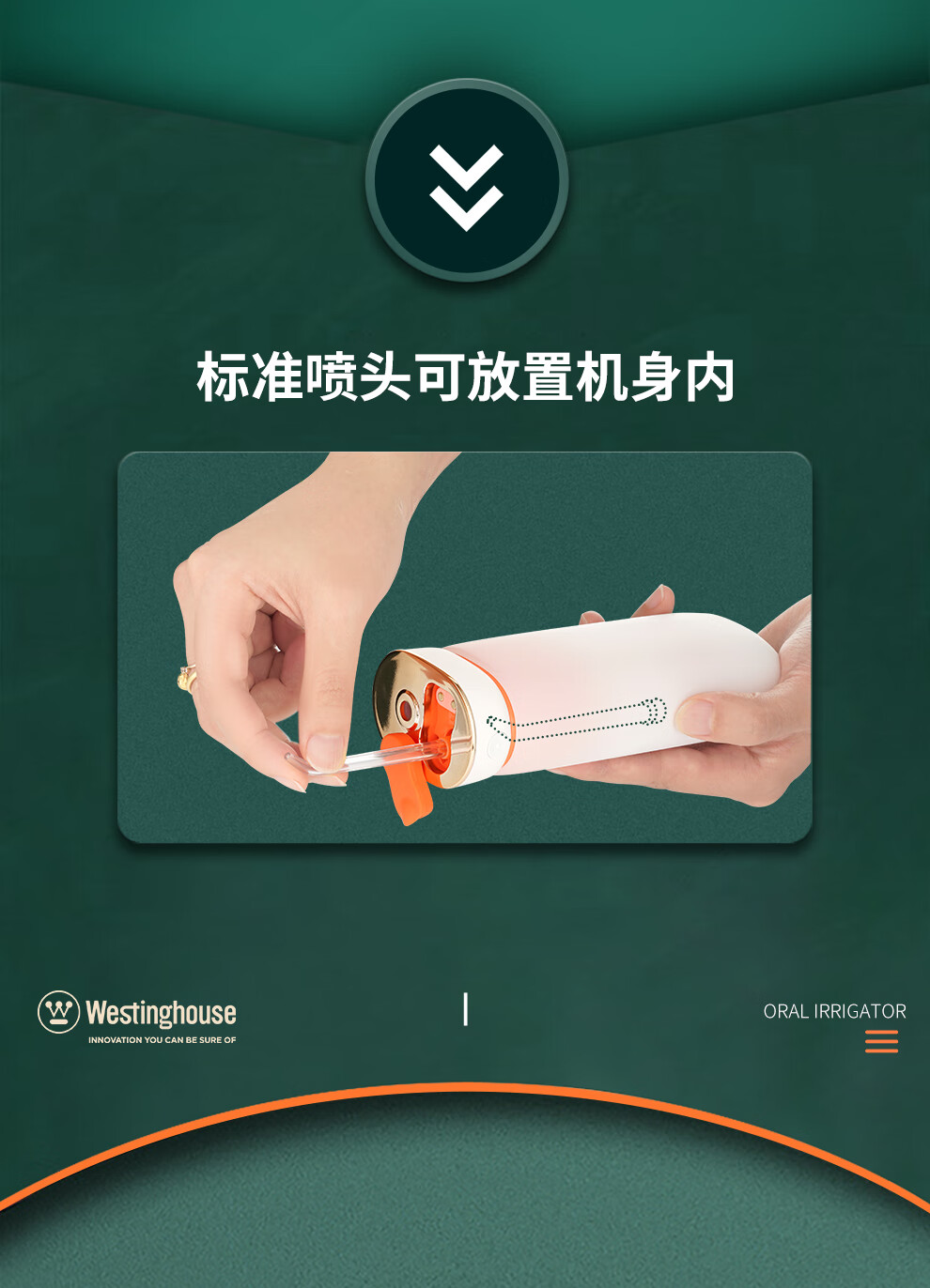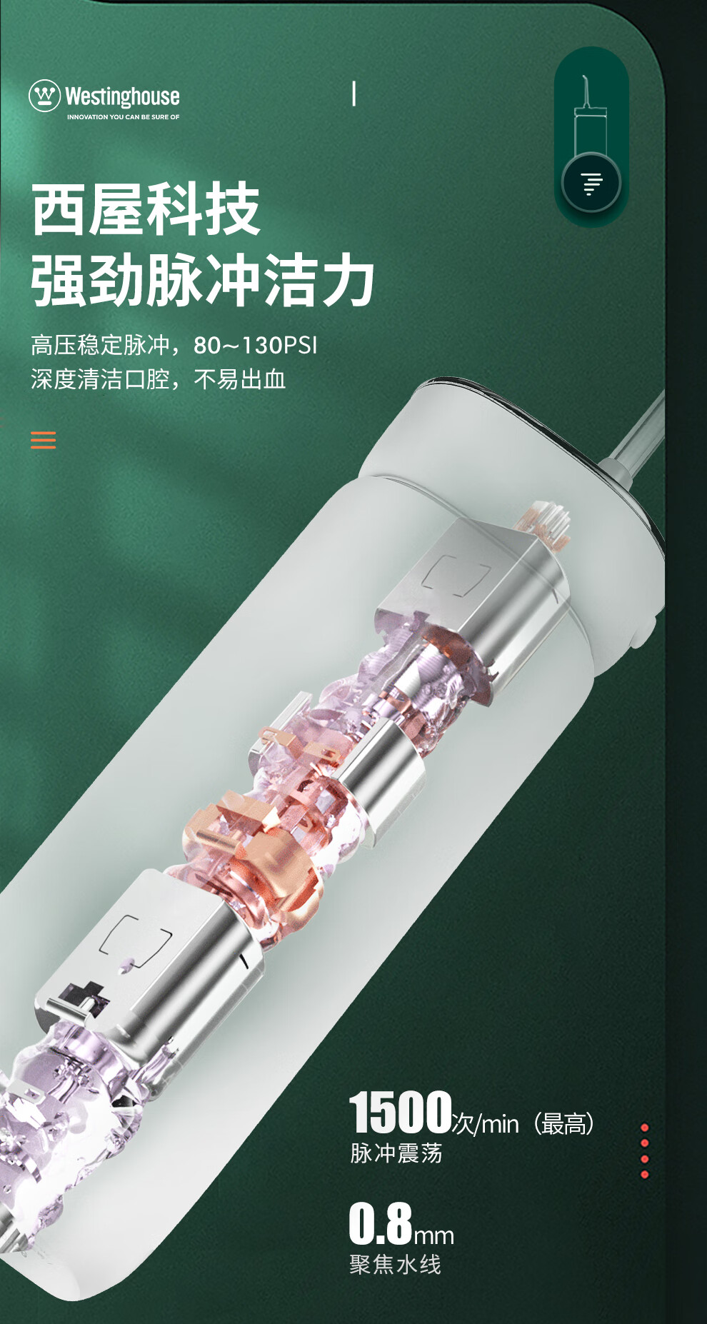 西屋(Westinghouse)便携式电动冲牙器牙结石去除牙缝去垢神器洗牙器洁水牙线 便携式冲牙器C101