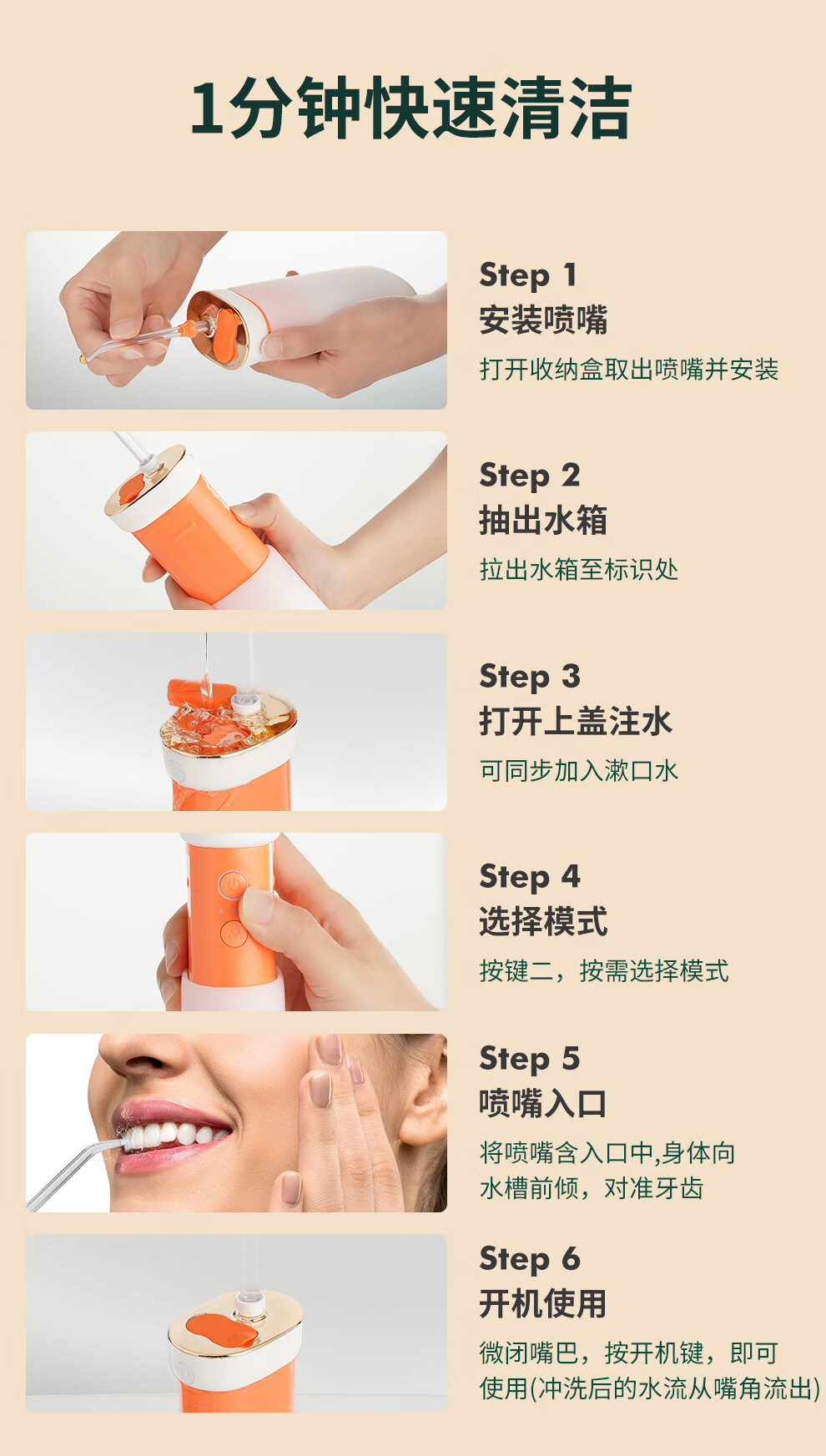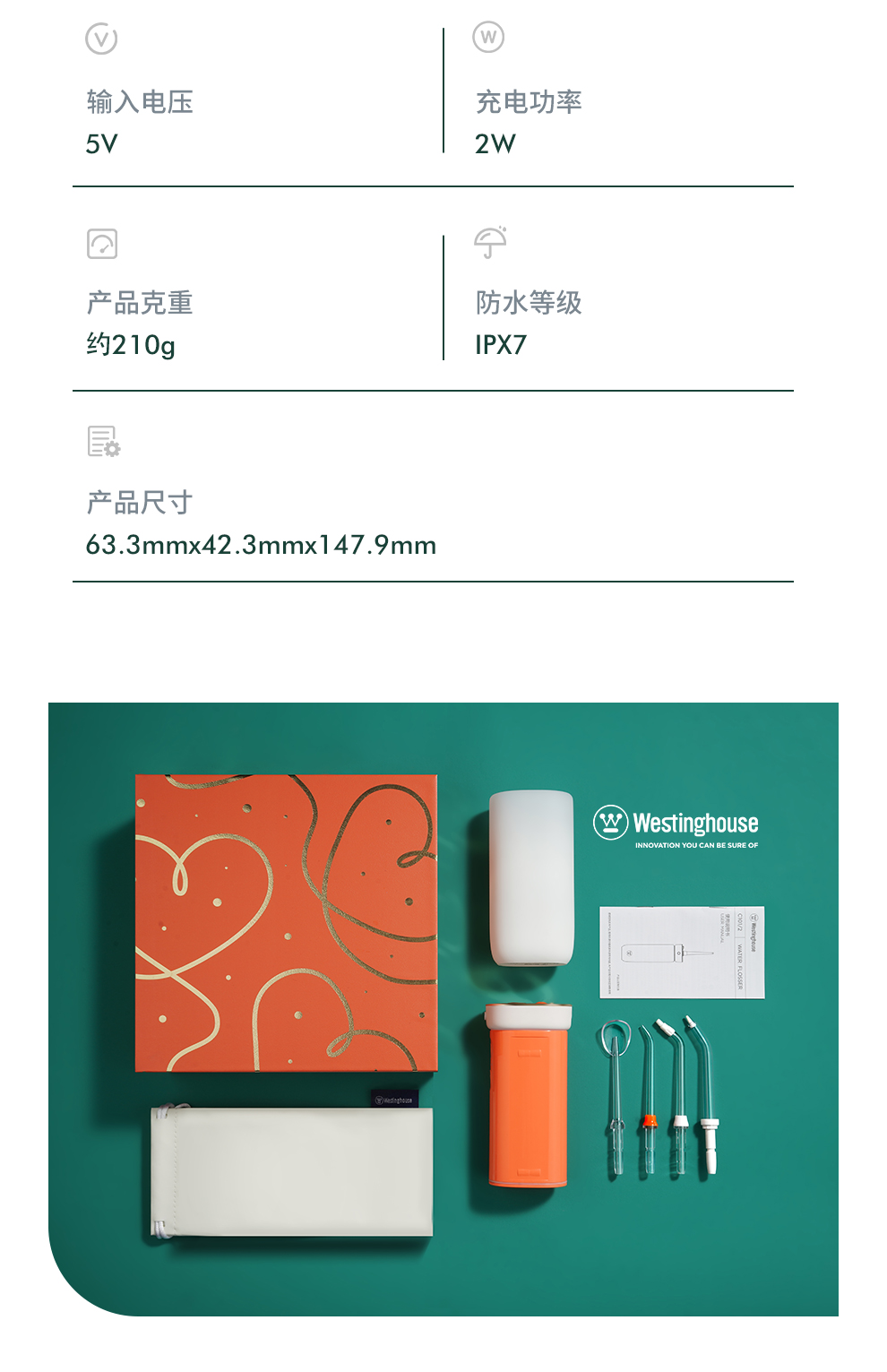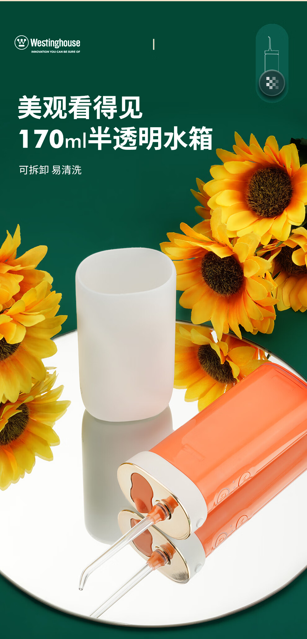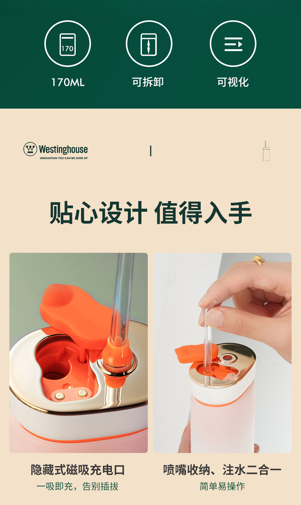 西屋(Westinghouse)便携式电动冲牙器牙结石去除牙缝去垢神器洗牙器洁水牙线 便携式冲牙器C101