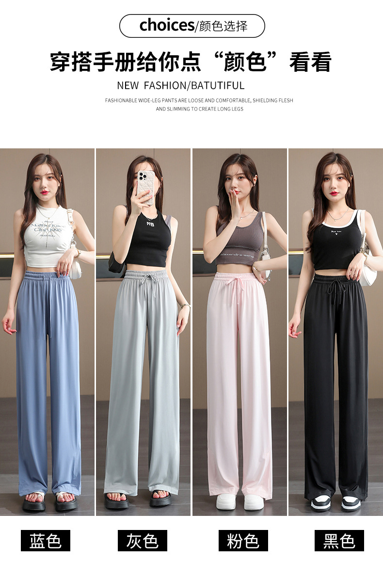 MX-F3 防晒冰丝阔腿裤女夏季速干居家卫裤休闲简约宽松运动直筒九分长裤