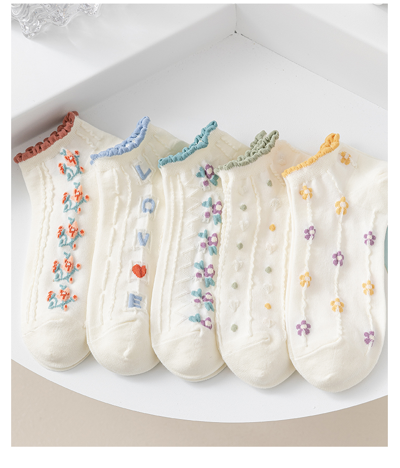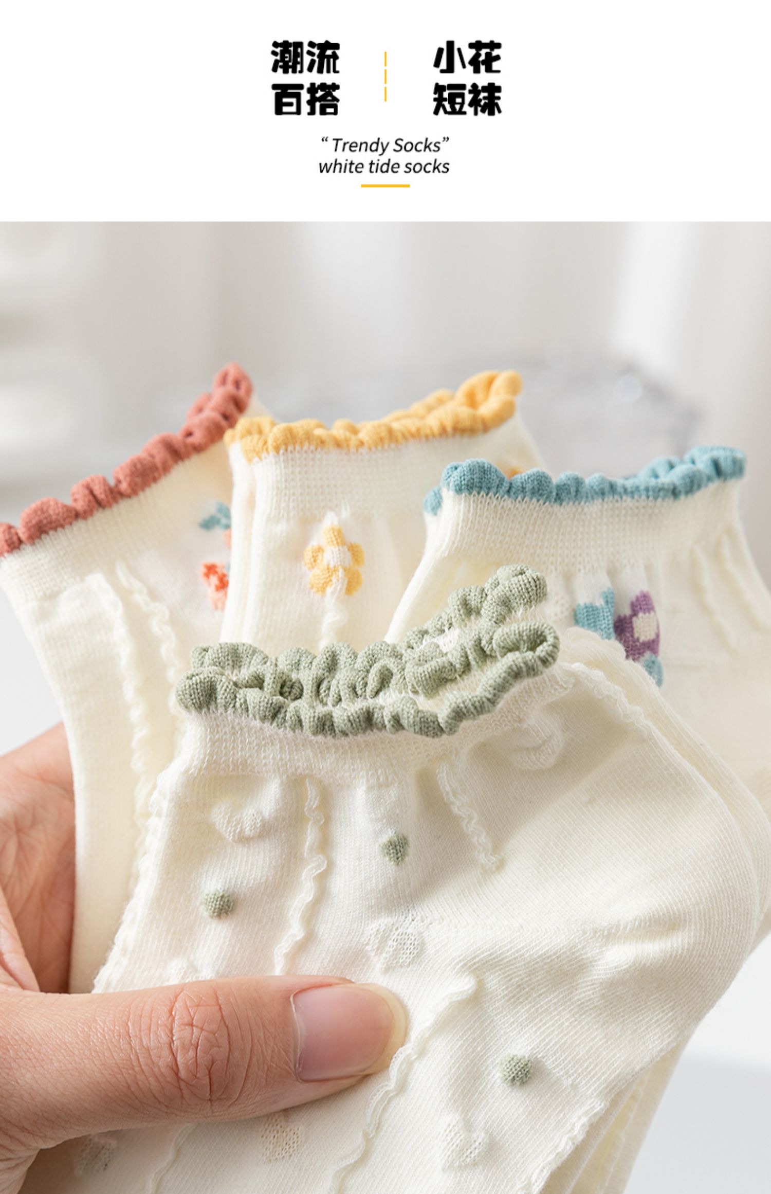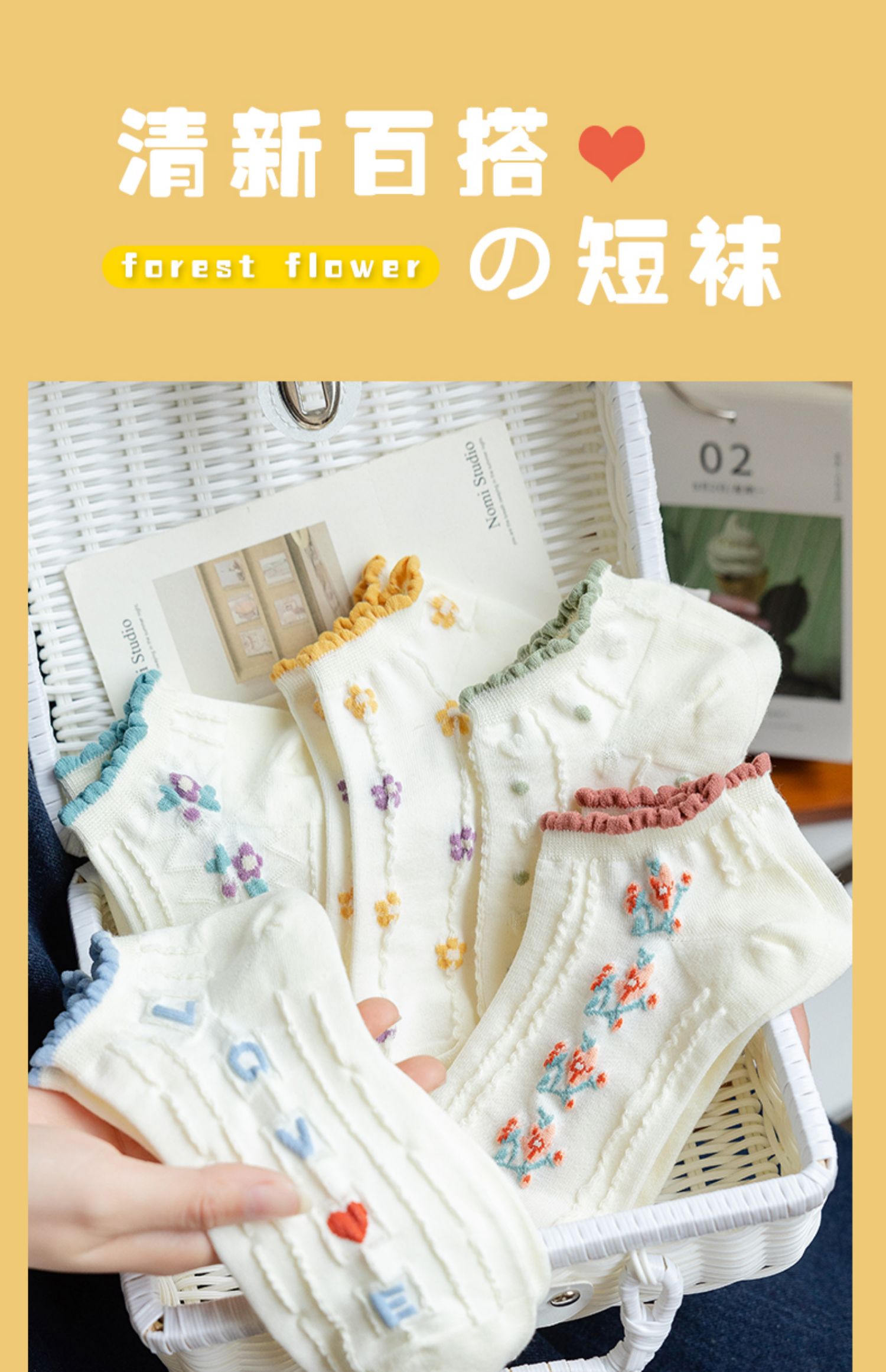 花辞日记 春日小清新花朵袜女袜固定5色组10支双