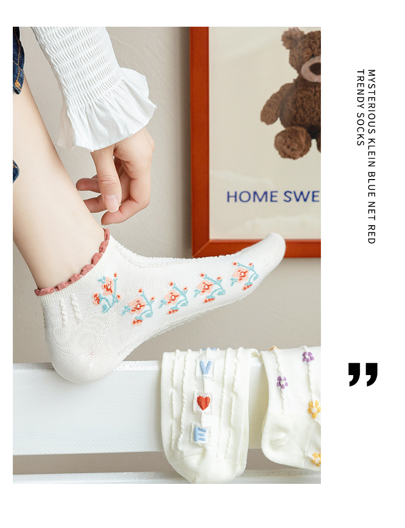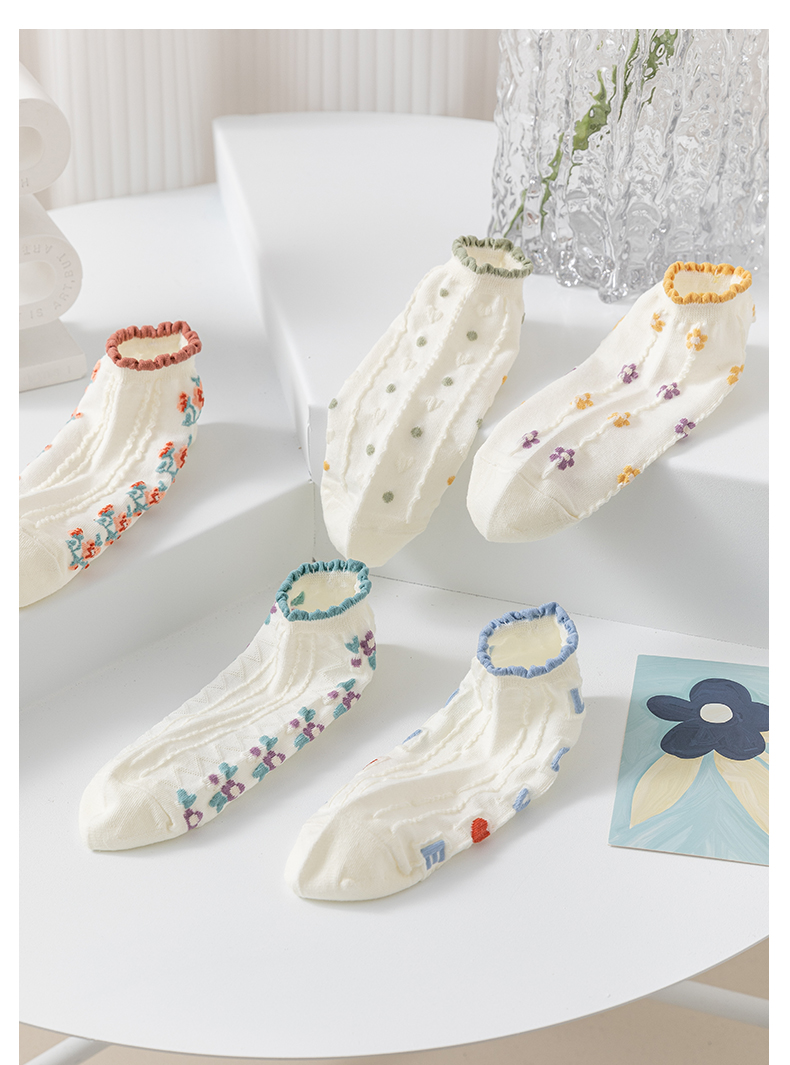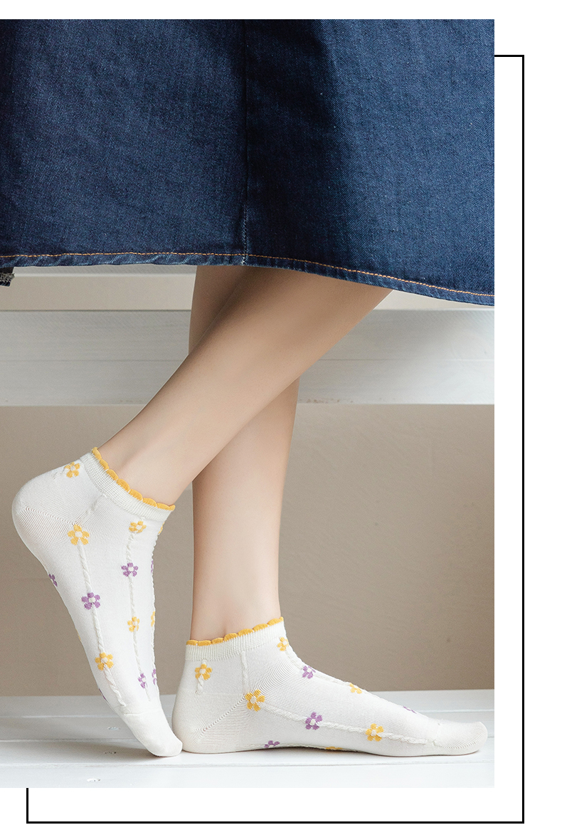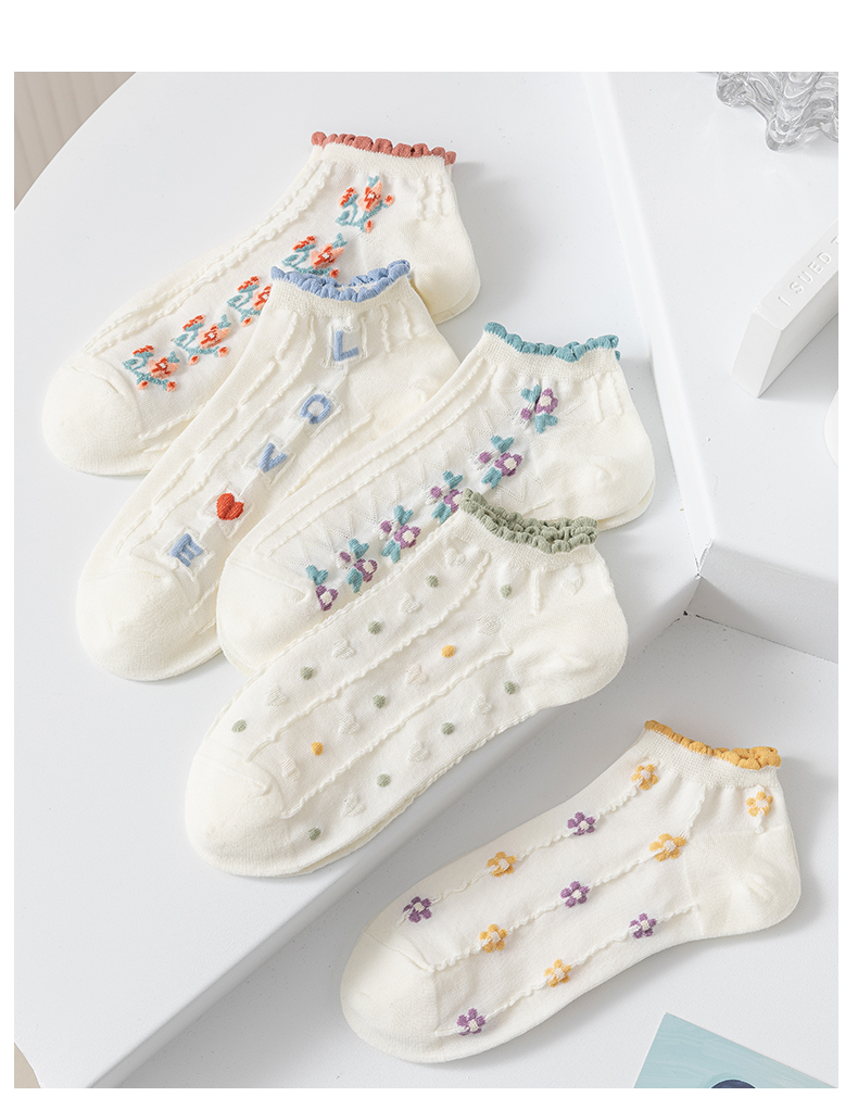 花辞日记 春日小清新花朵袜女袜固定5色组10支双