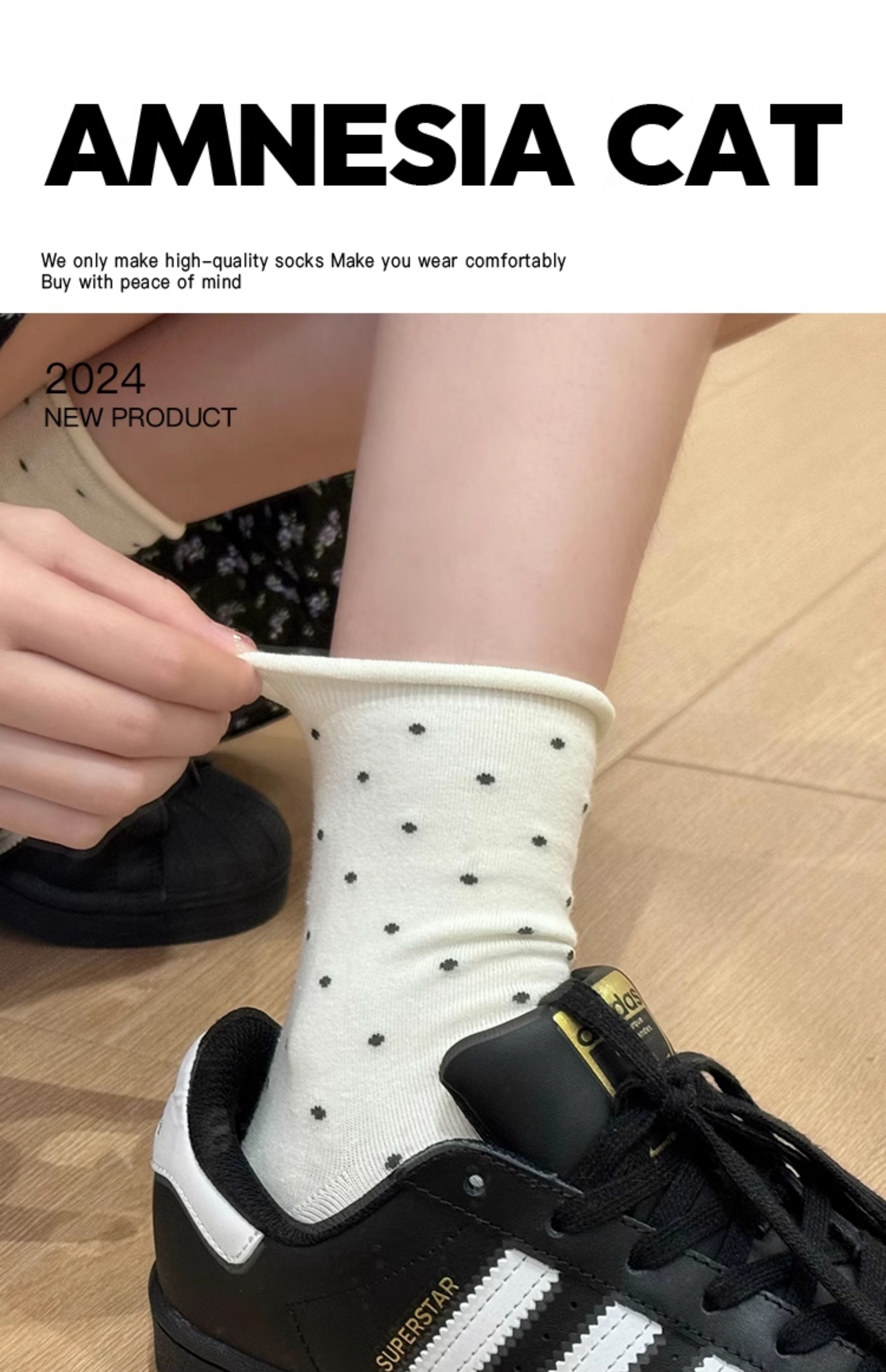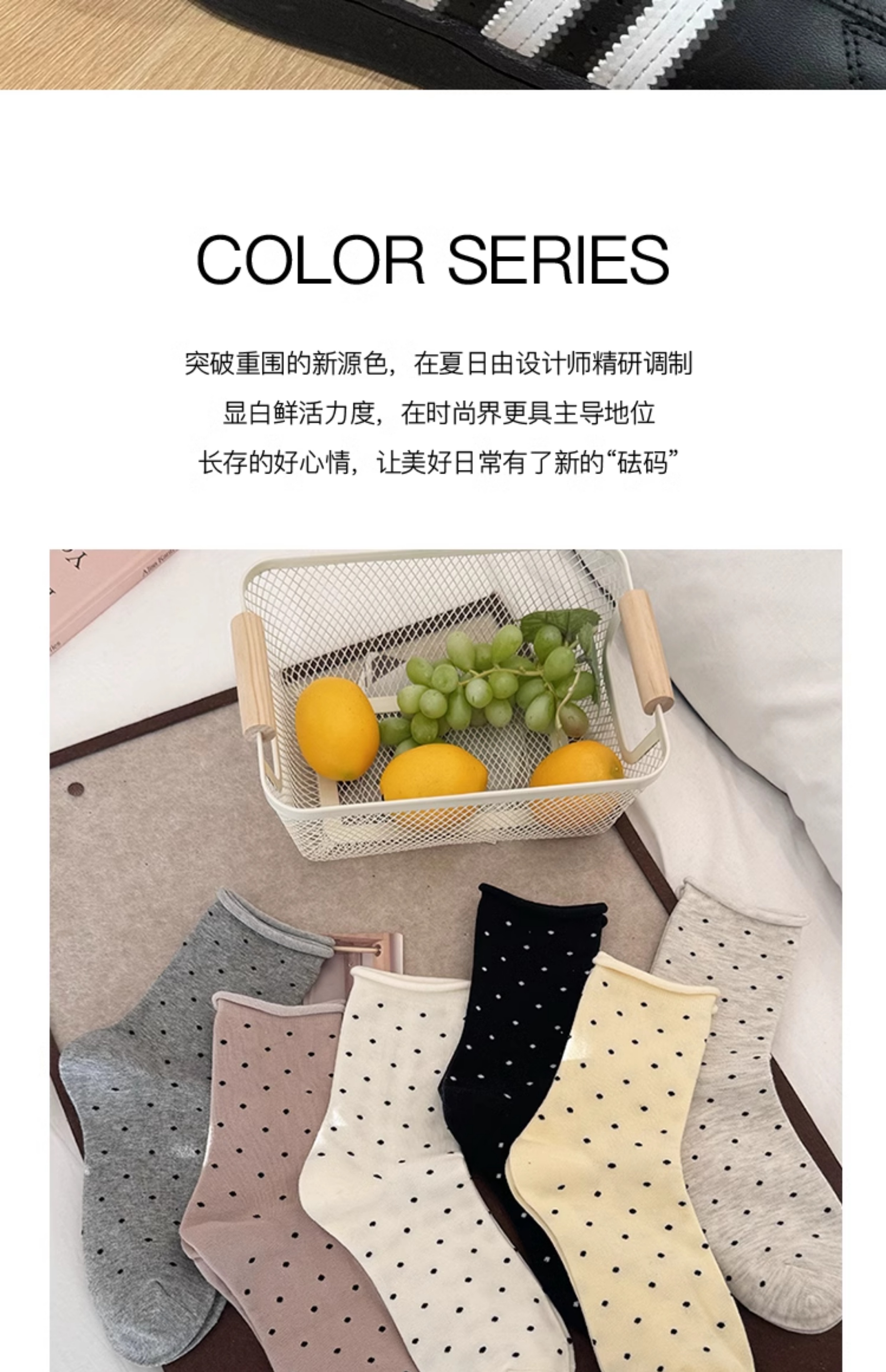 花辞日记 复古波点中筒袜女袜均码固定6支装