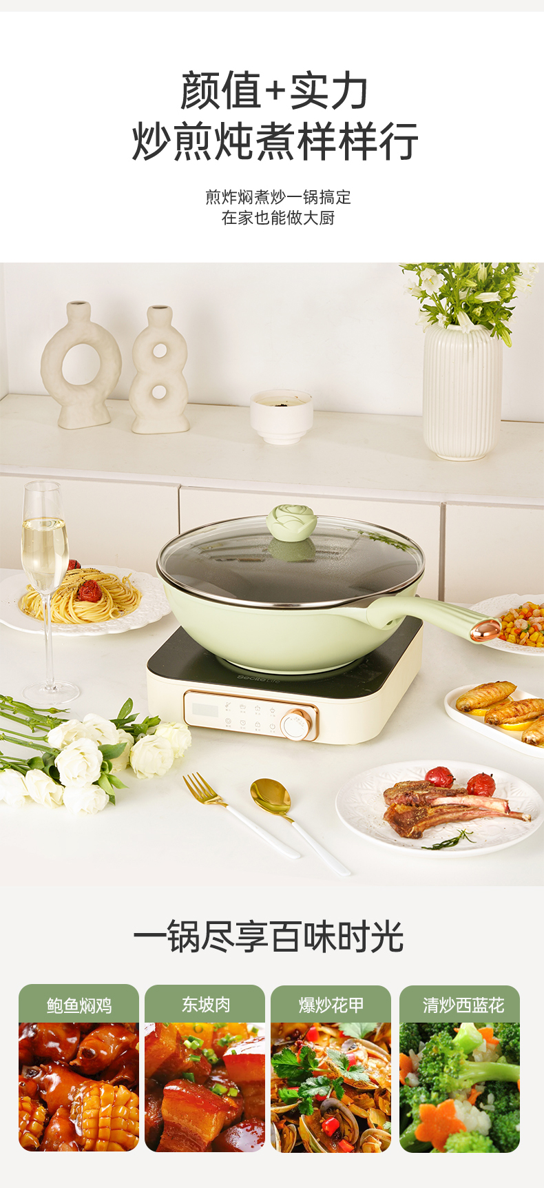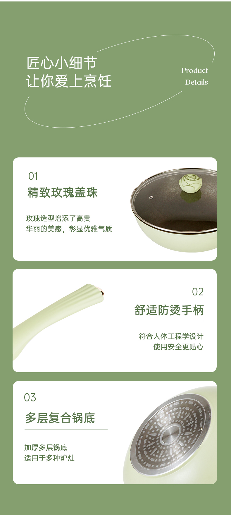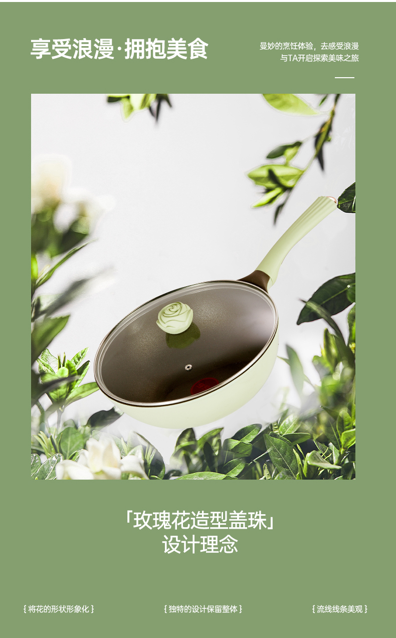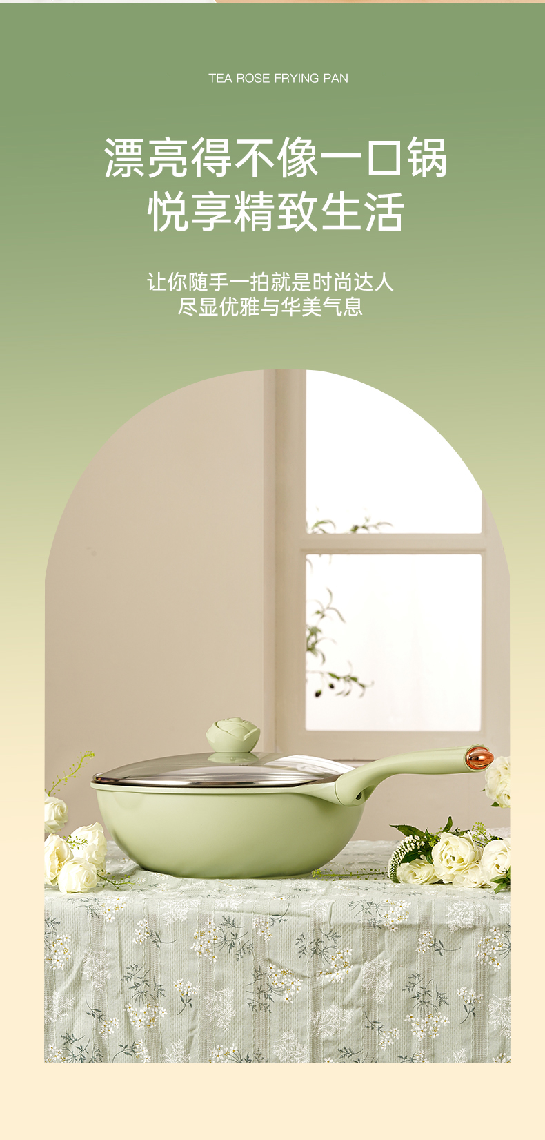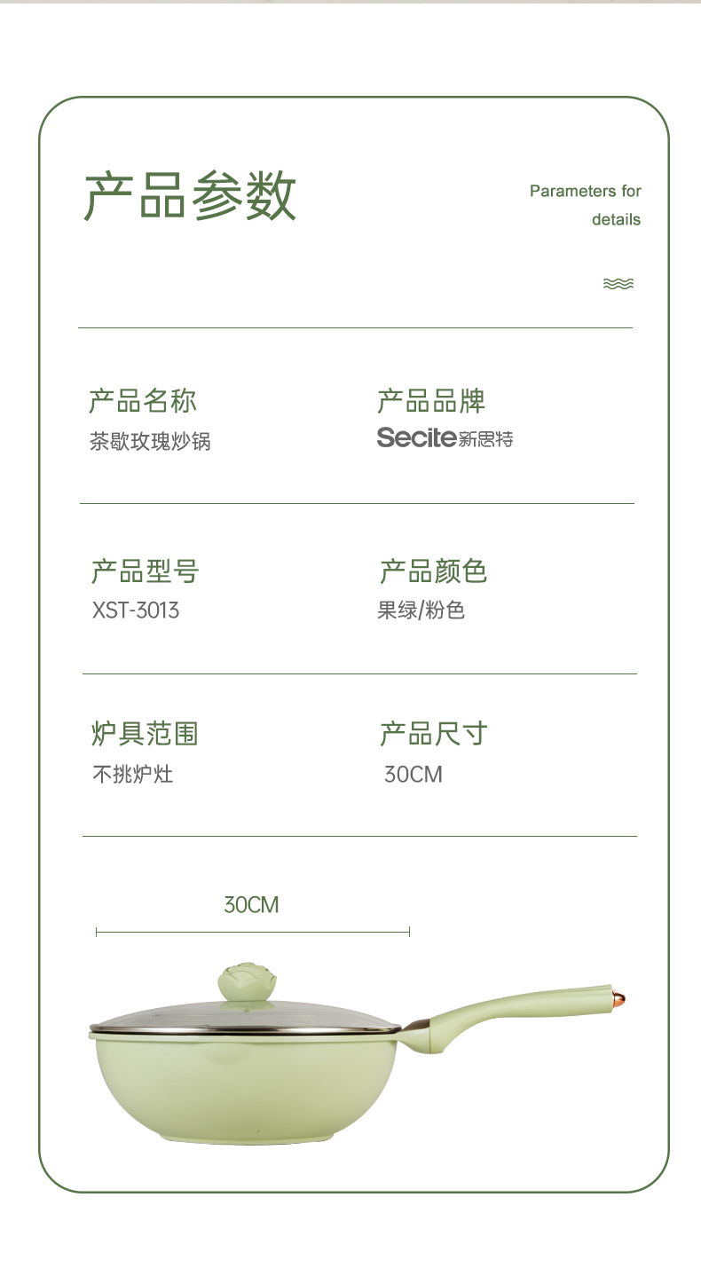新思特Secite茶歇玫瑰系列3013炒锅 不粘锅煎炒锅炒菜锅少油烟易清洗