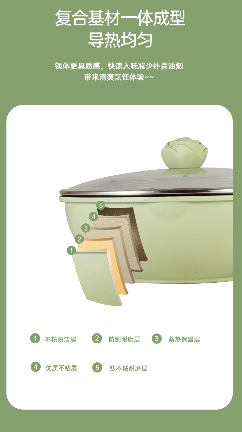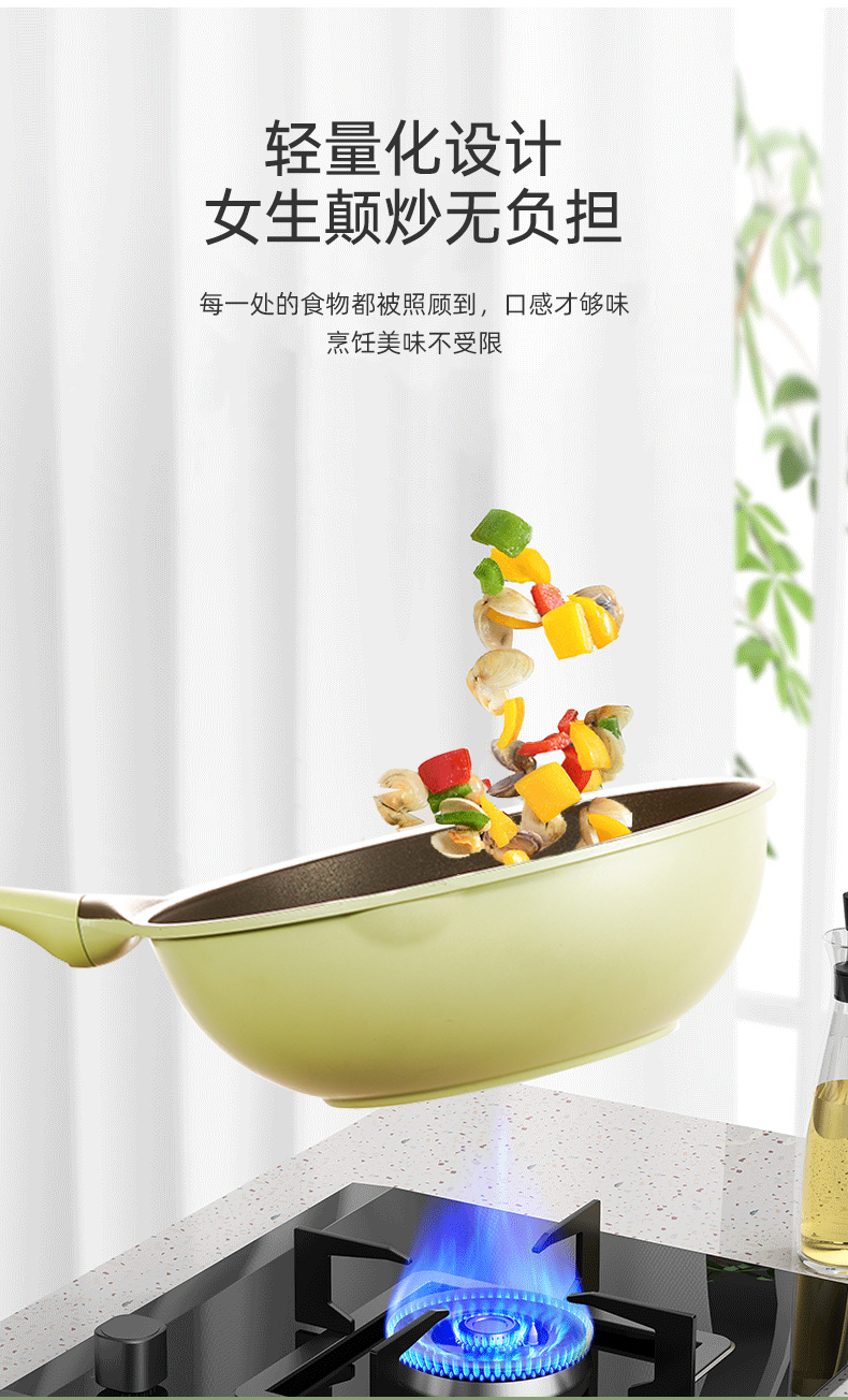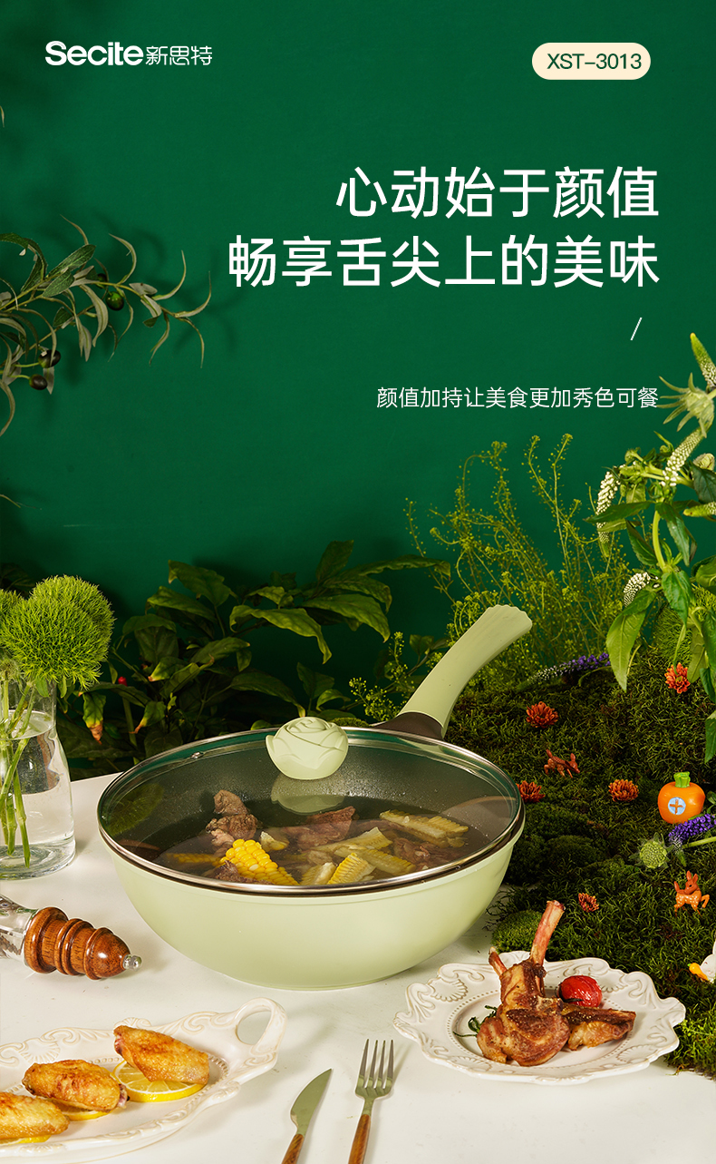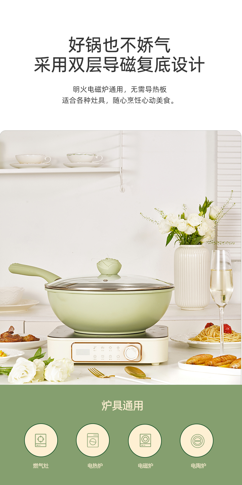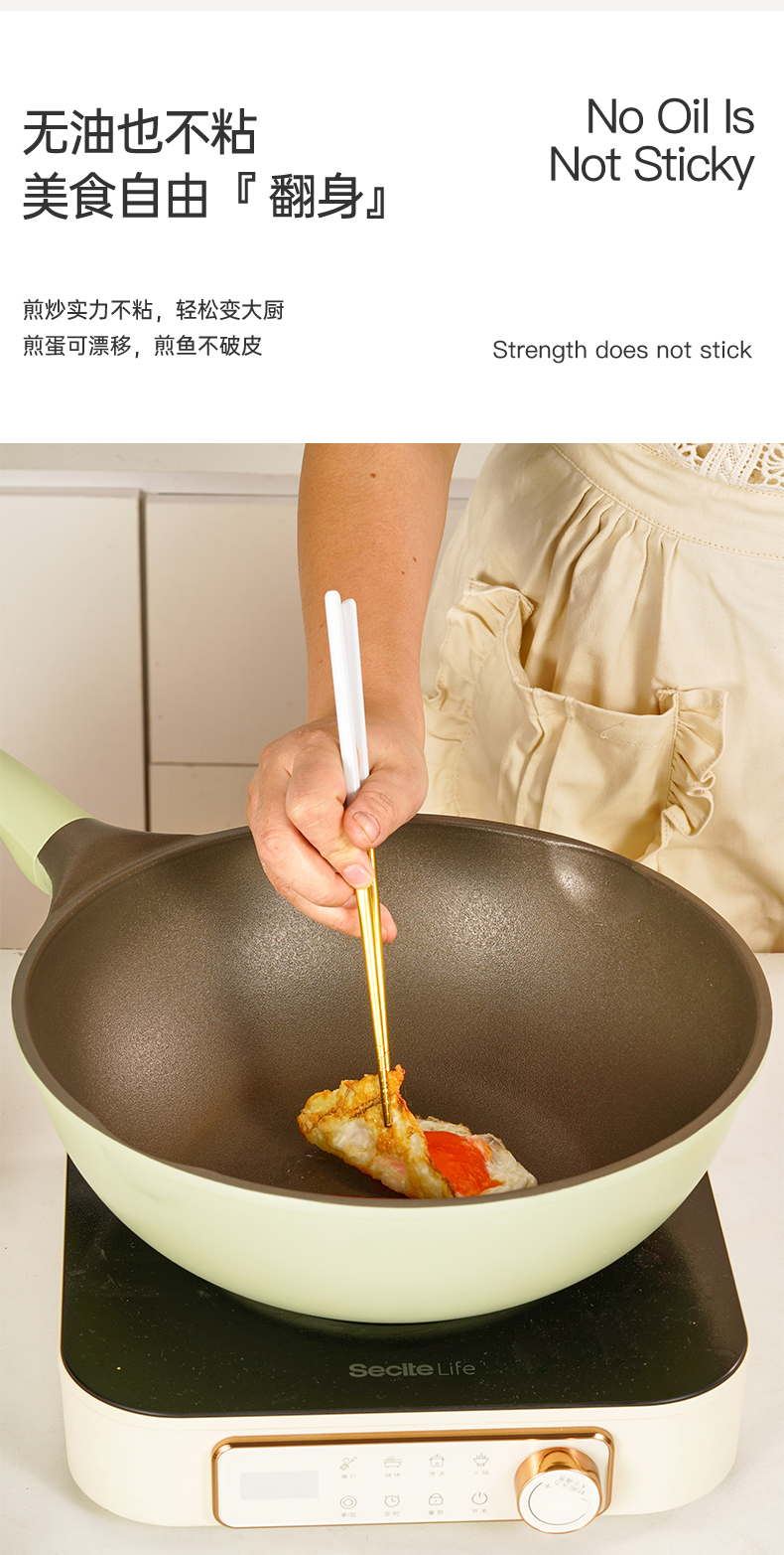新思特Secite茶歇玫瑰系列3013炒锅 不粘锅煎炒锅炒菜锅少油烟易清洗