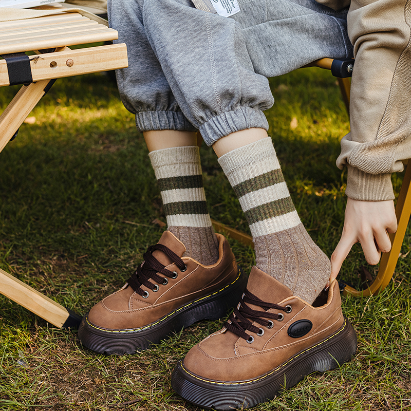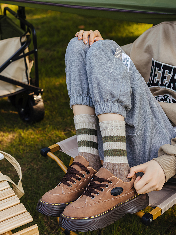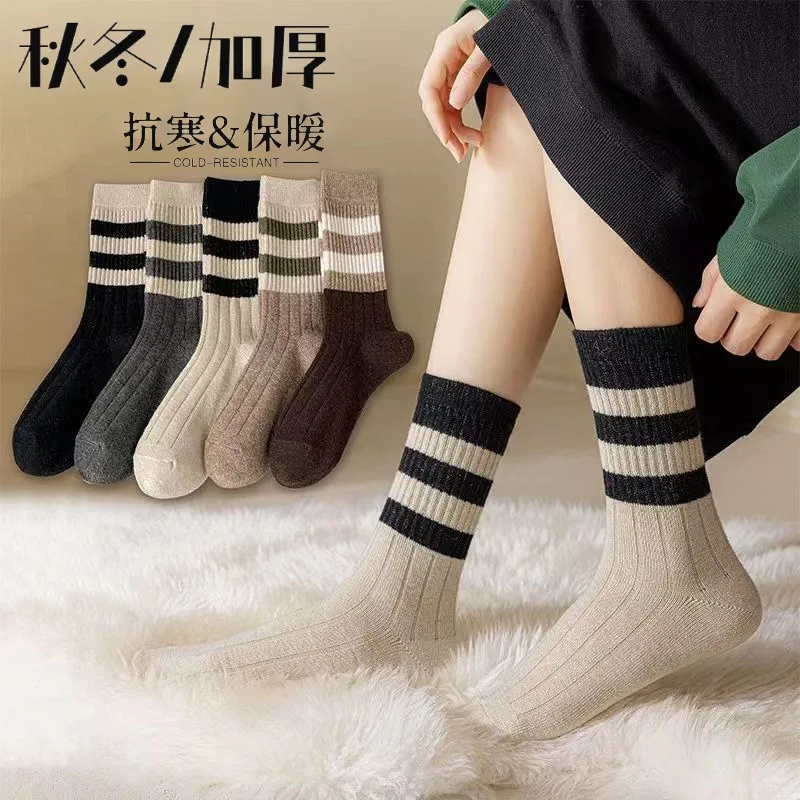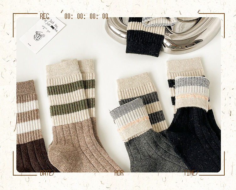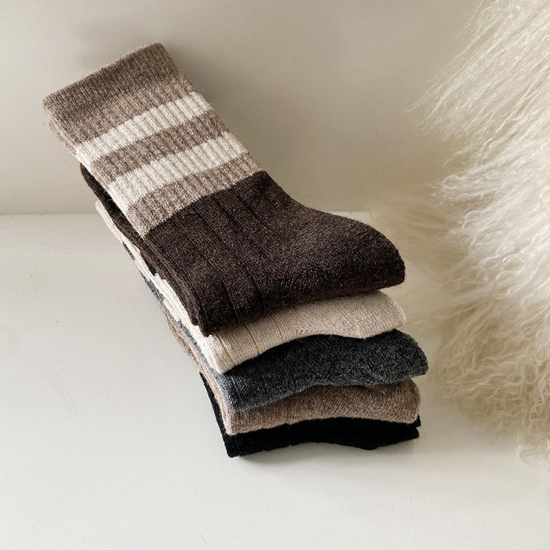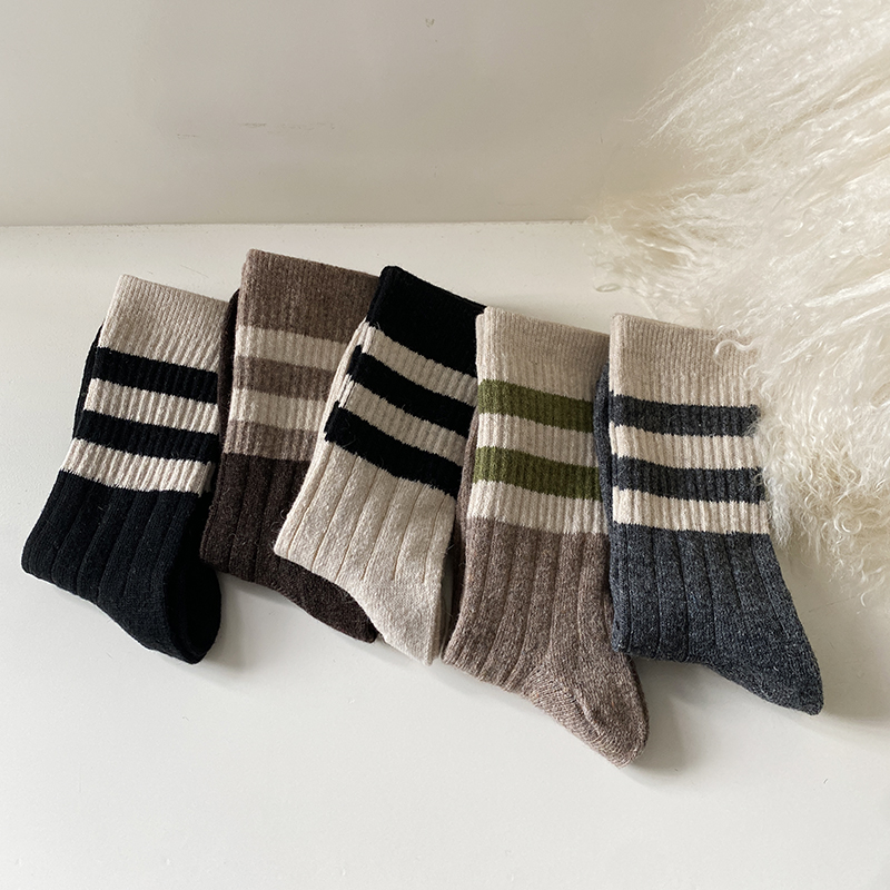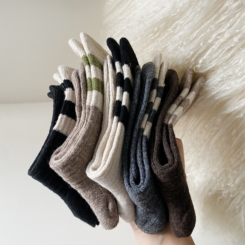 花辞日记三条杠拼色羊毛袜均码纯色5双装