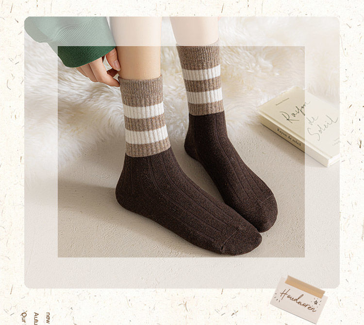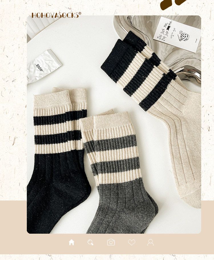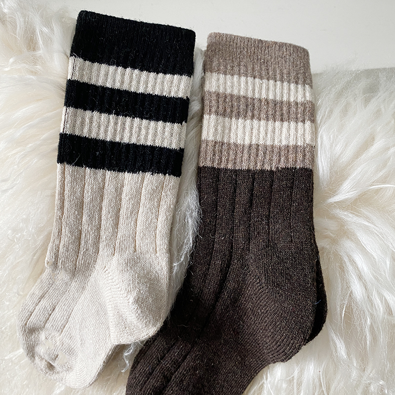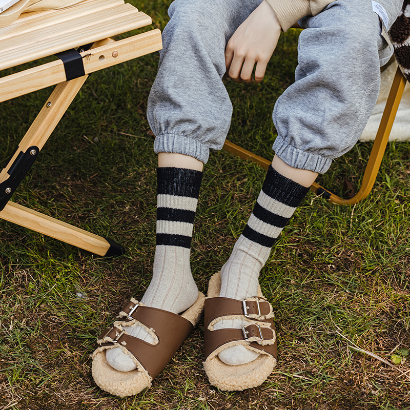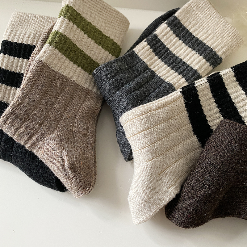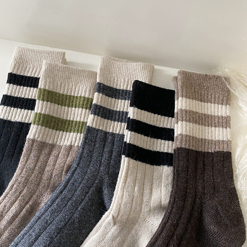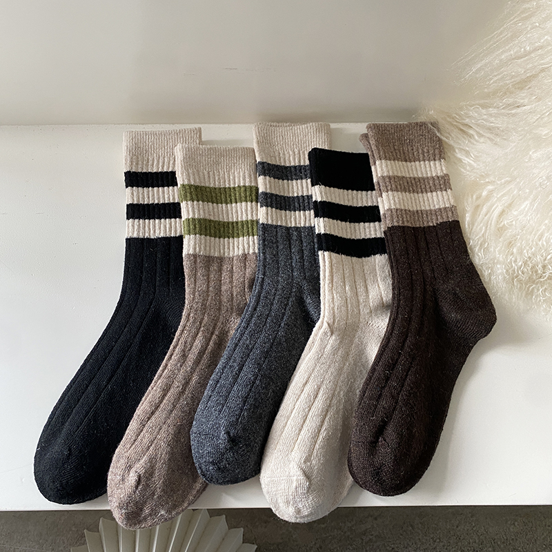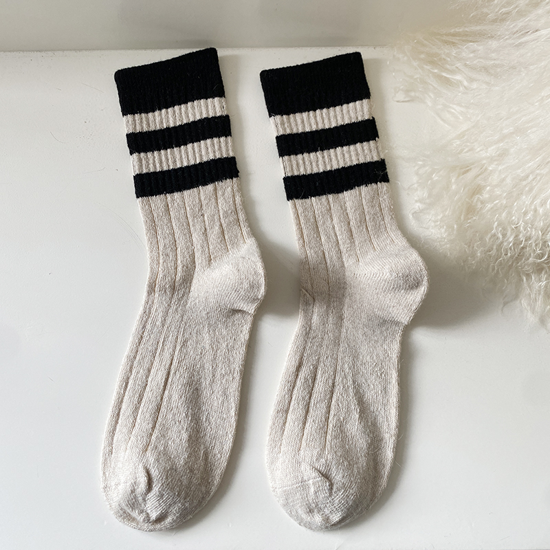 三条杠拼色羊毛袜