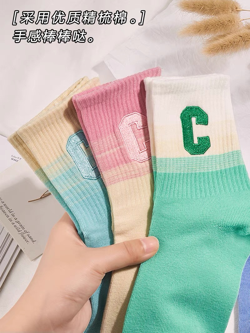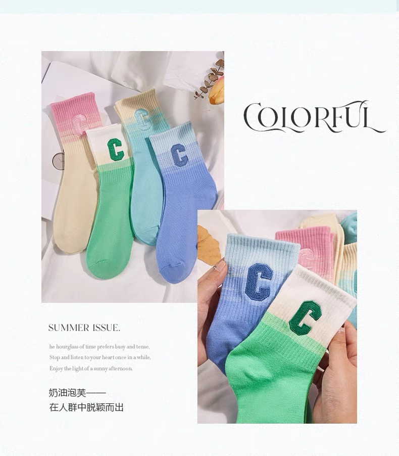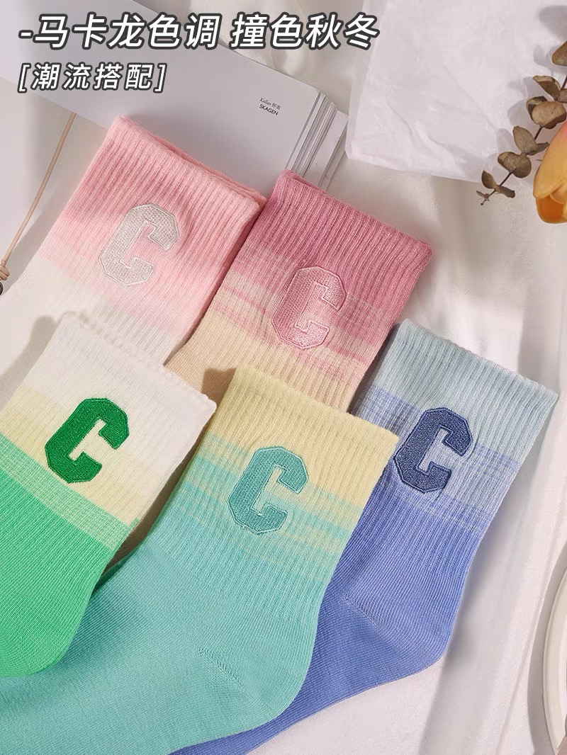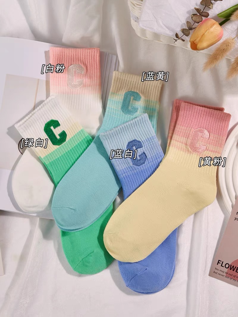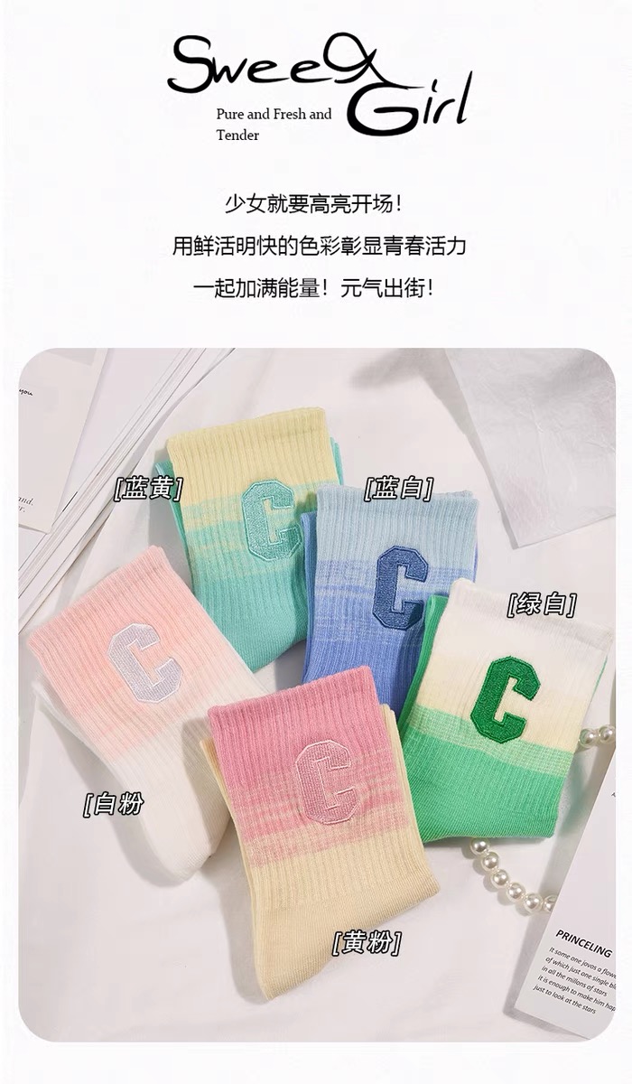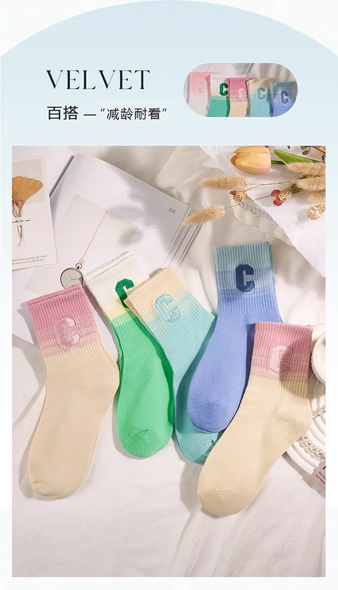 彩虹色系G字母女袜【颜色随机】 10双装