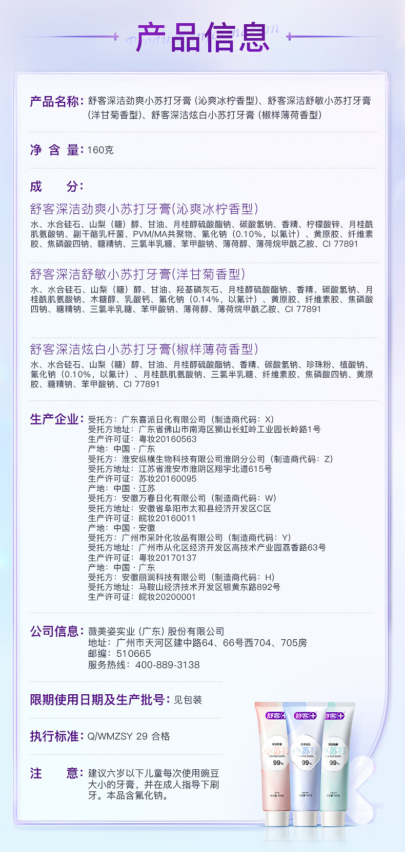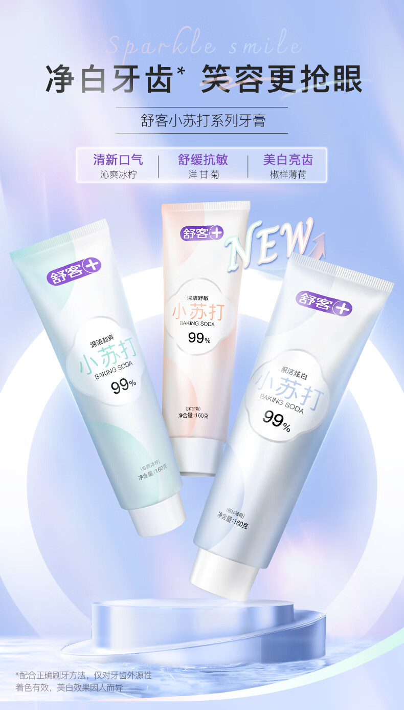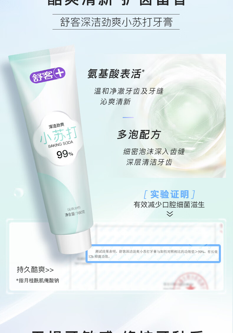 舒客99%纯度小苏打牙膏 美白牙齿减轻口臭含氟防蛀