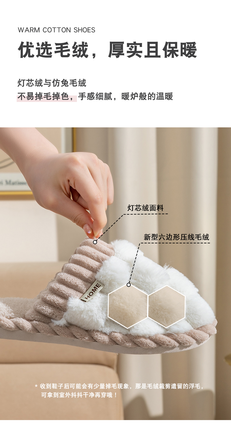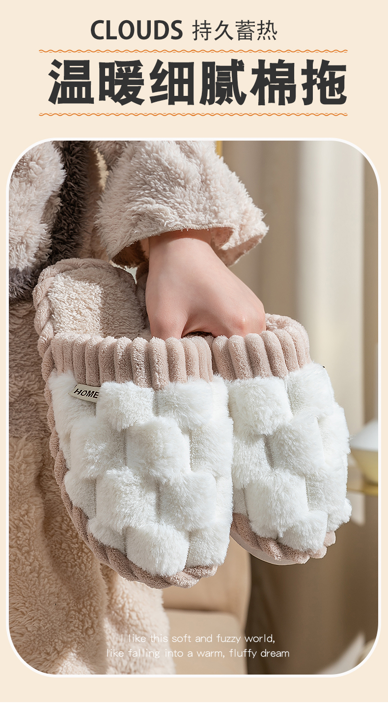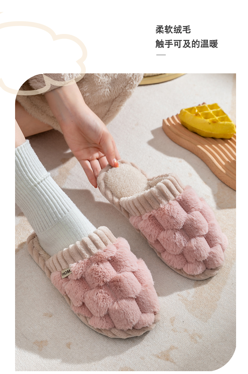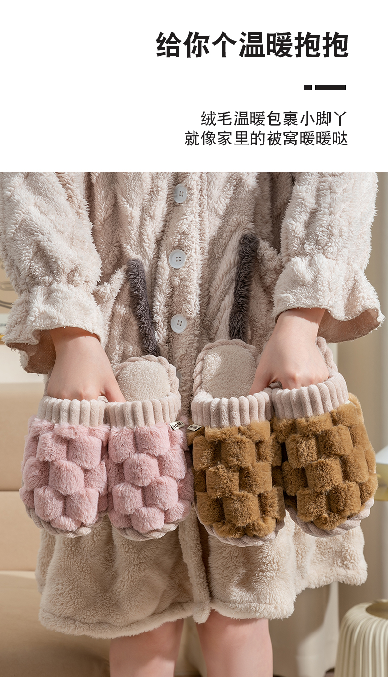 宅小年六边形华夫格仿兔绒家居棉拖颜色随机
