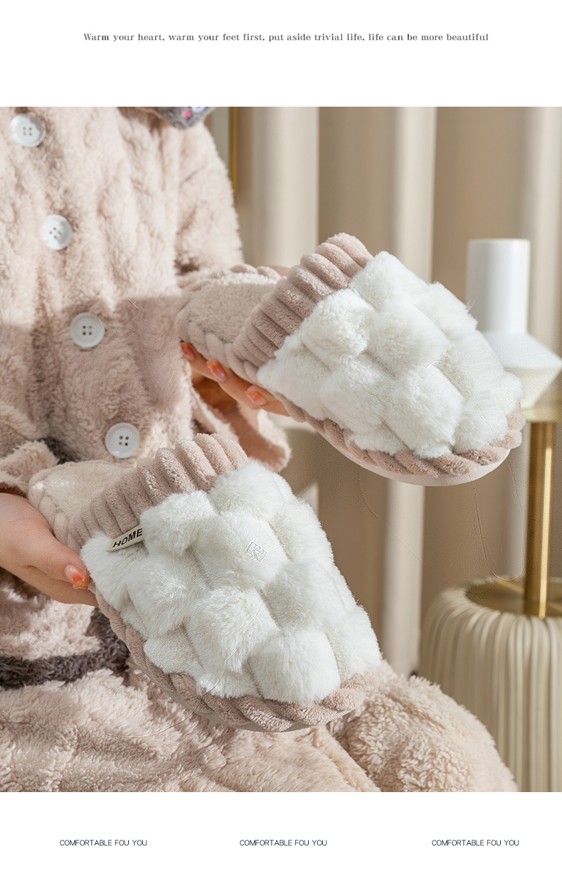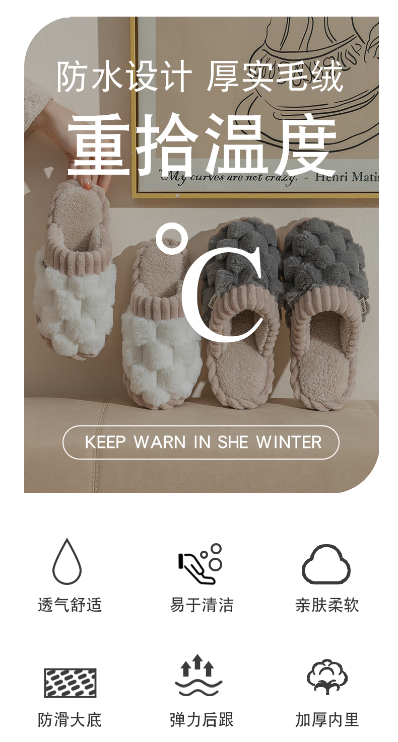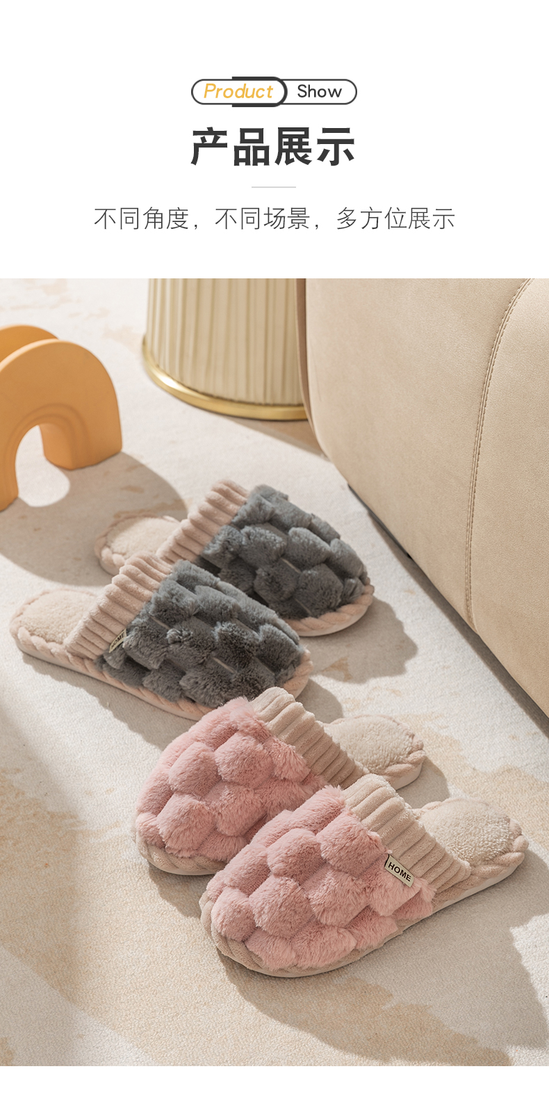 宅小年六边形华夫格仿兔绒家居棉拖颜色随机