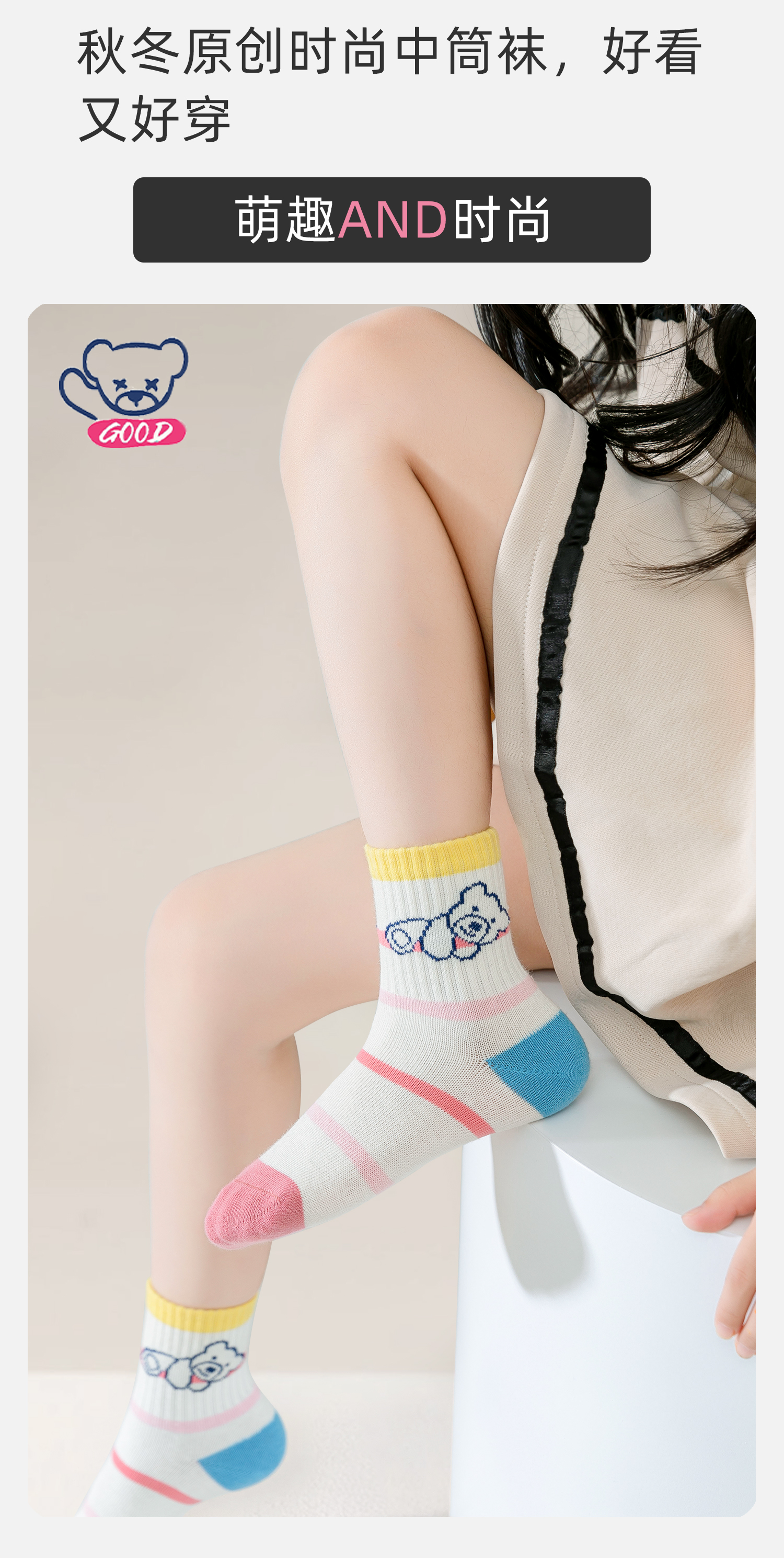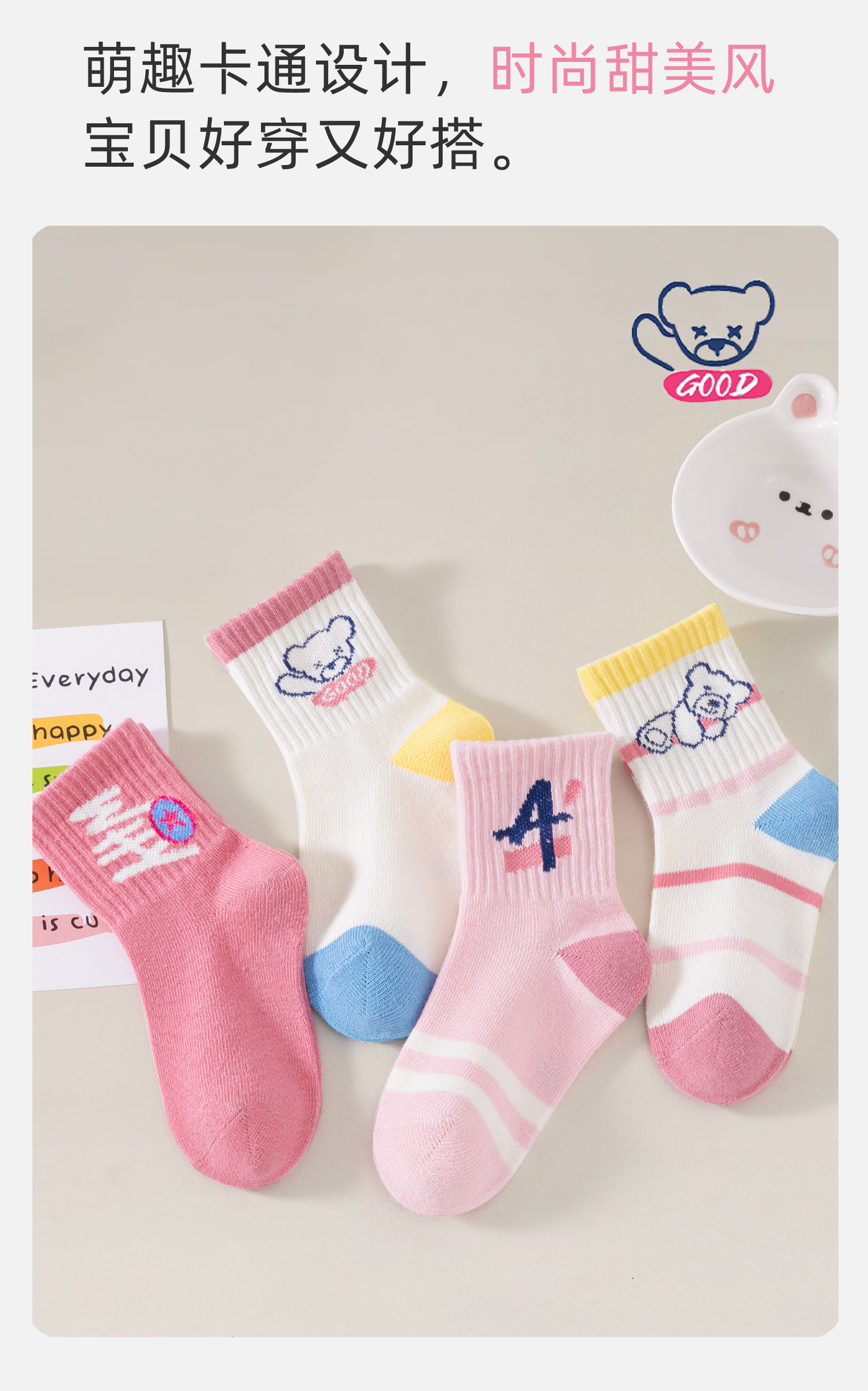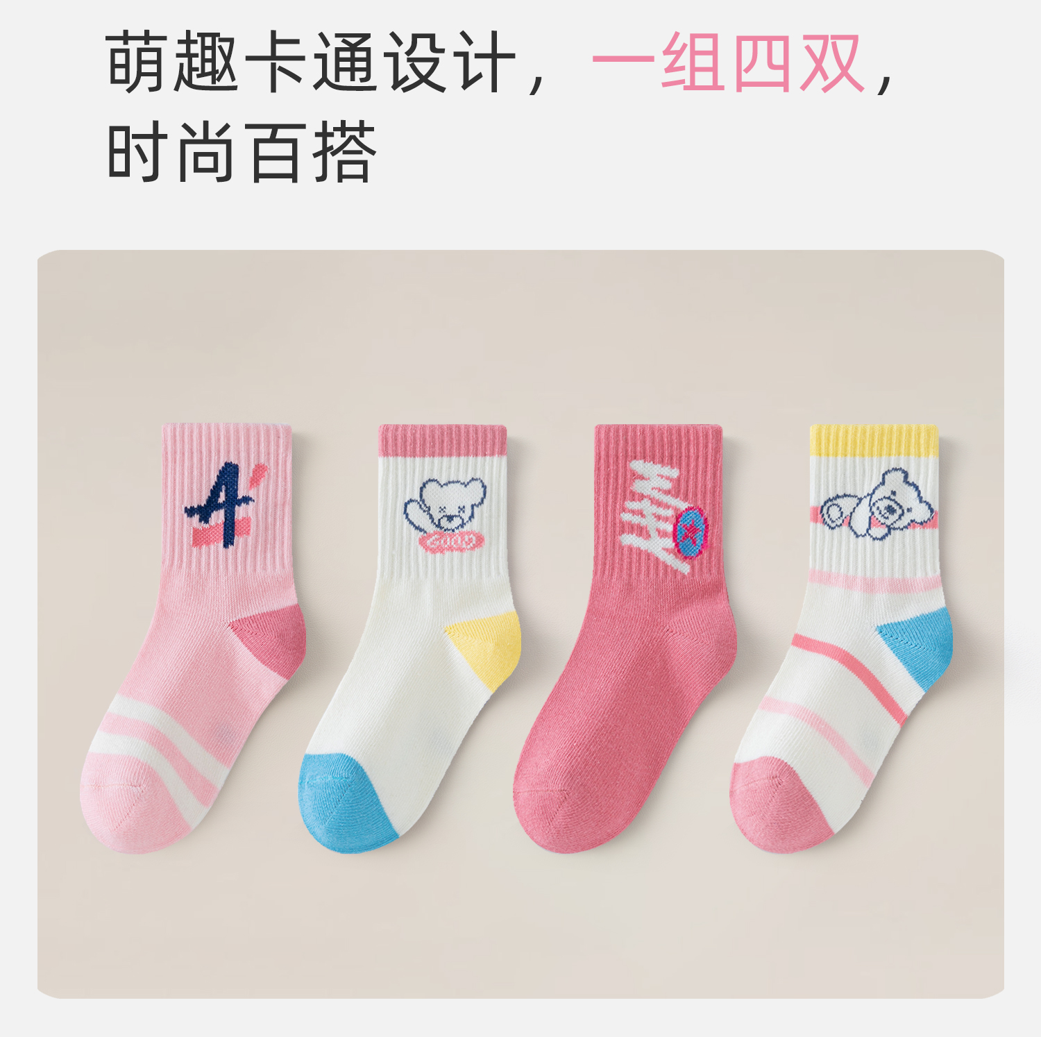 花辞日记秋冬款条纹小熊儿童袜子4双装