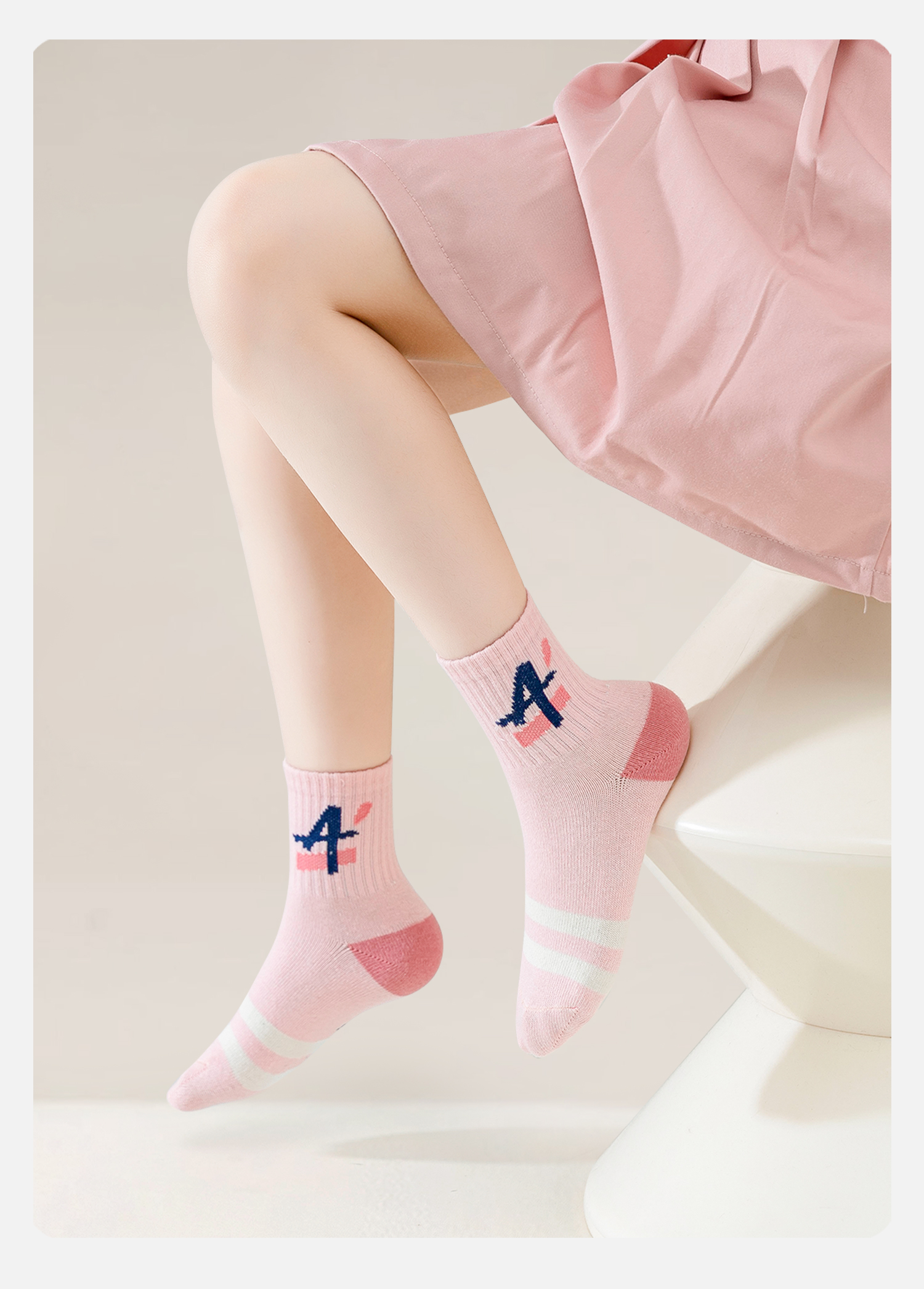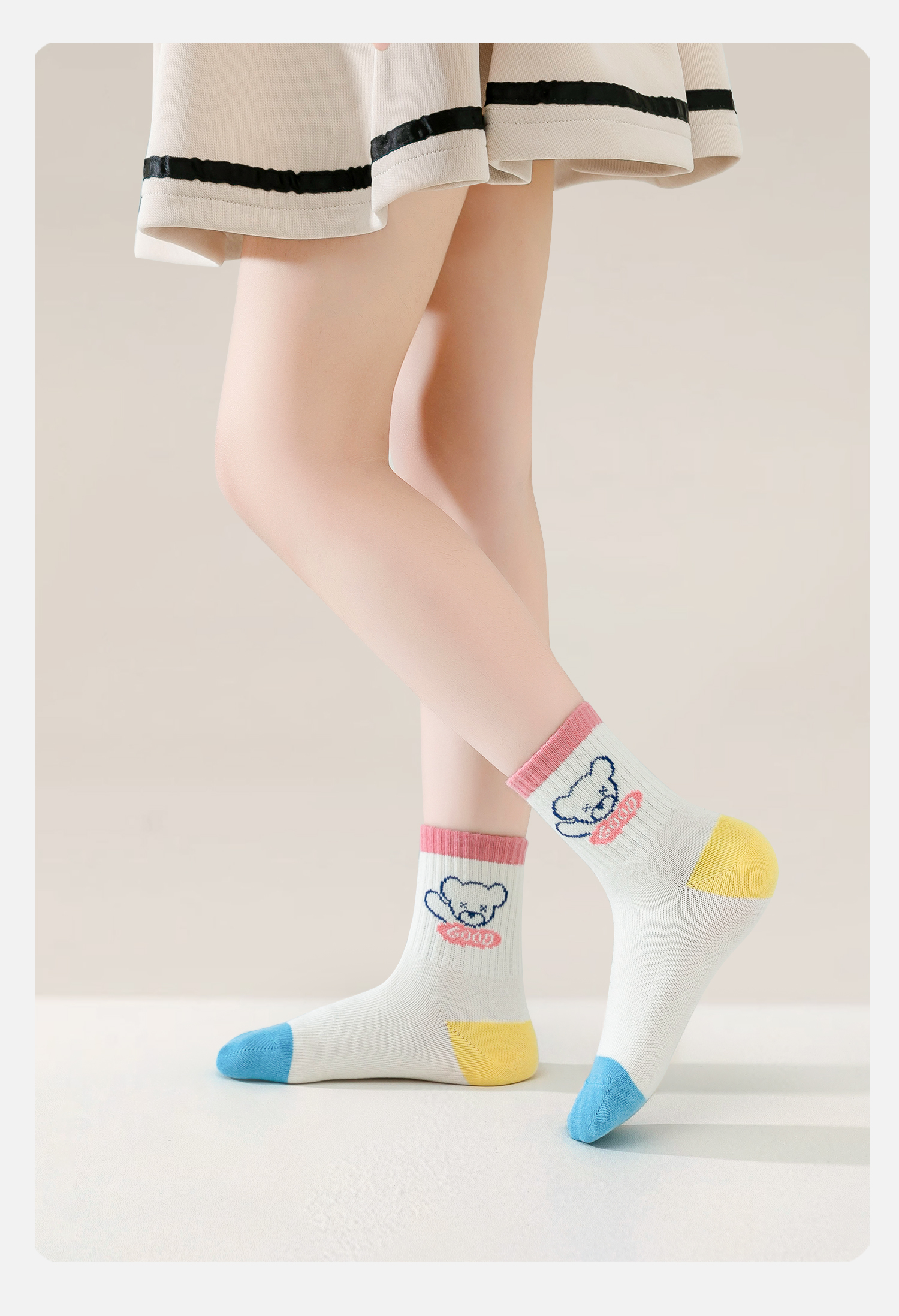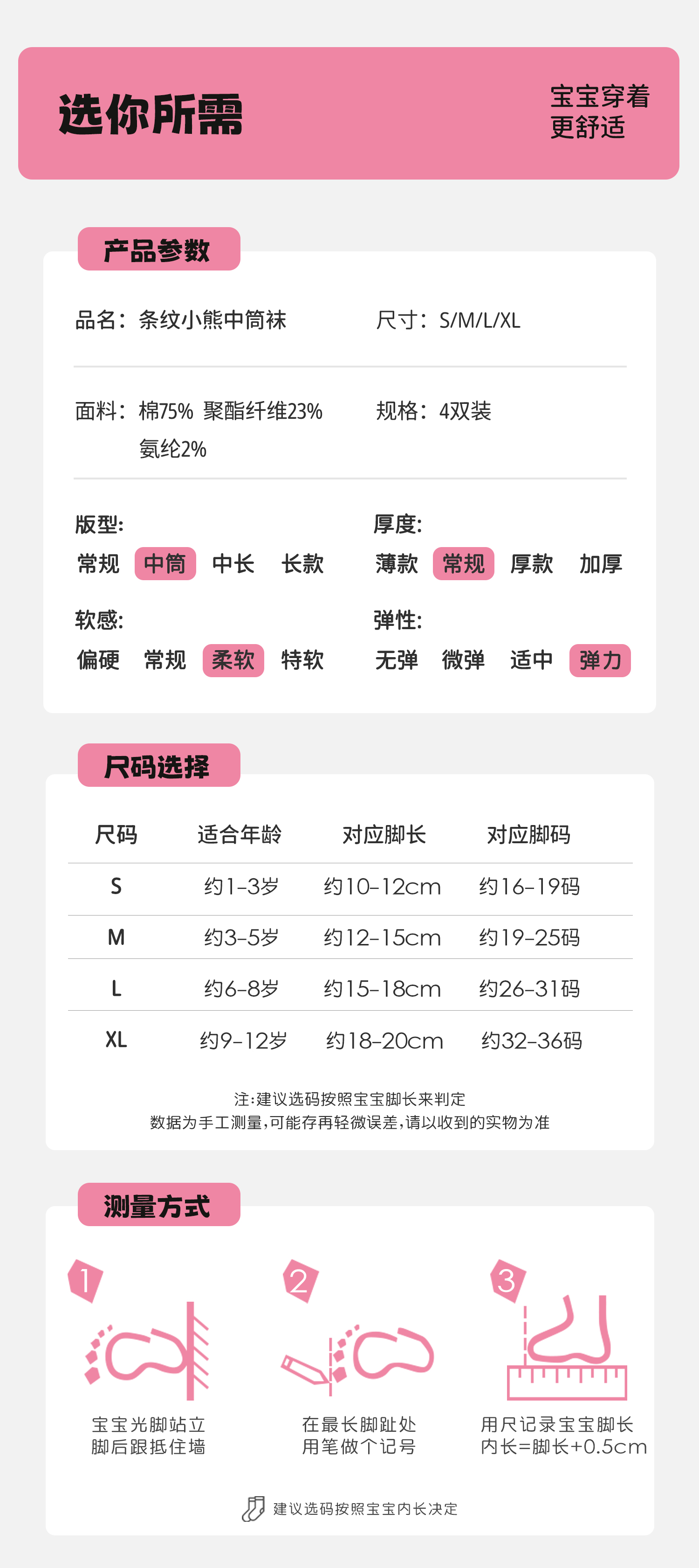 花辞日记秋冬款条纹小熊儿童袜子4双装