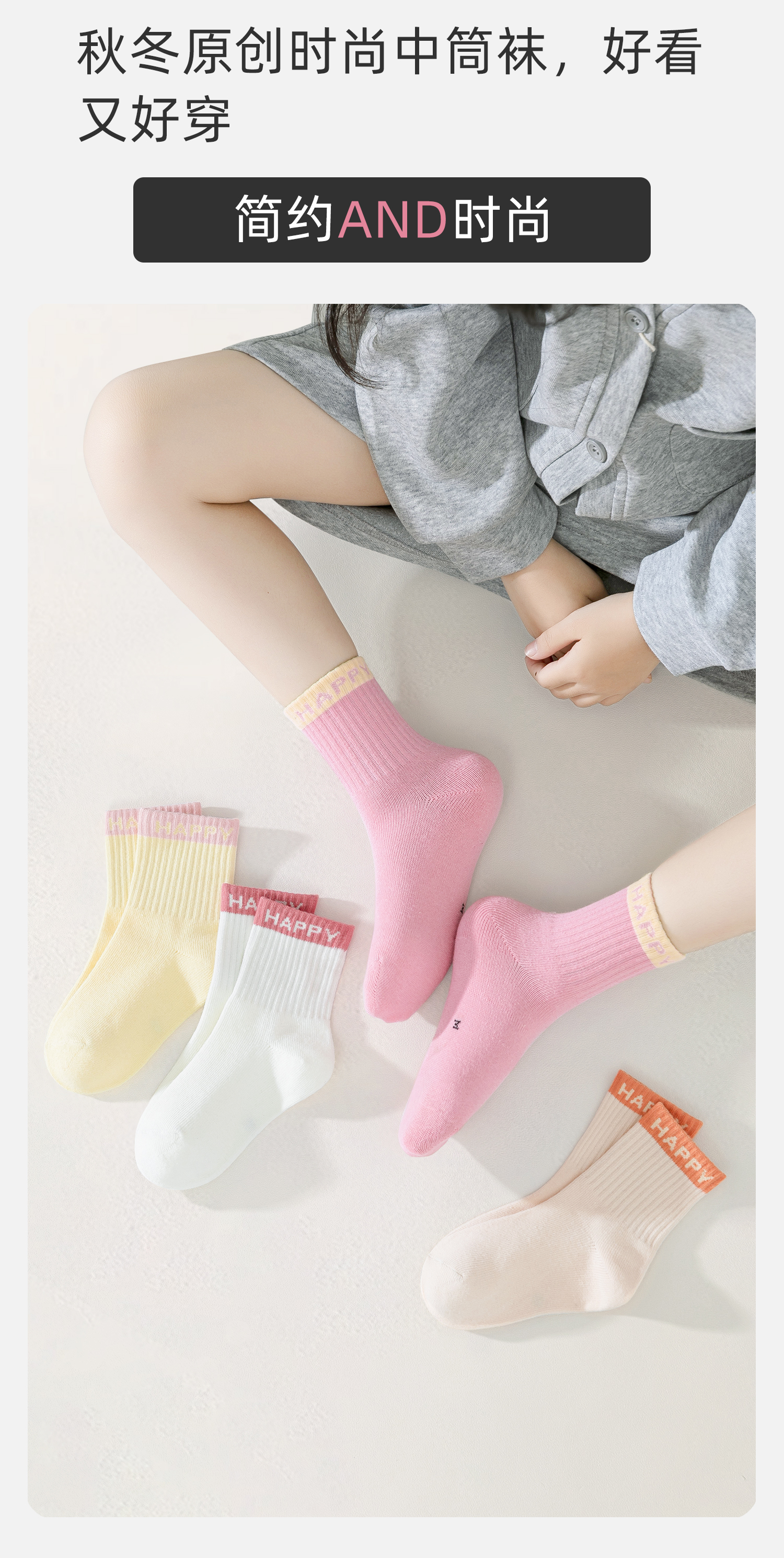 花辞日记儿童女袜4双装秋冬款拼色happy MW-066