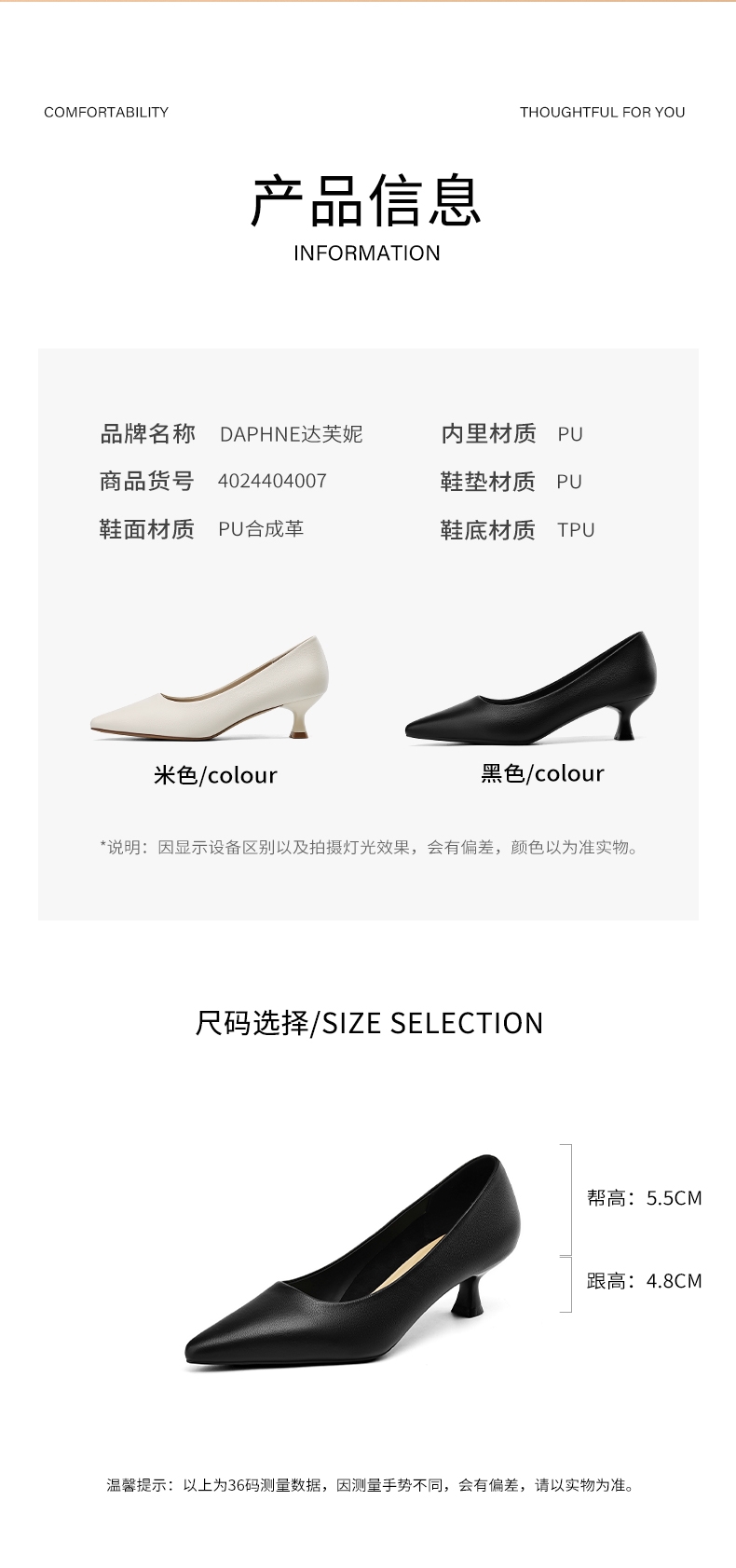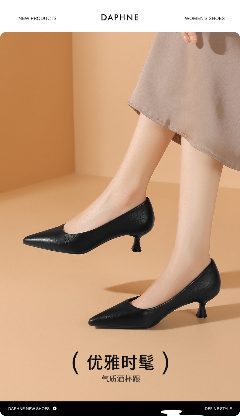 达芙妮3公分小跟鞋低跟尖头高跟鞋细跟单鞋4024404007