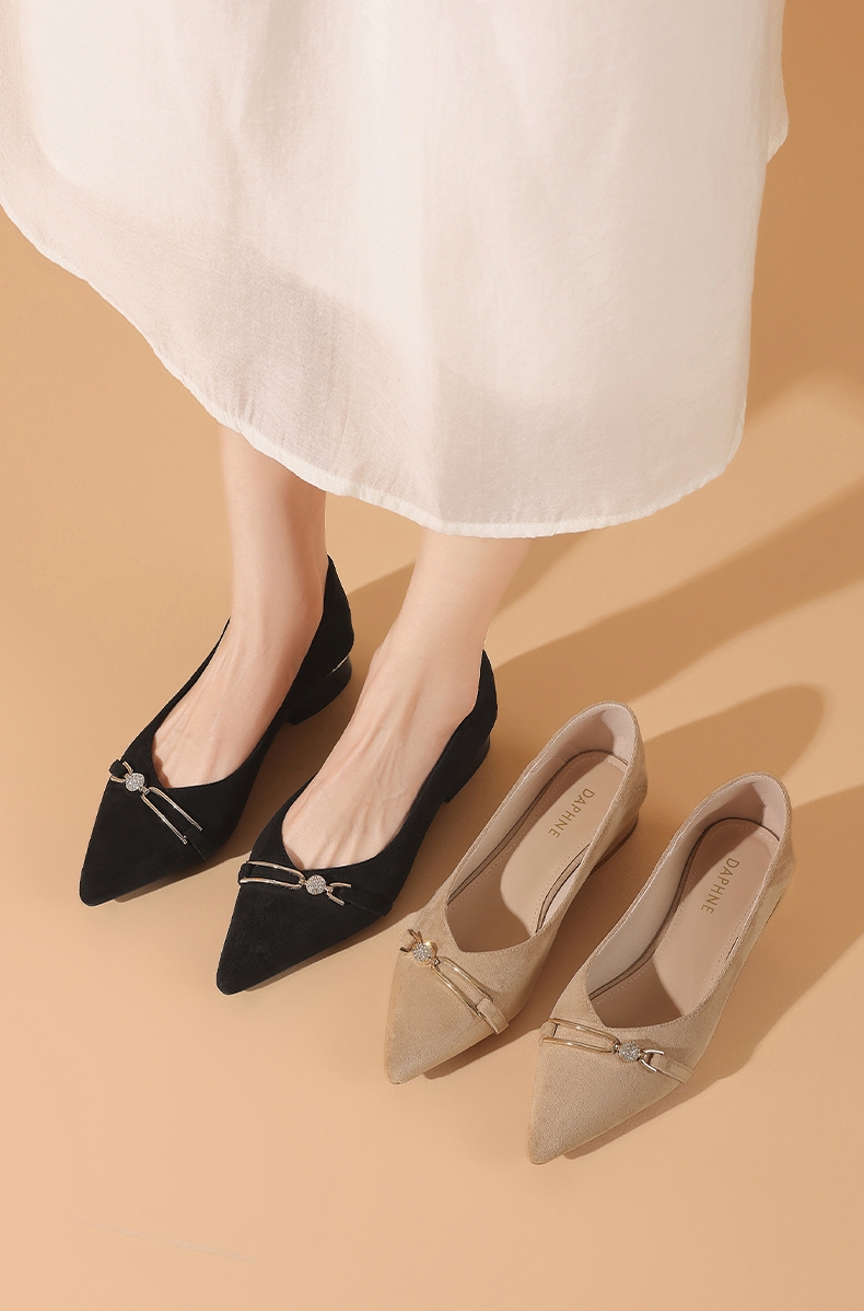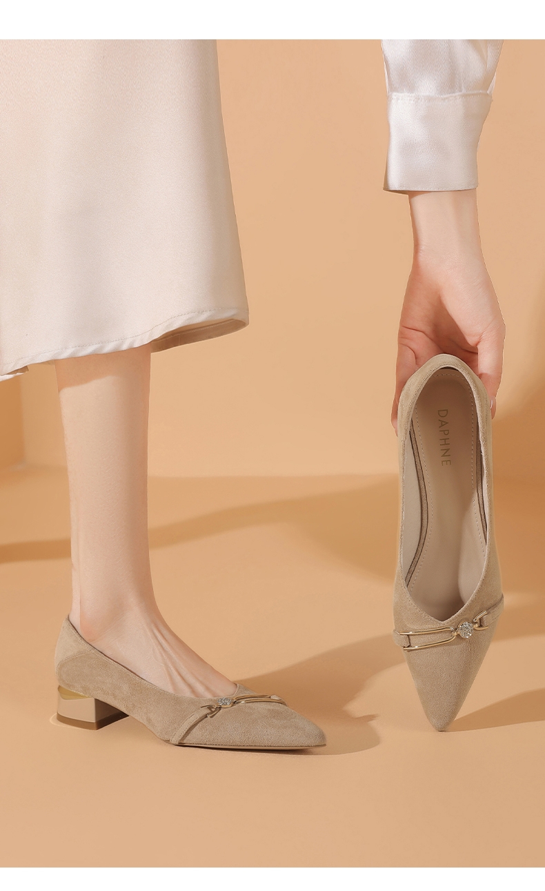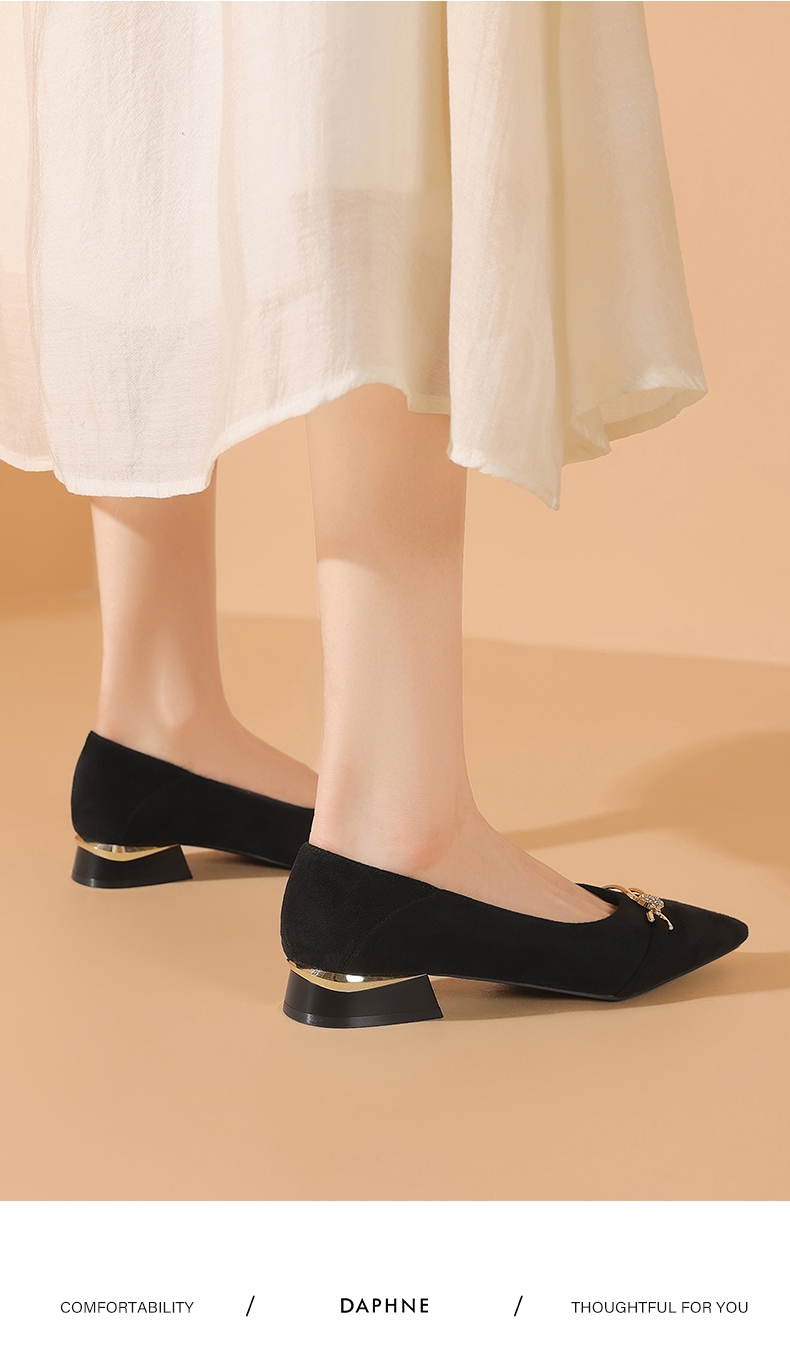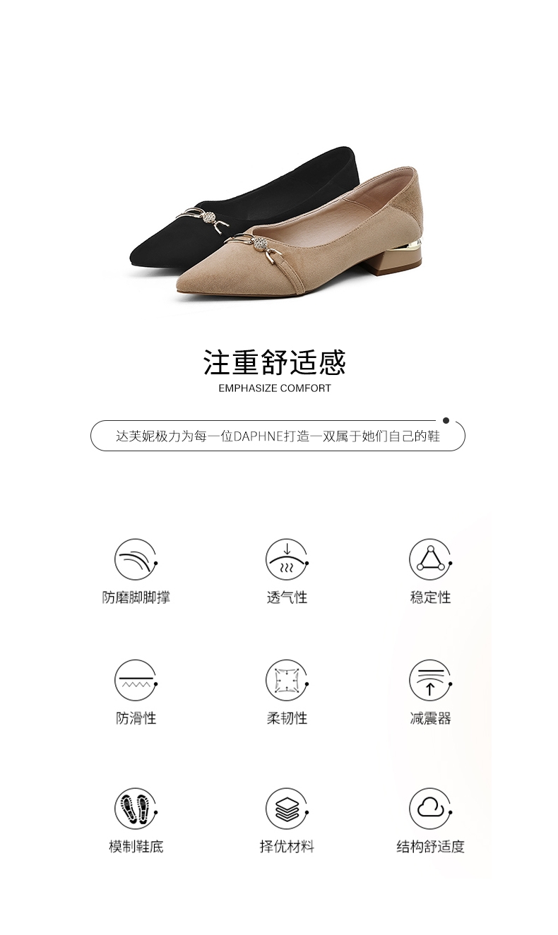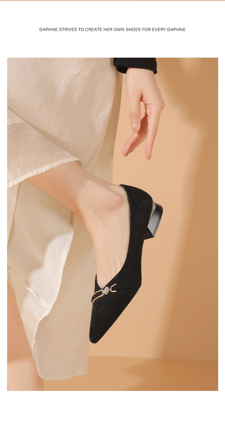 达芙妮女士气质单鞋女鞋新款尖头平底粗跟浅口高跟鞋4024404010