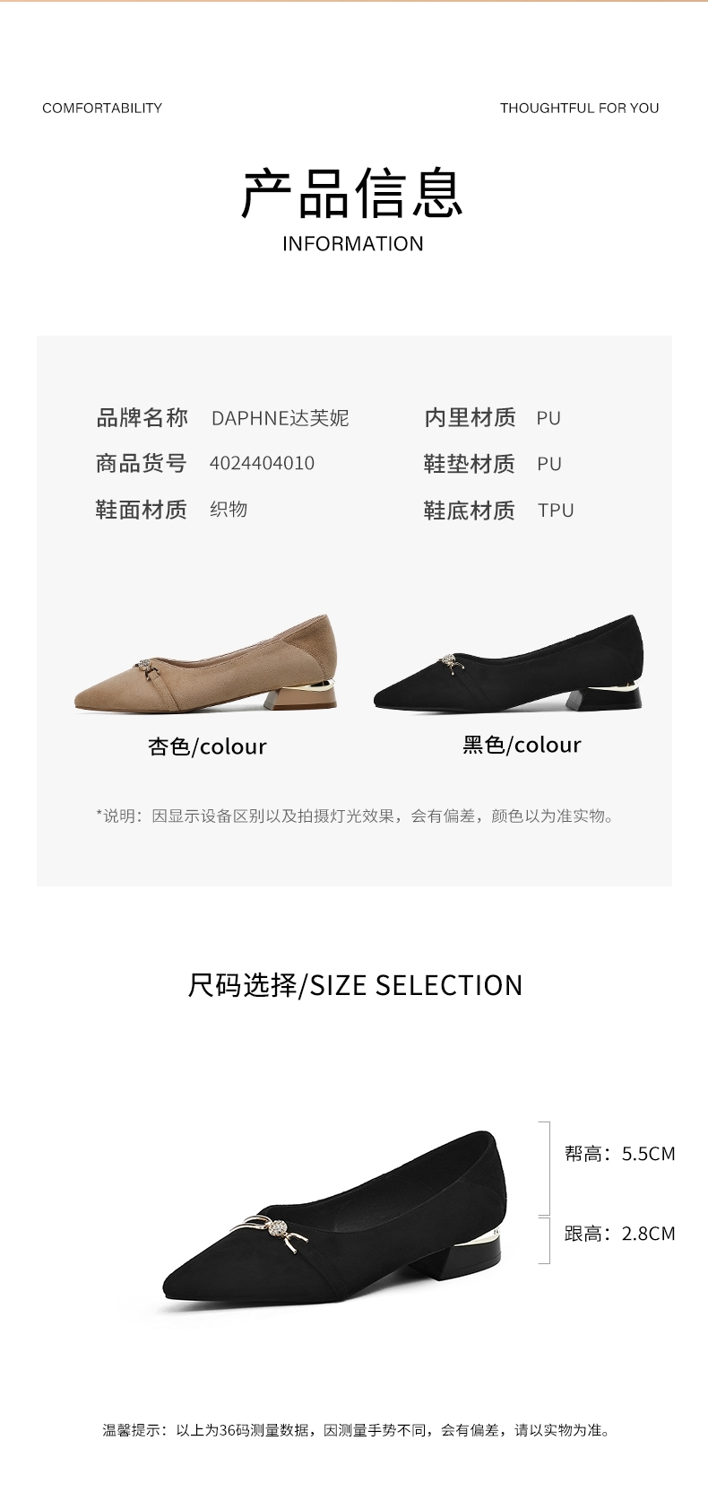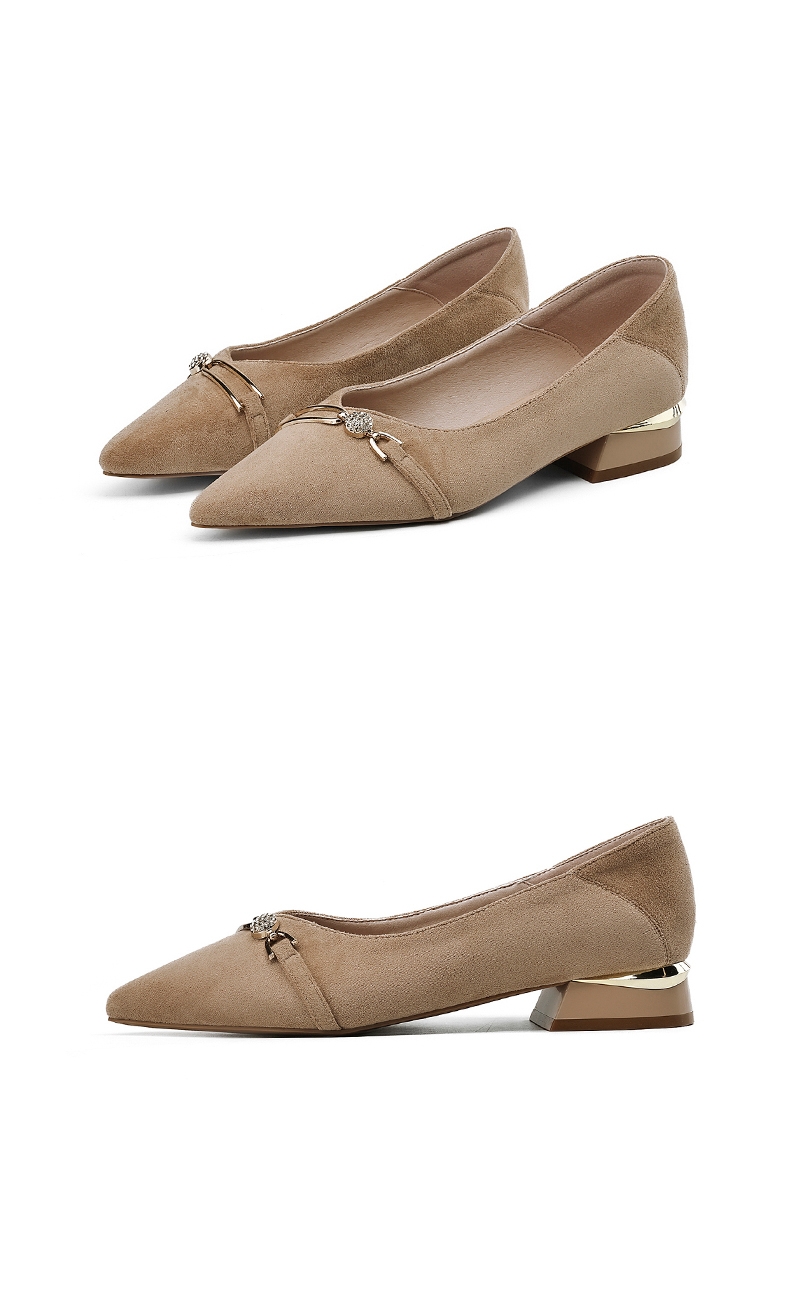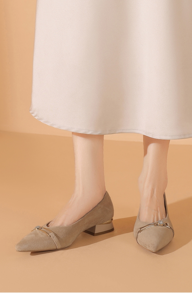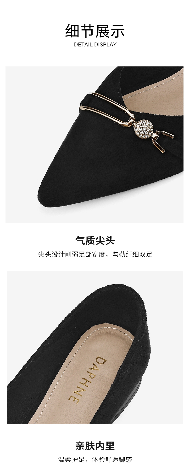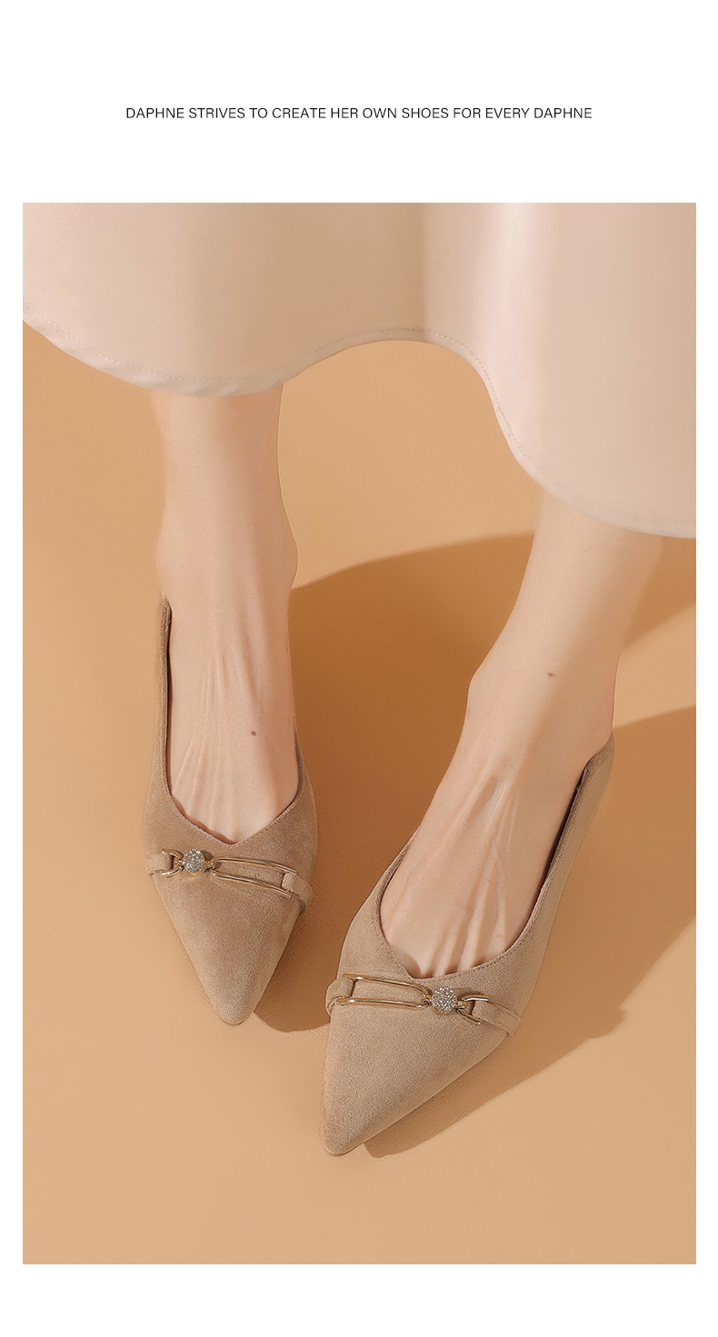 达芙妮女士气质单鞋女鞋新款尖头平底粗跟浅口高跟鞋4024404010