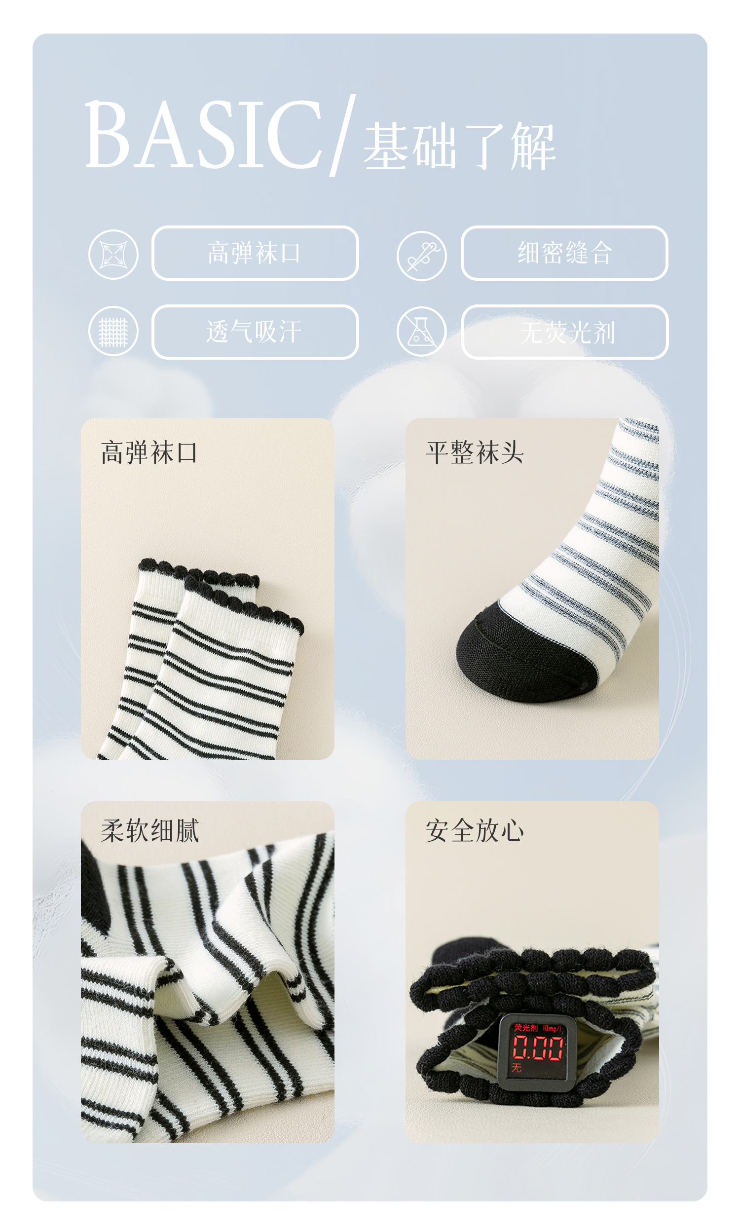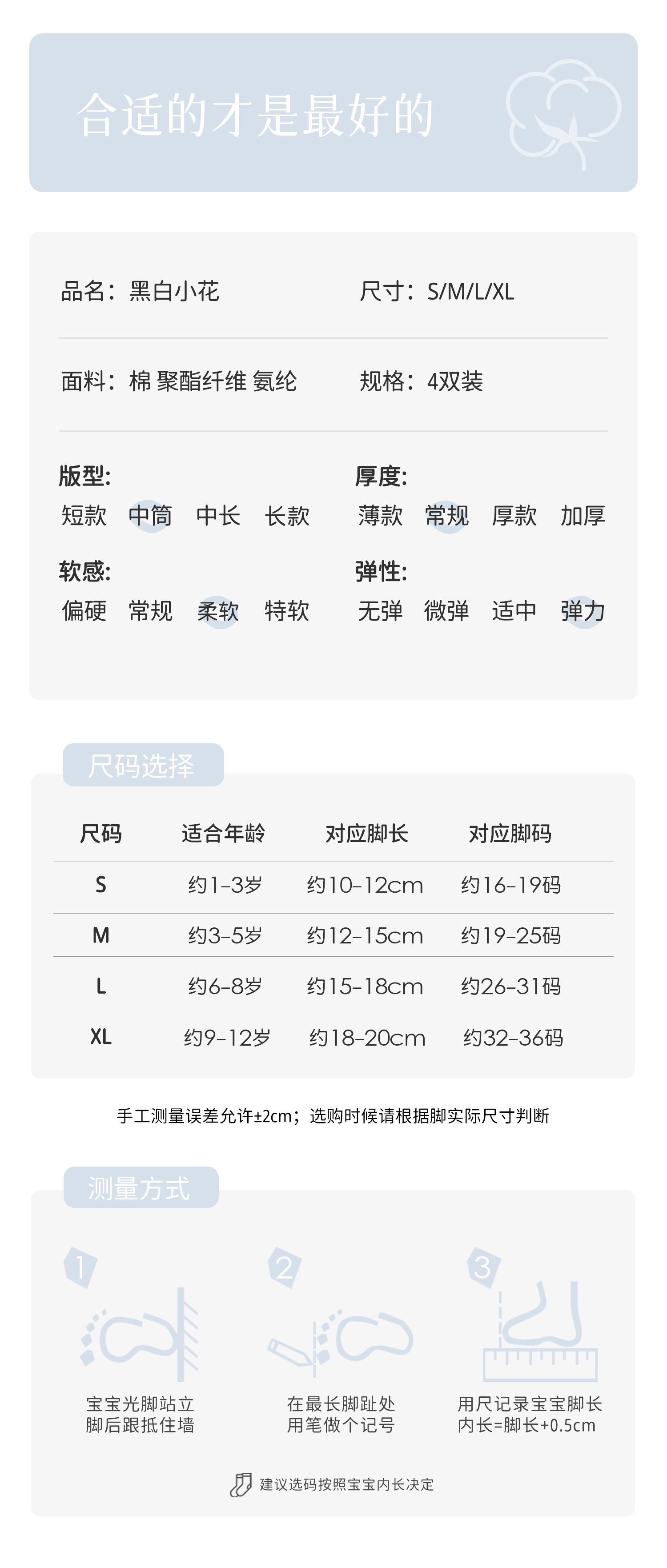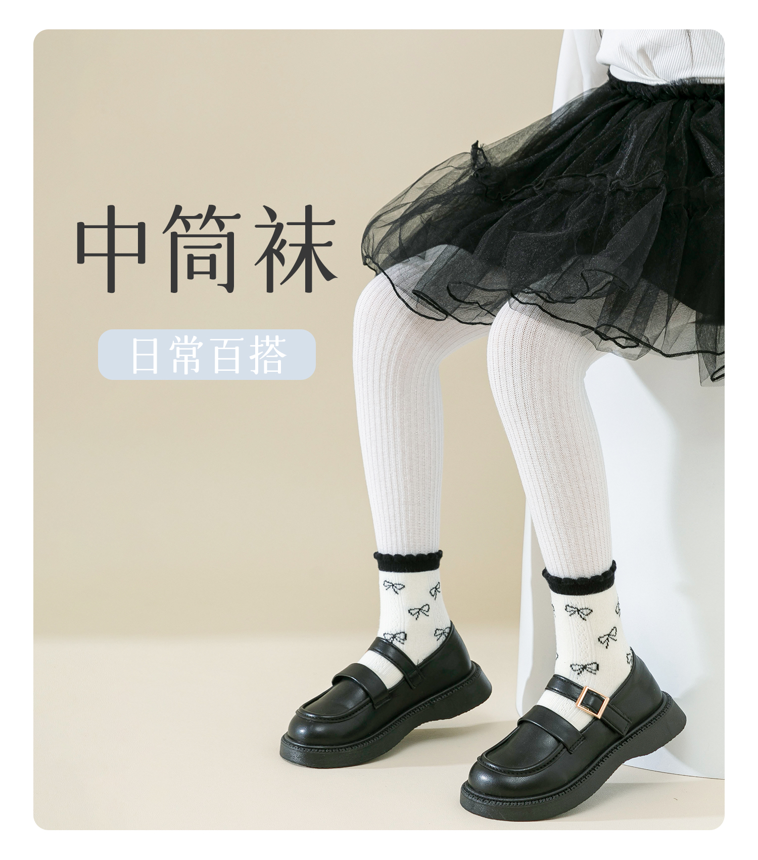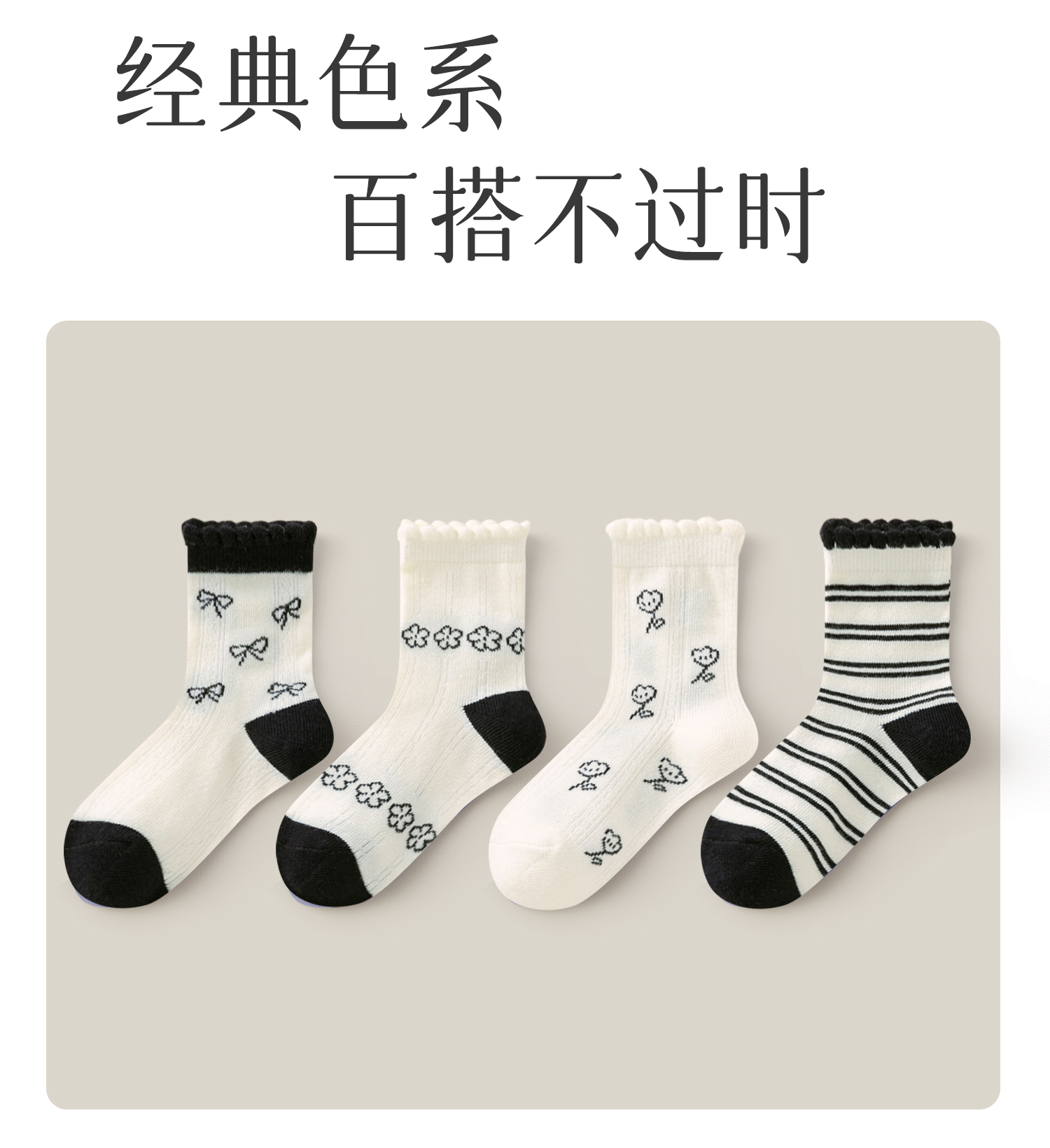 花辞日记儿童女袜秋冬款黑白小花 MW-0744双装