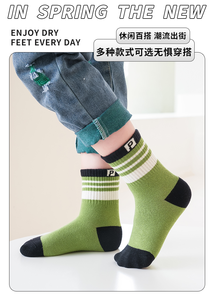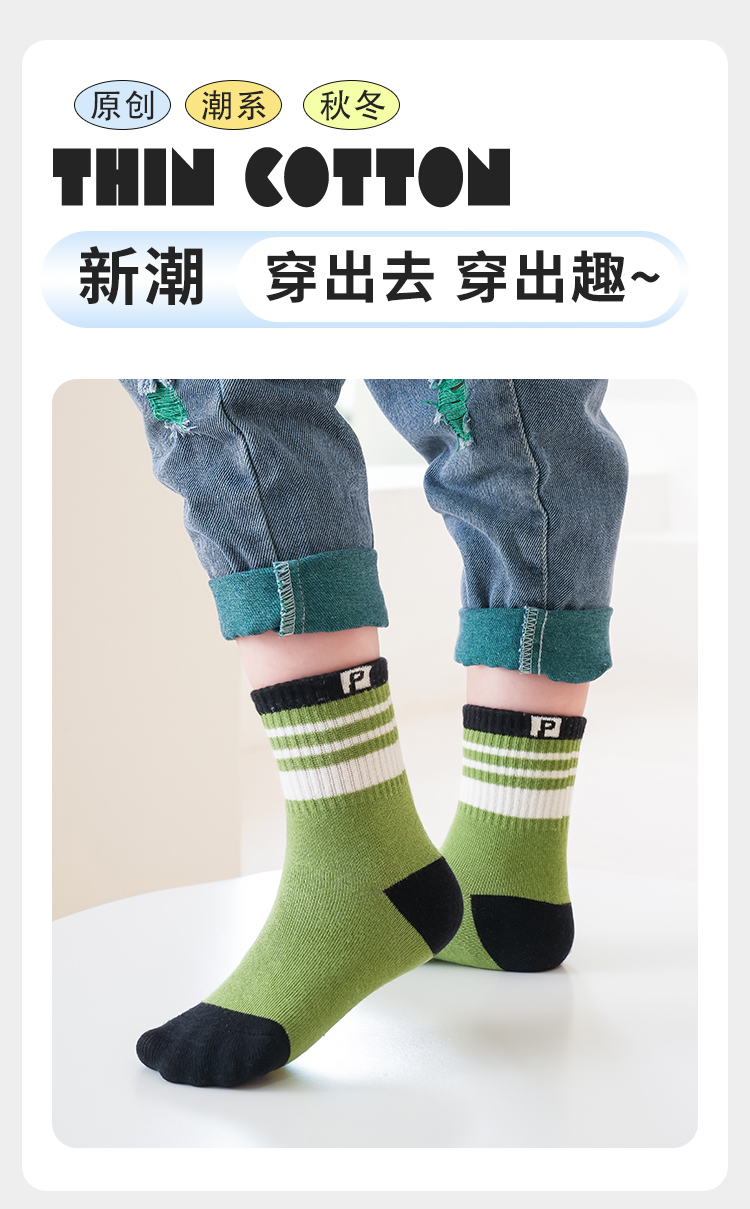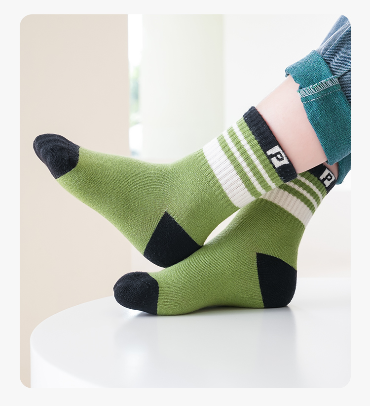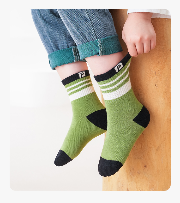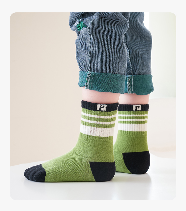 花辞日记儿童无骨袜2471黑绿色JUST中筒袜5色5双装