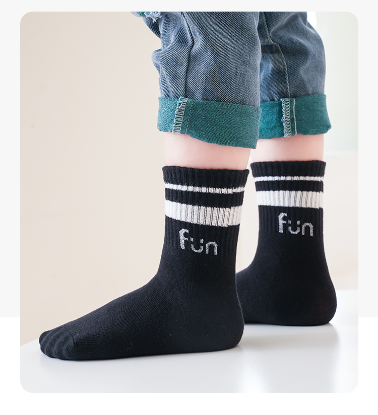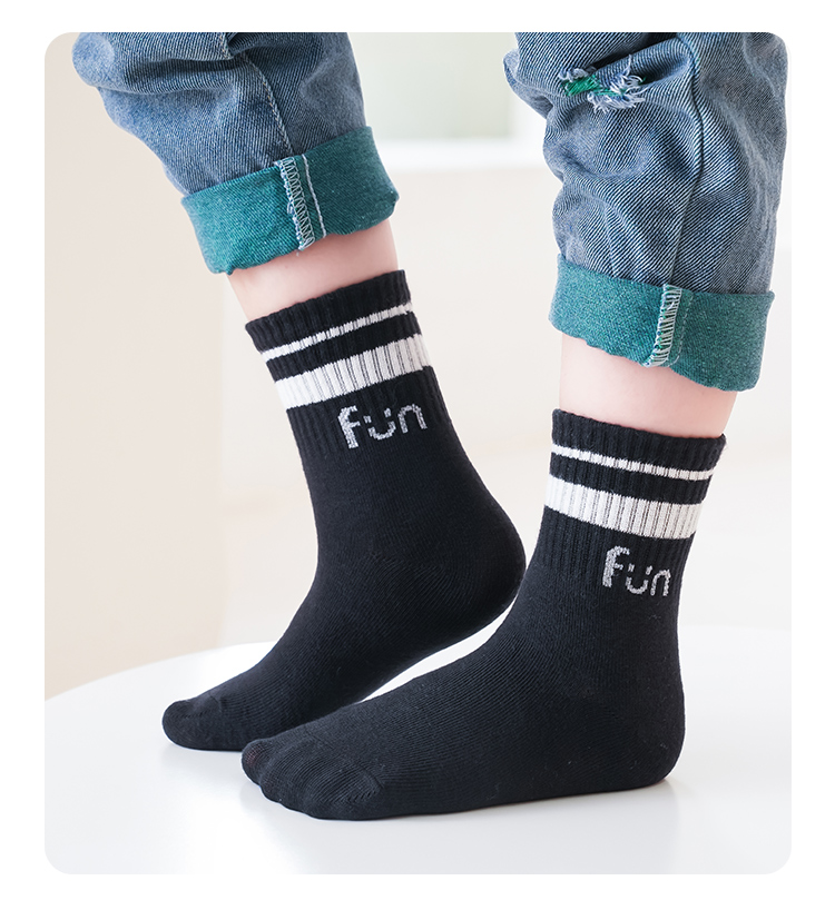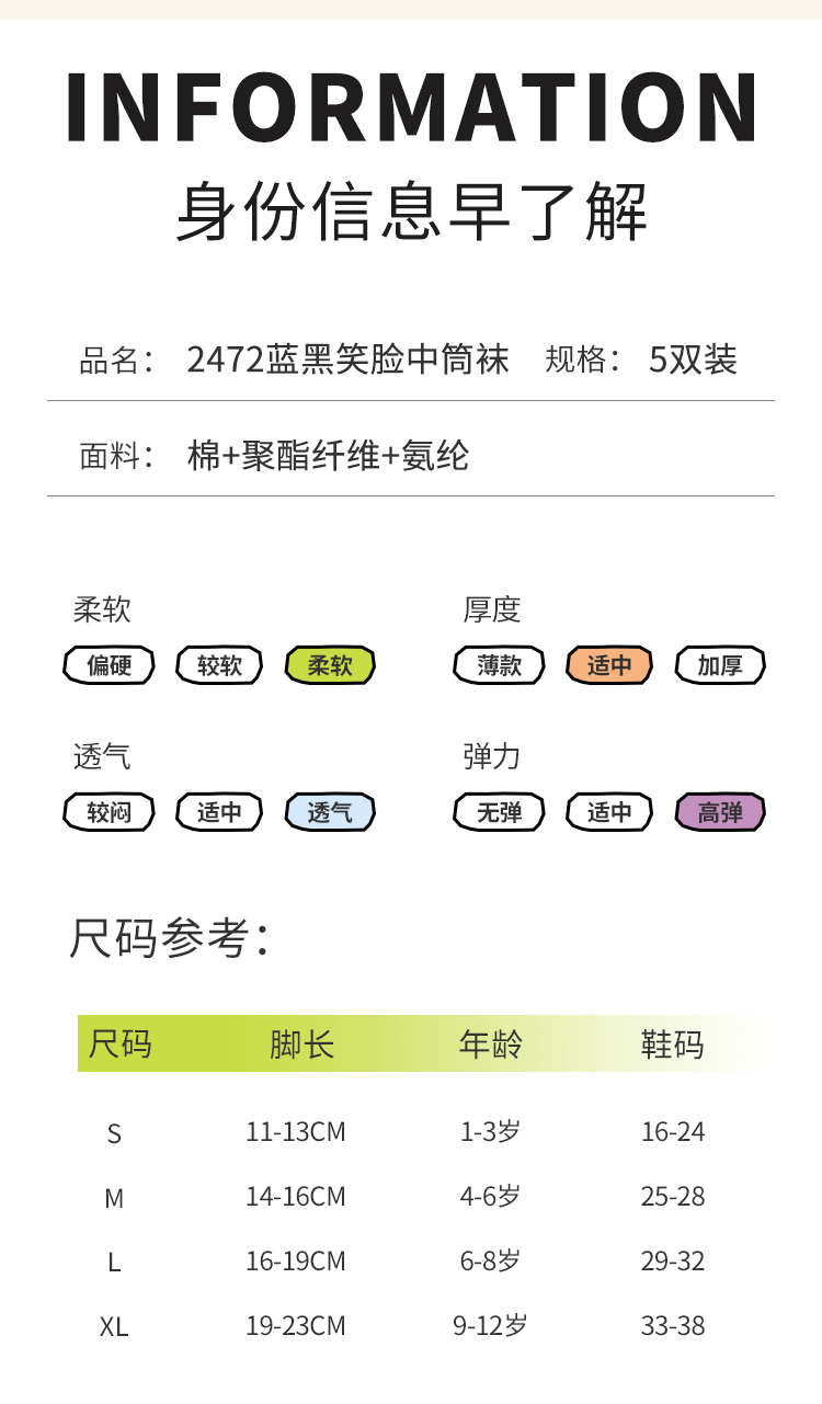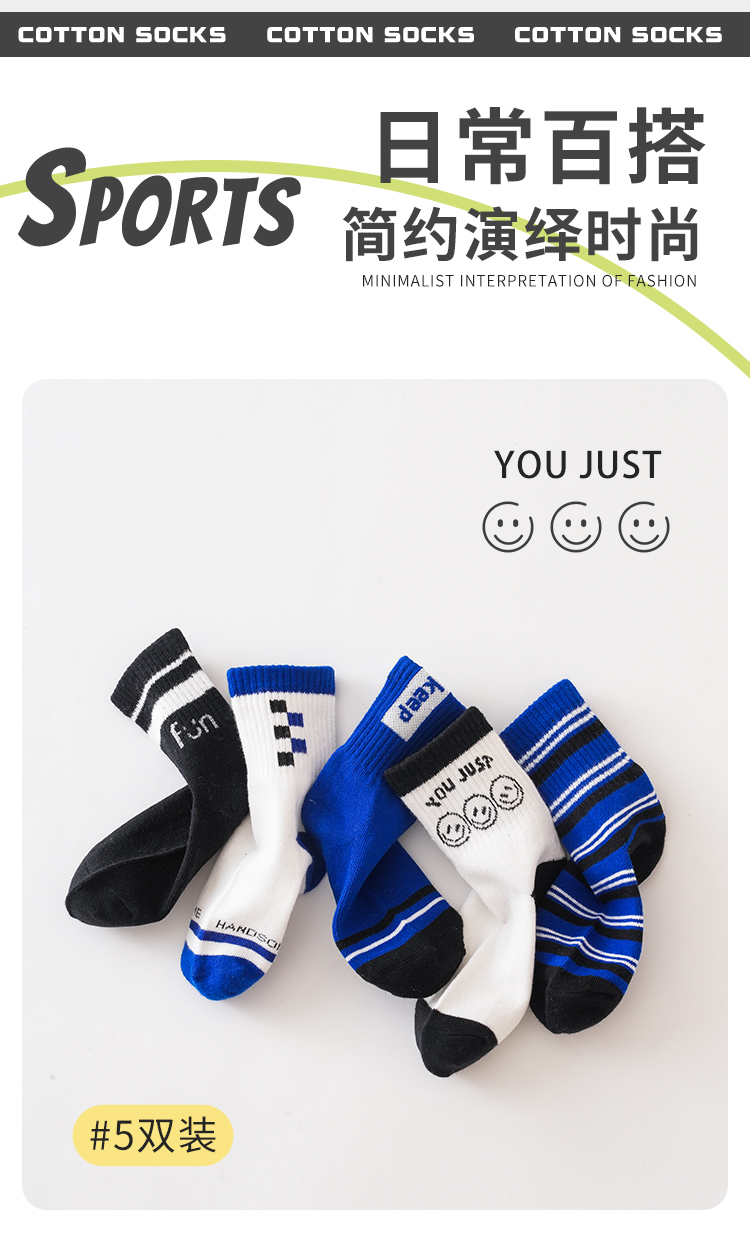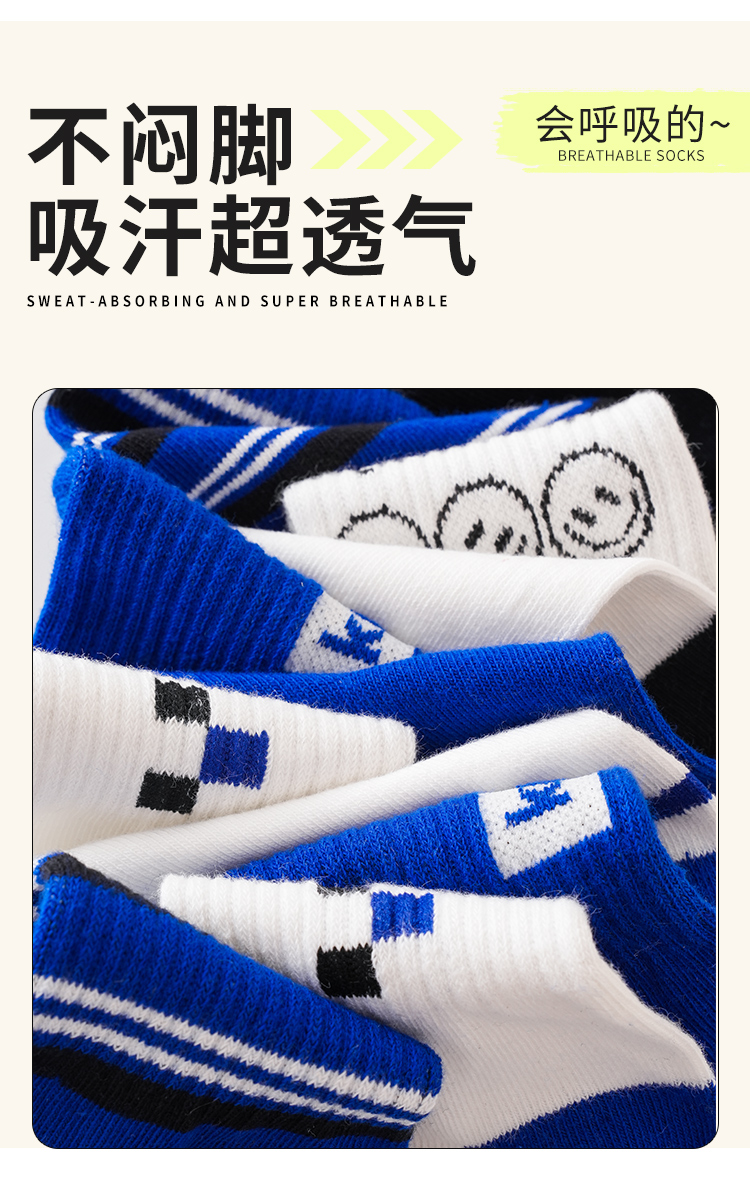 蓝黑色笑脸中筒袜5色【5双装组合】