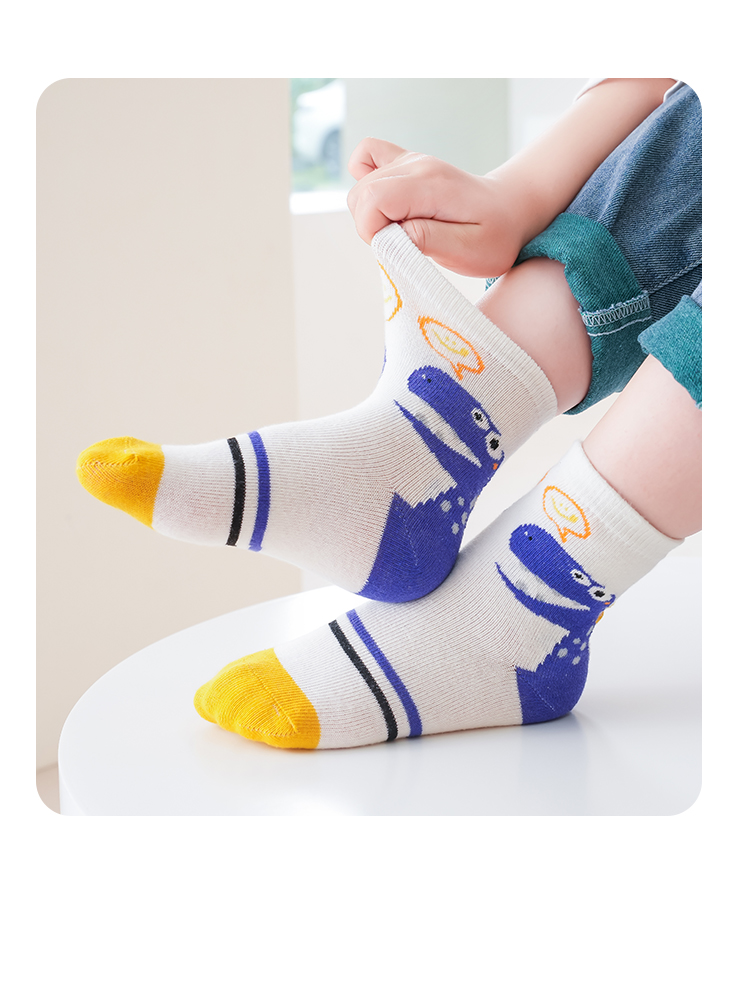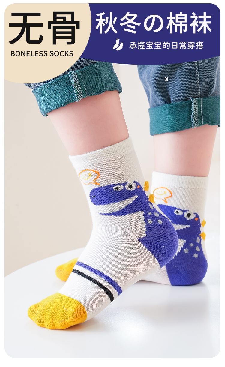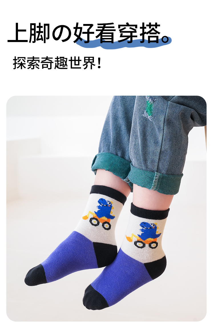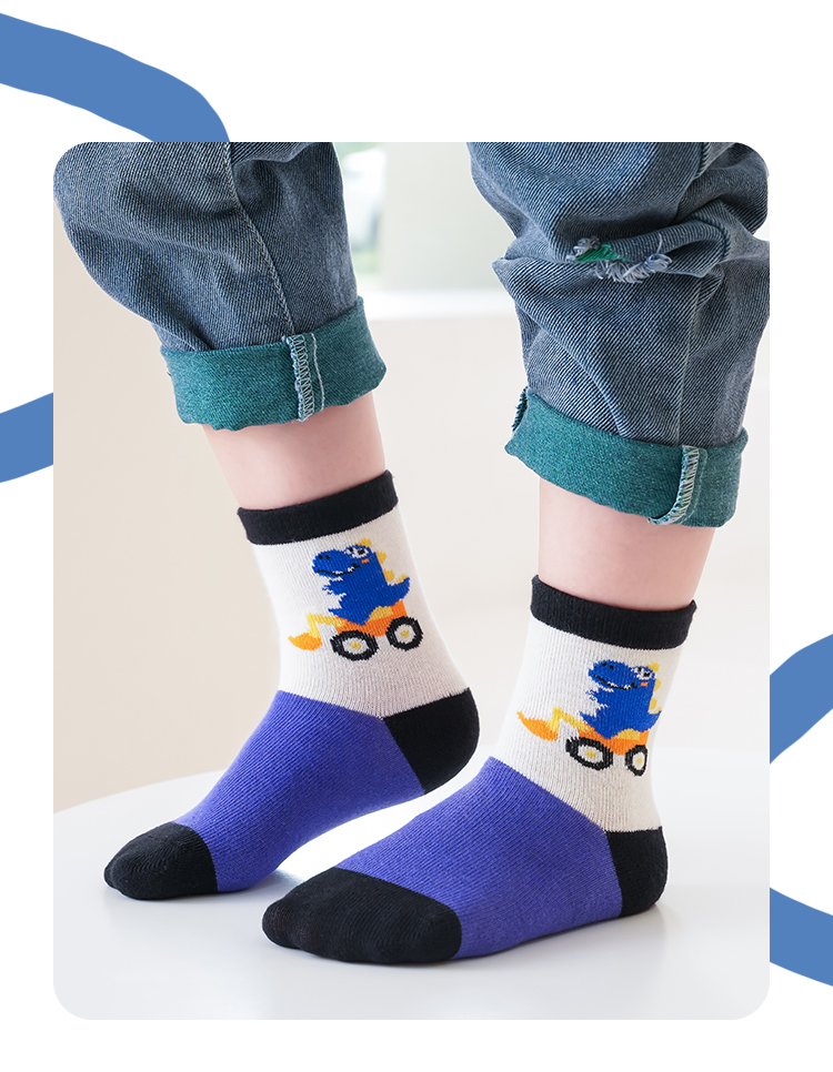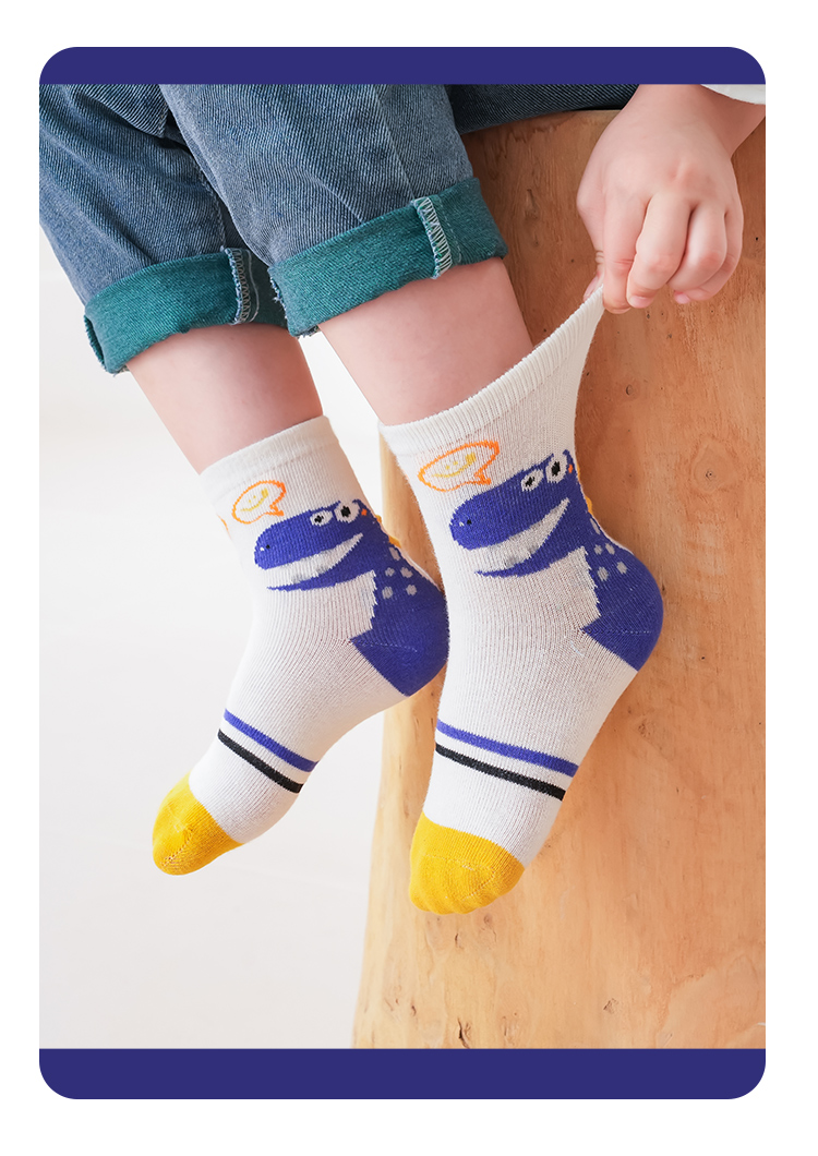 花辞日记儿童无骨袜子2473蓝色系恐龙中筒袜5色组合