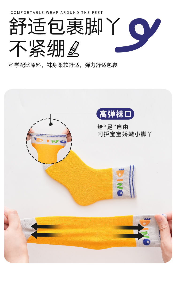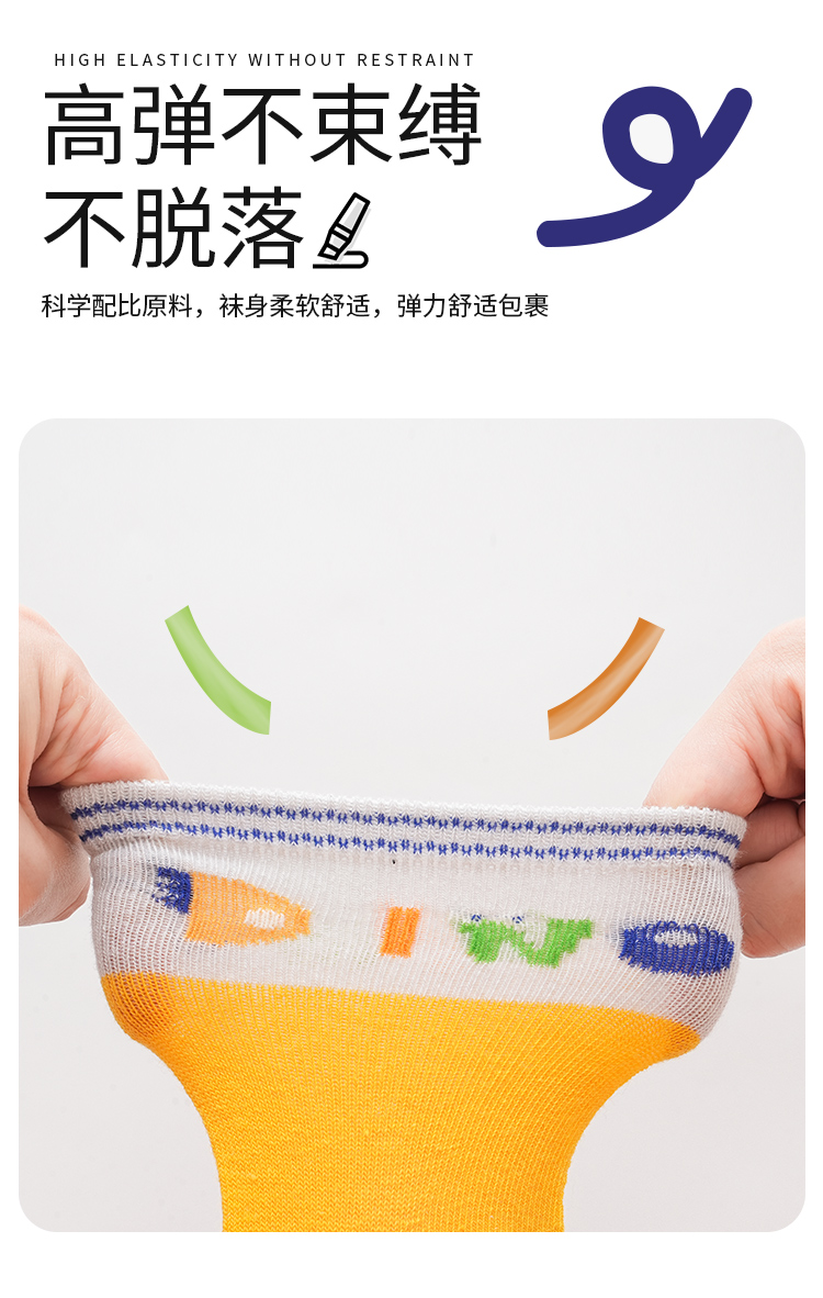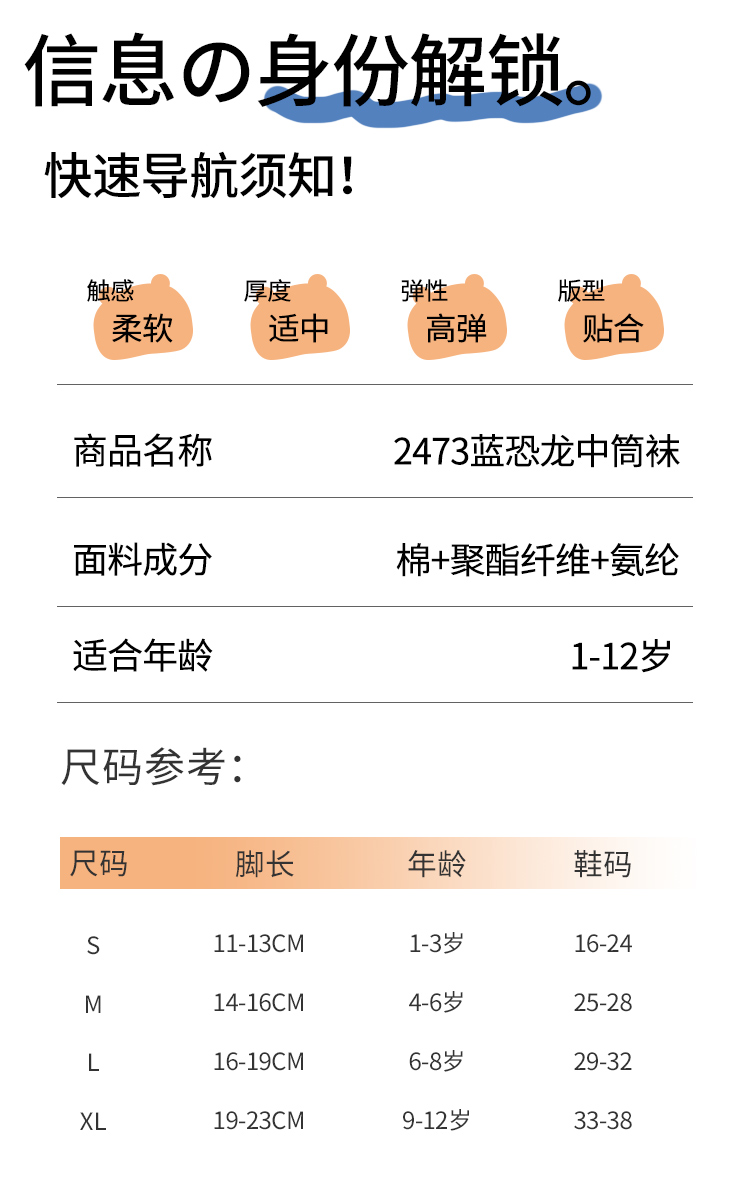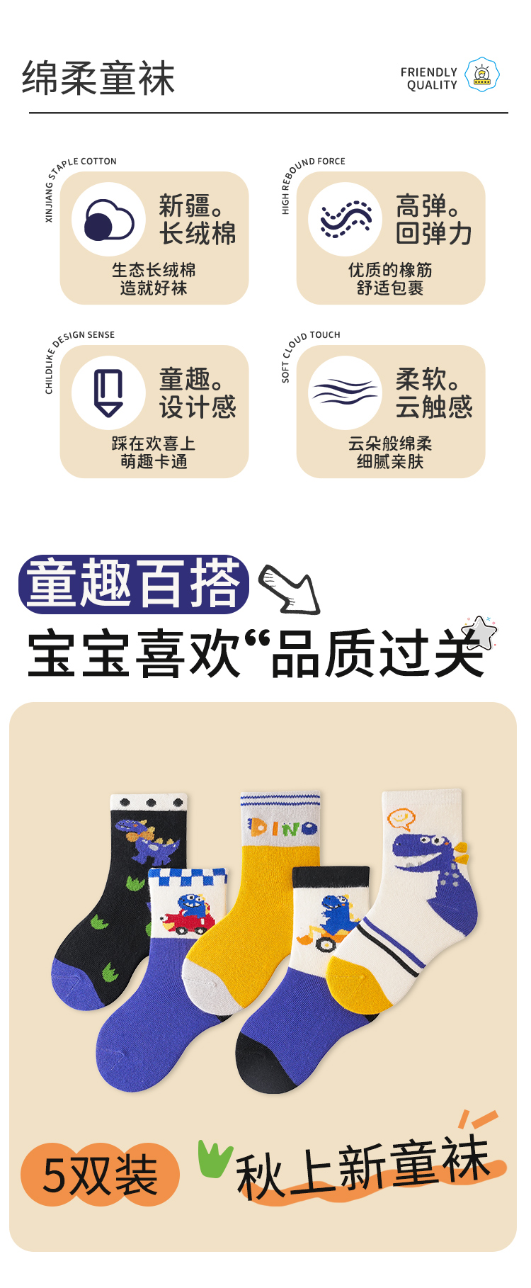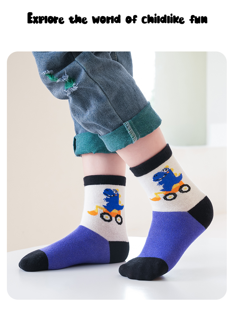 花辞日记儿童无骨袜子2473蓝色系恐龙中筒袜5色组合