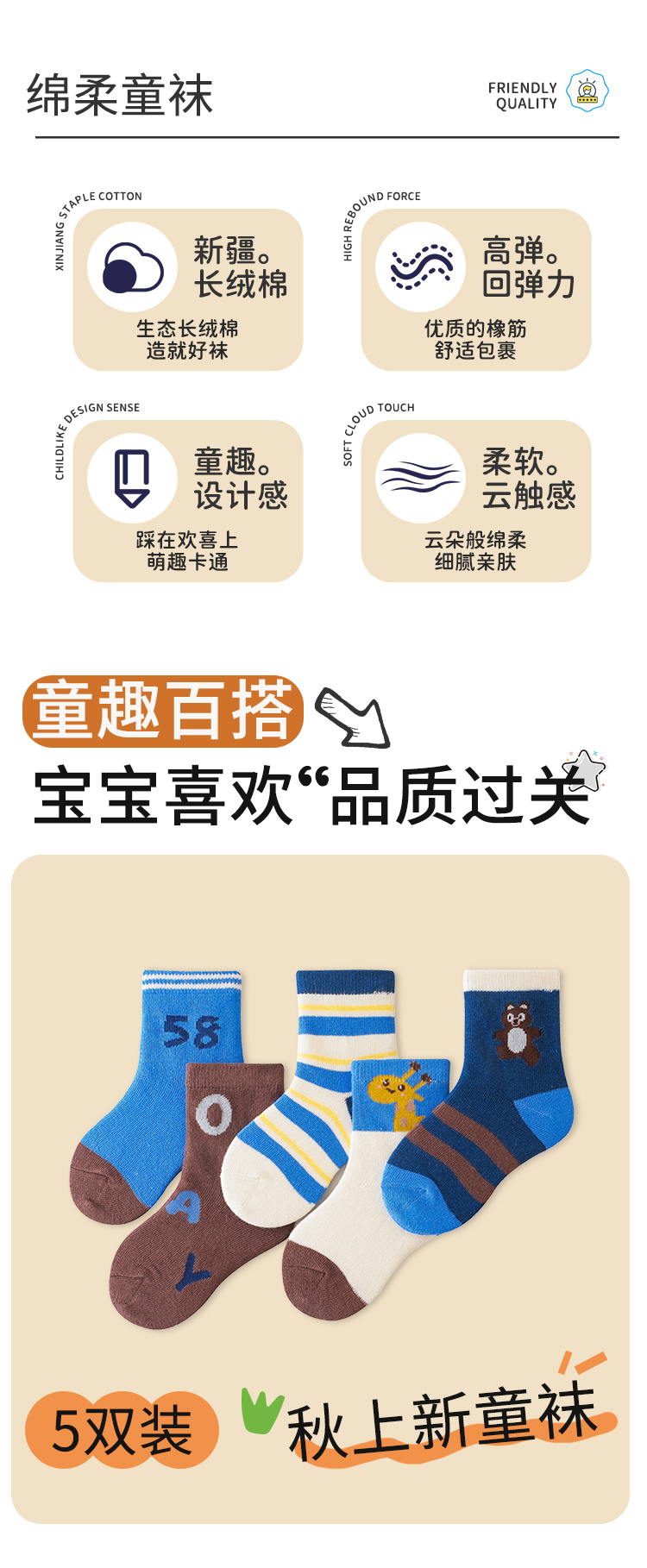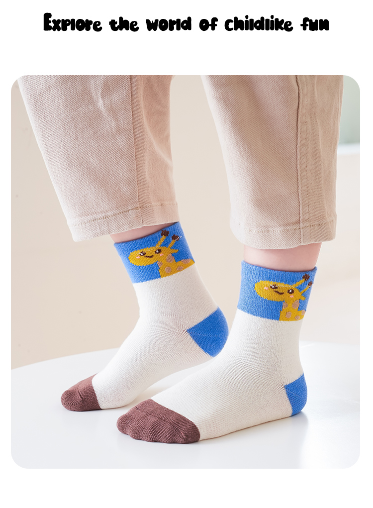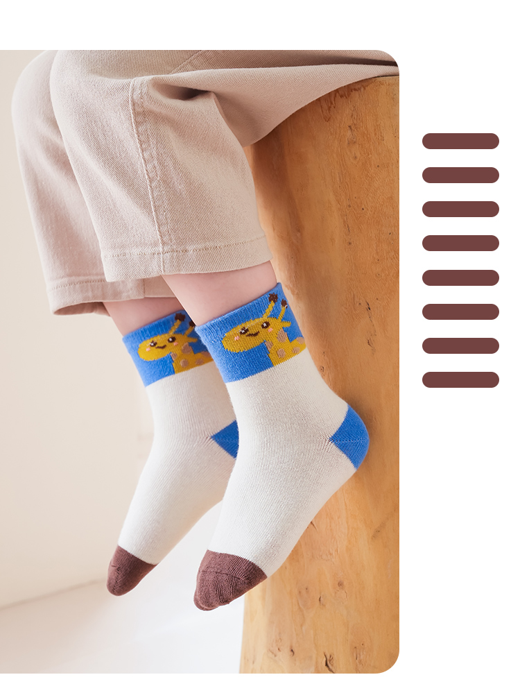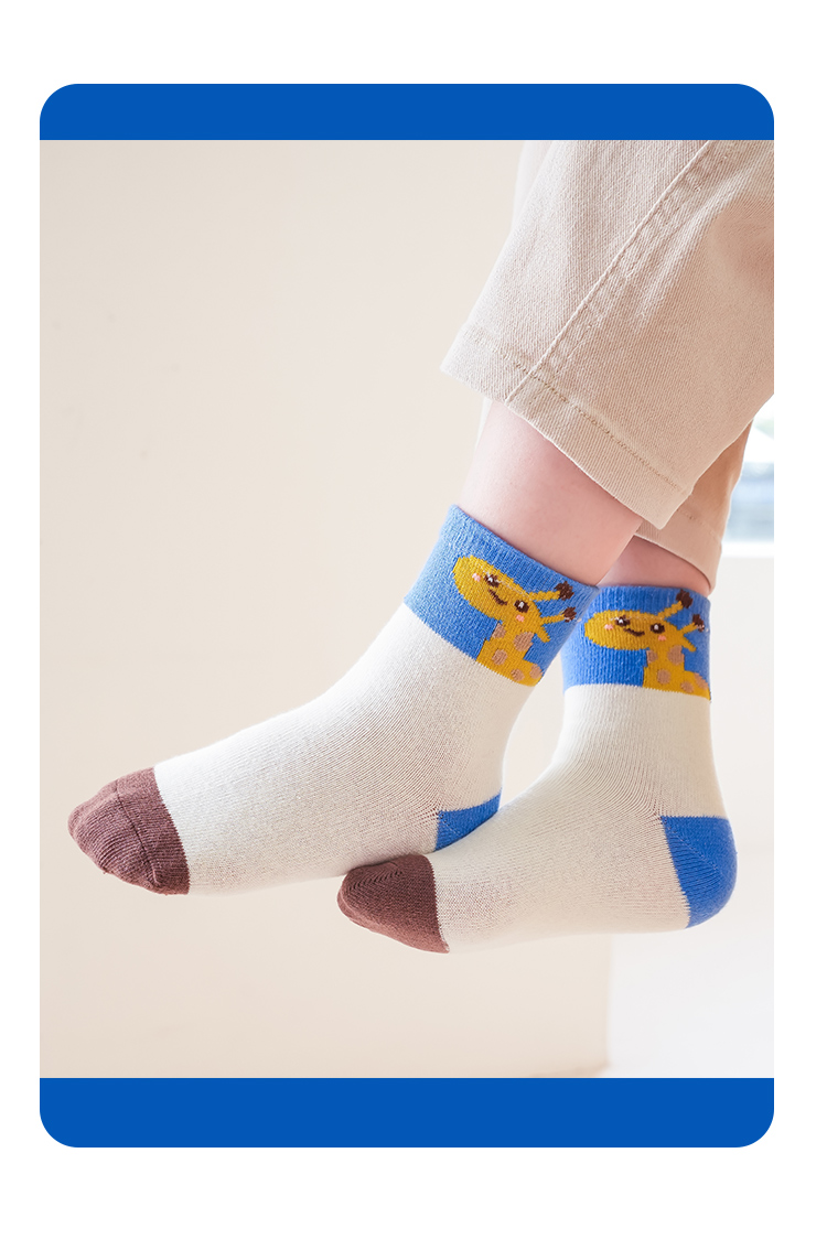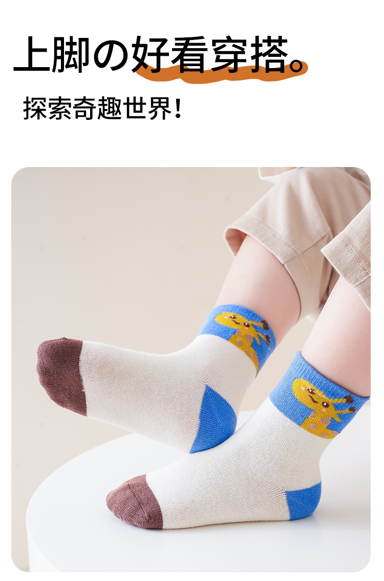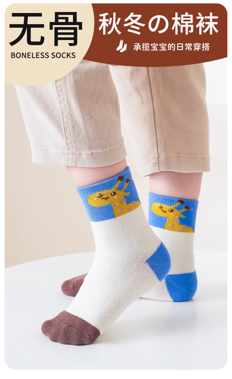 花辞日记儿童无骨袜子2477蓝咖色长颈鹿中筒袜5色组合