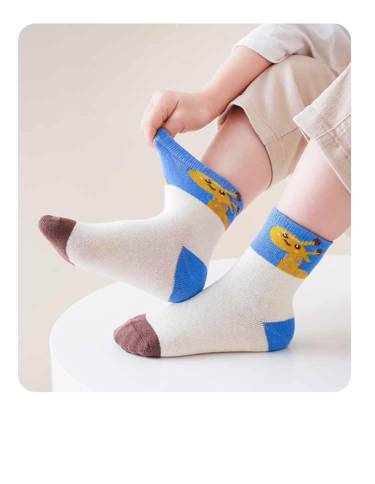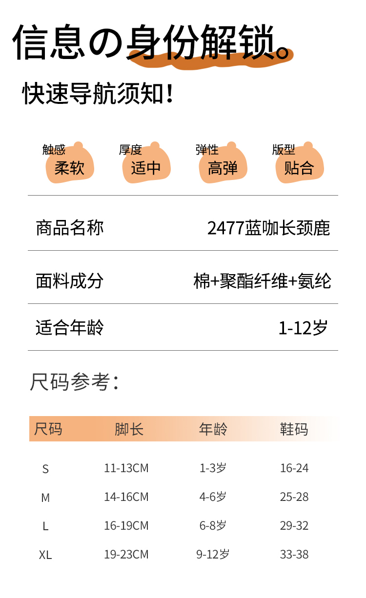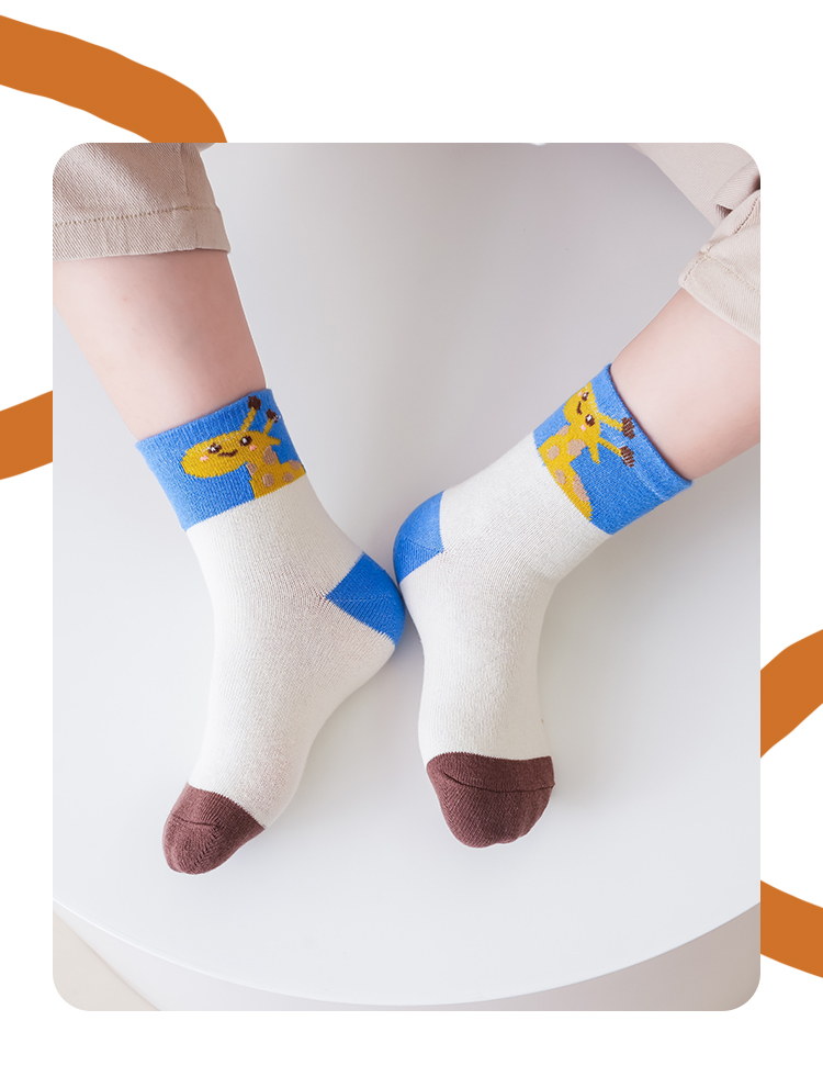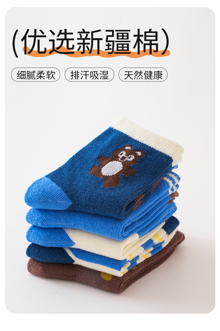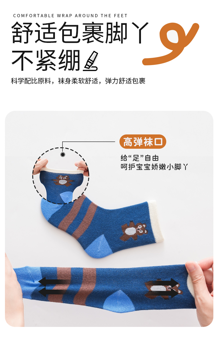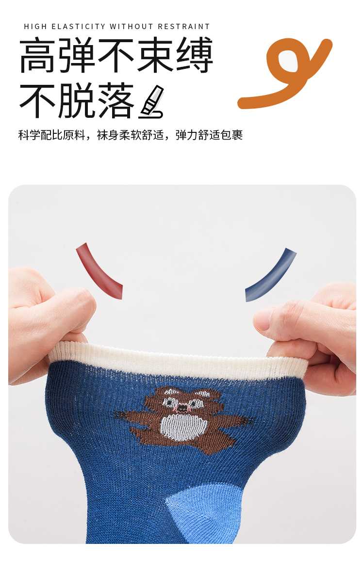 花辞日记儿童无骨袜子2477蓝咖色长颈鹿中筒袜5色组合