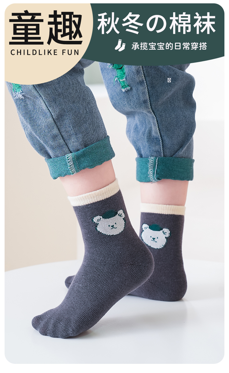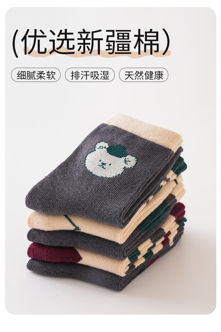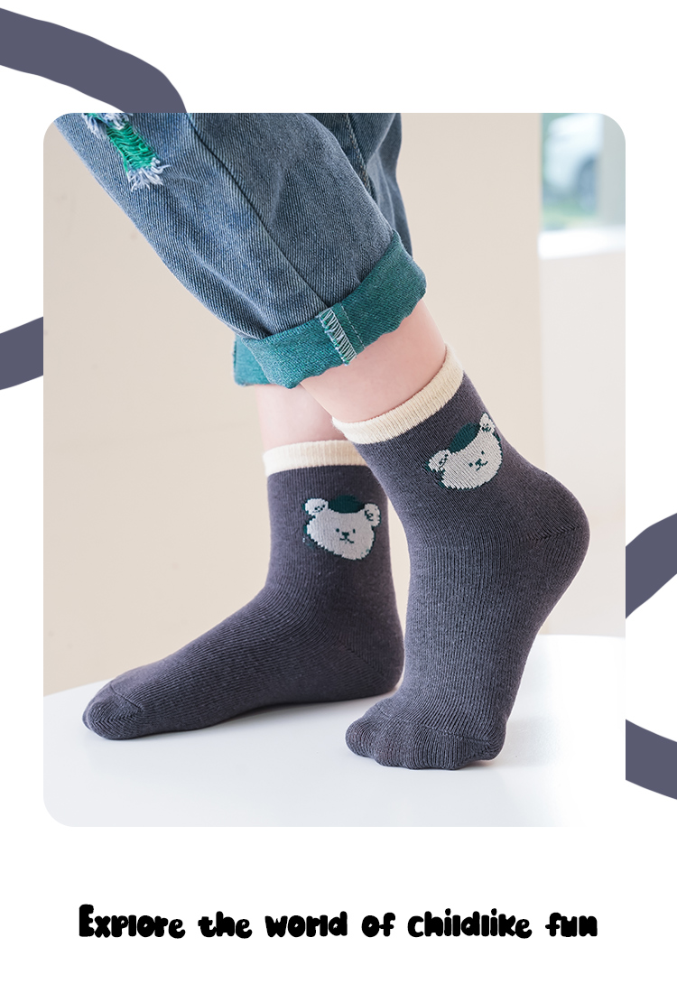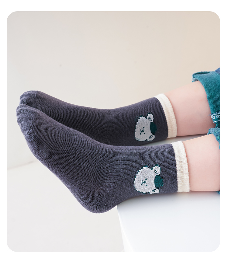 花辞日记儿童无骨袜子2479灰色系小熊中筒袜5色组合