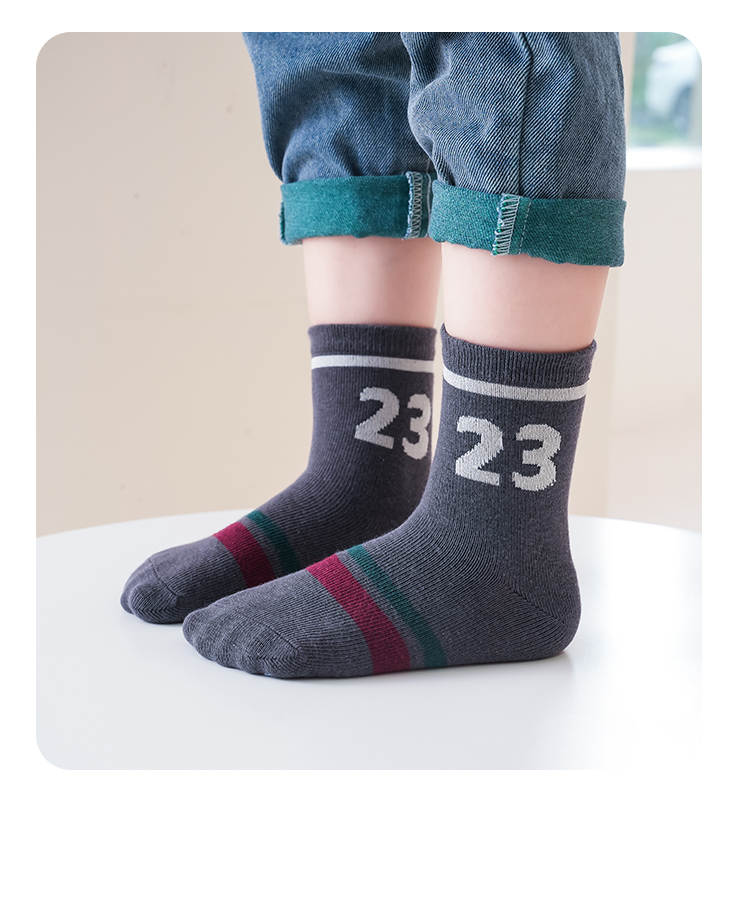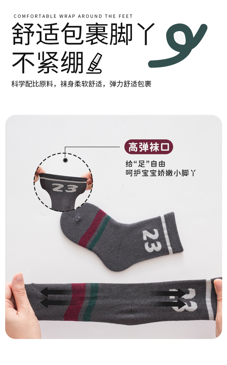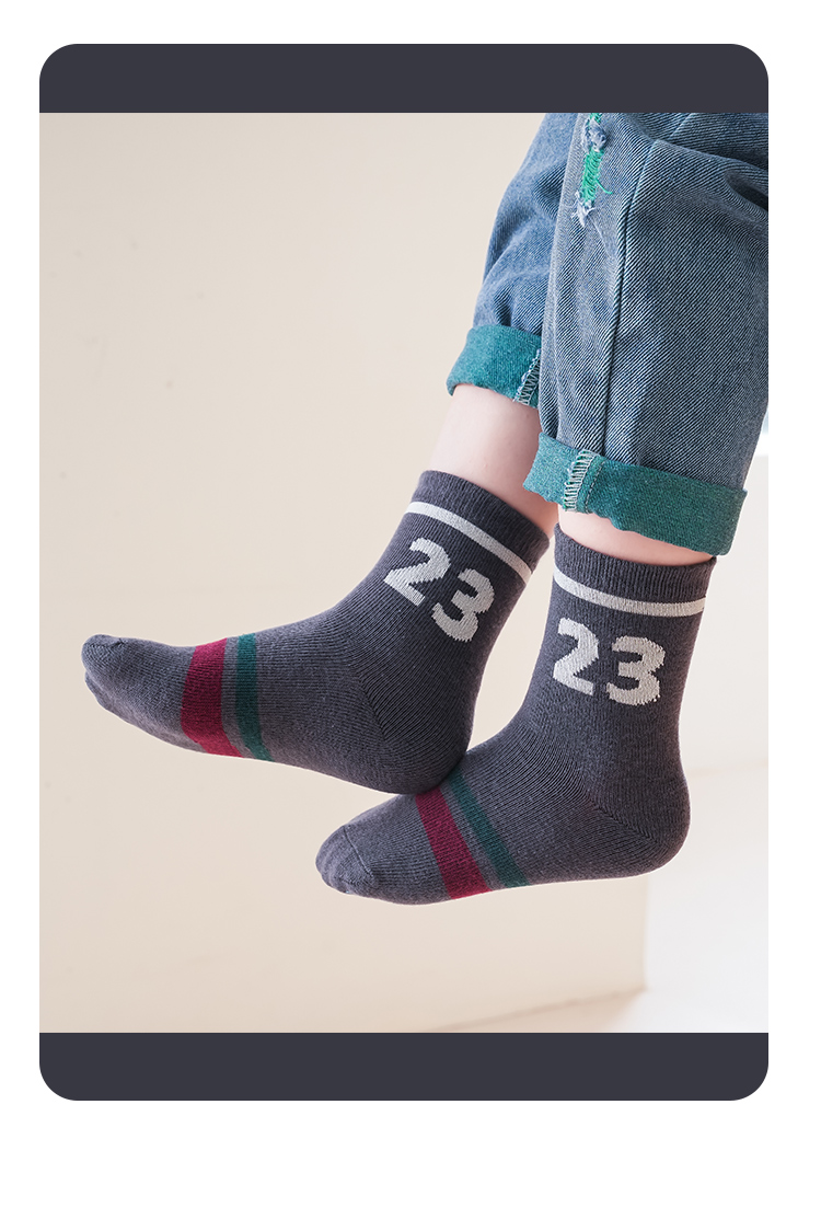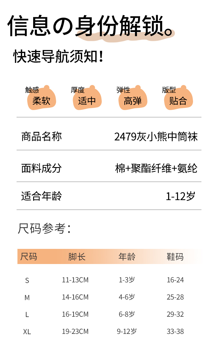 花辞日记儿童无骨袜子2479灰色系小熊中筒袜5色组合