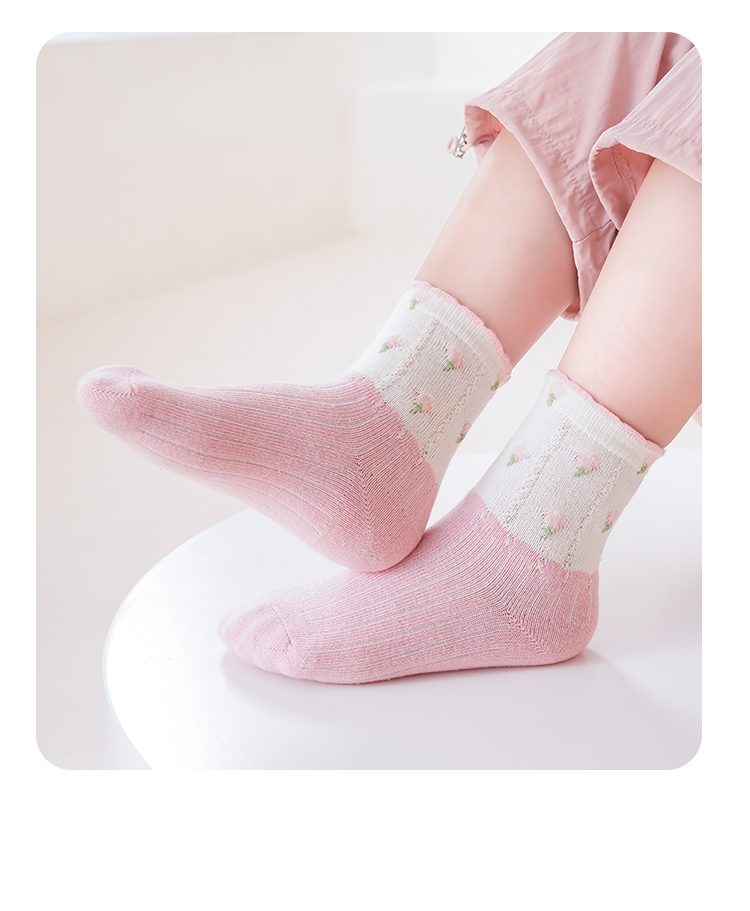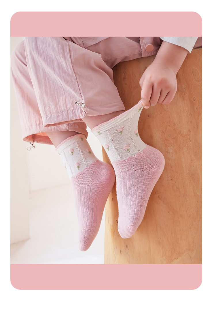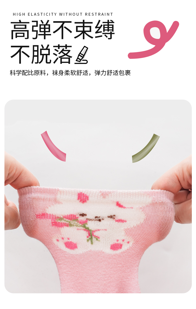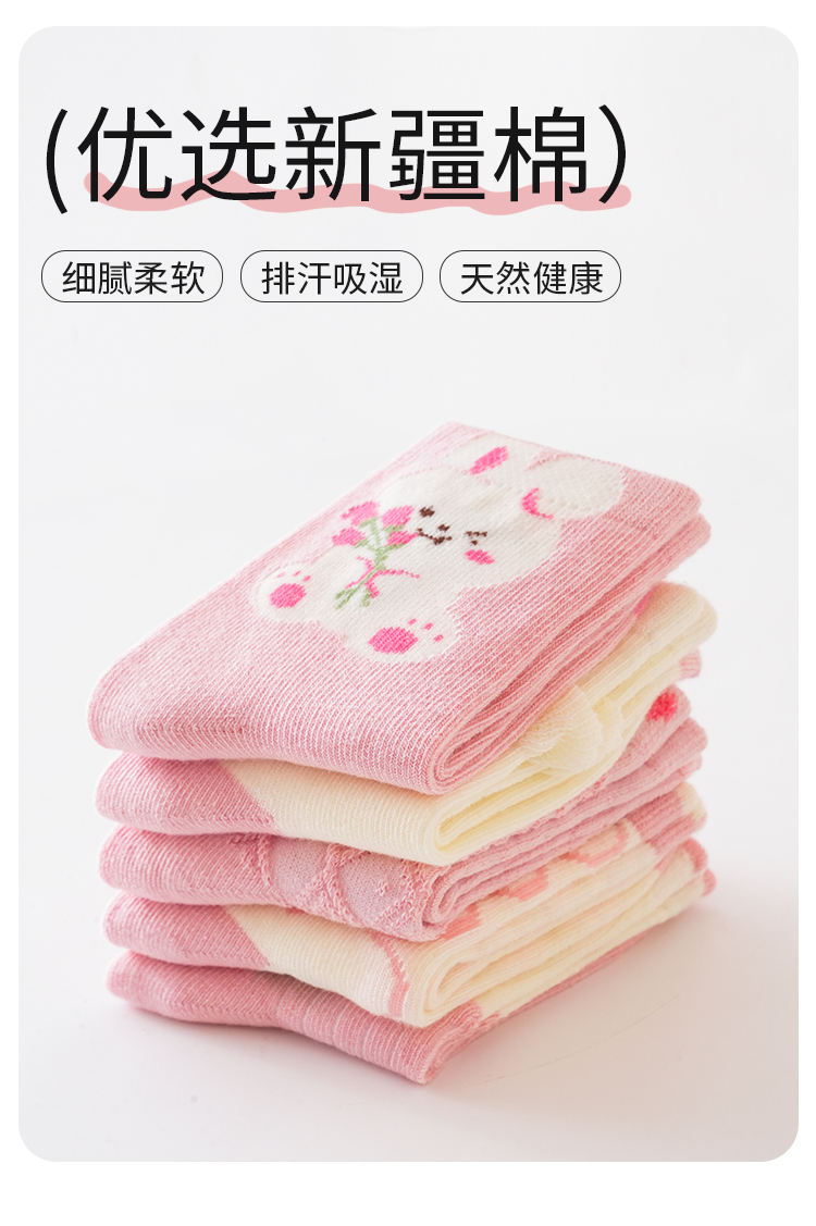 花辞日记儿童无骨袜子2481粉色系兔子中筒袜5色组合