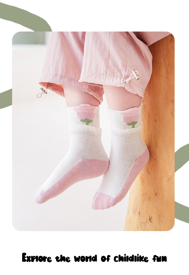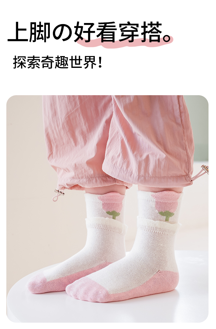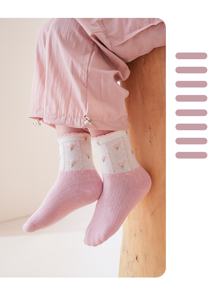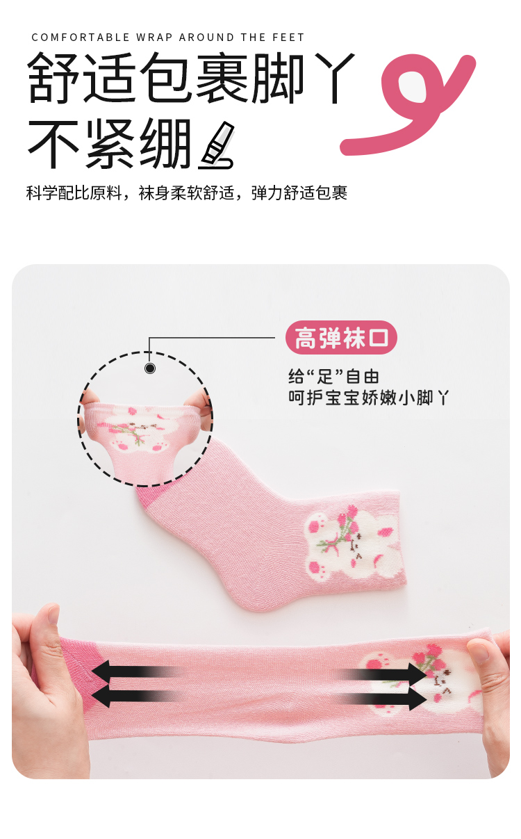 花辞日记儿童无骨袜子2481粉色系兔子中筒袜5色组合