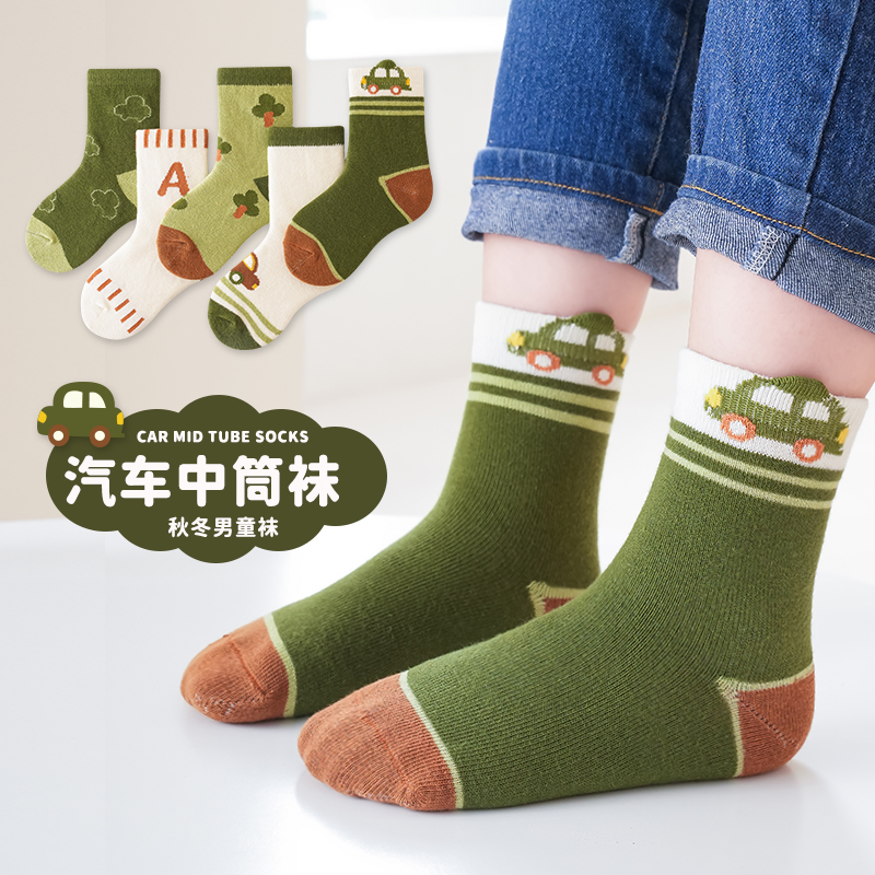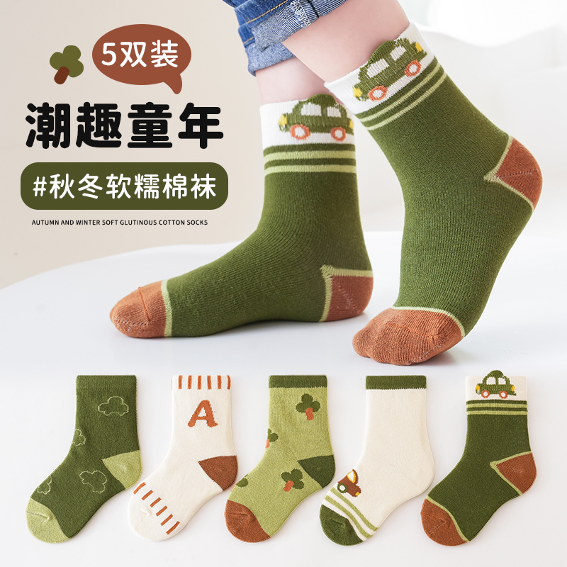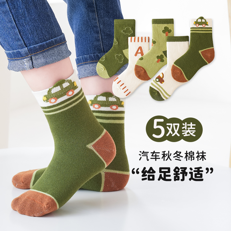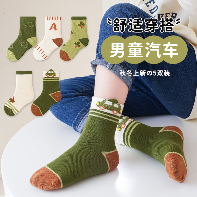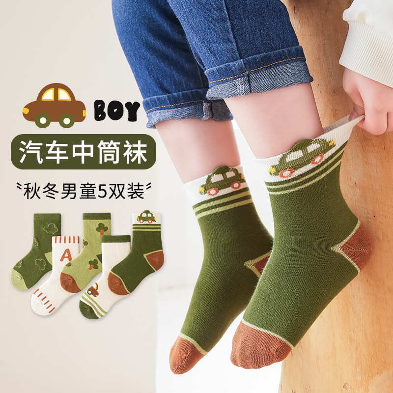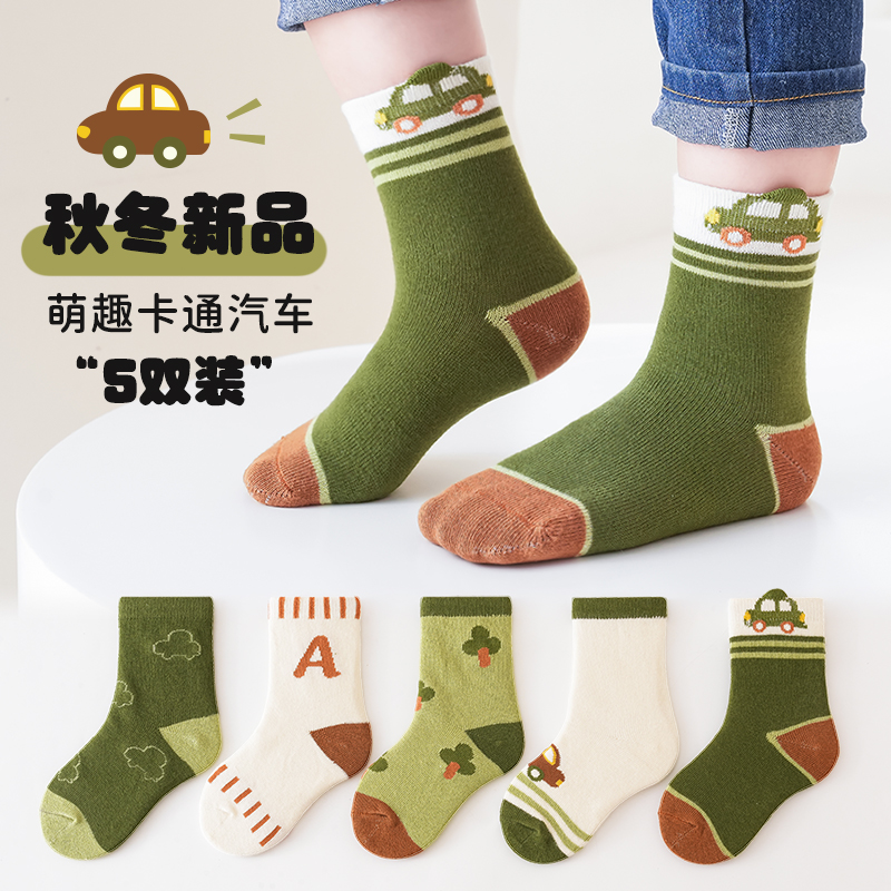 绿色小汽车中筒袜5色组合 【5双装】