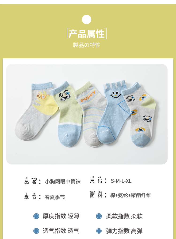小狗网眼中筒袜子【10双装5个图案】