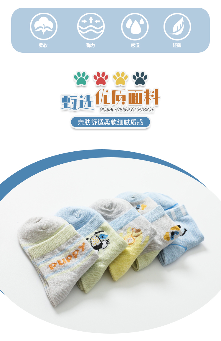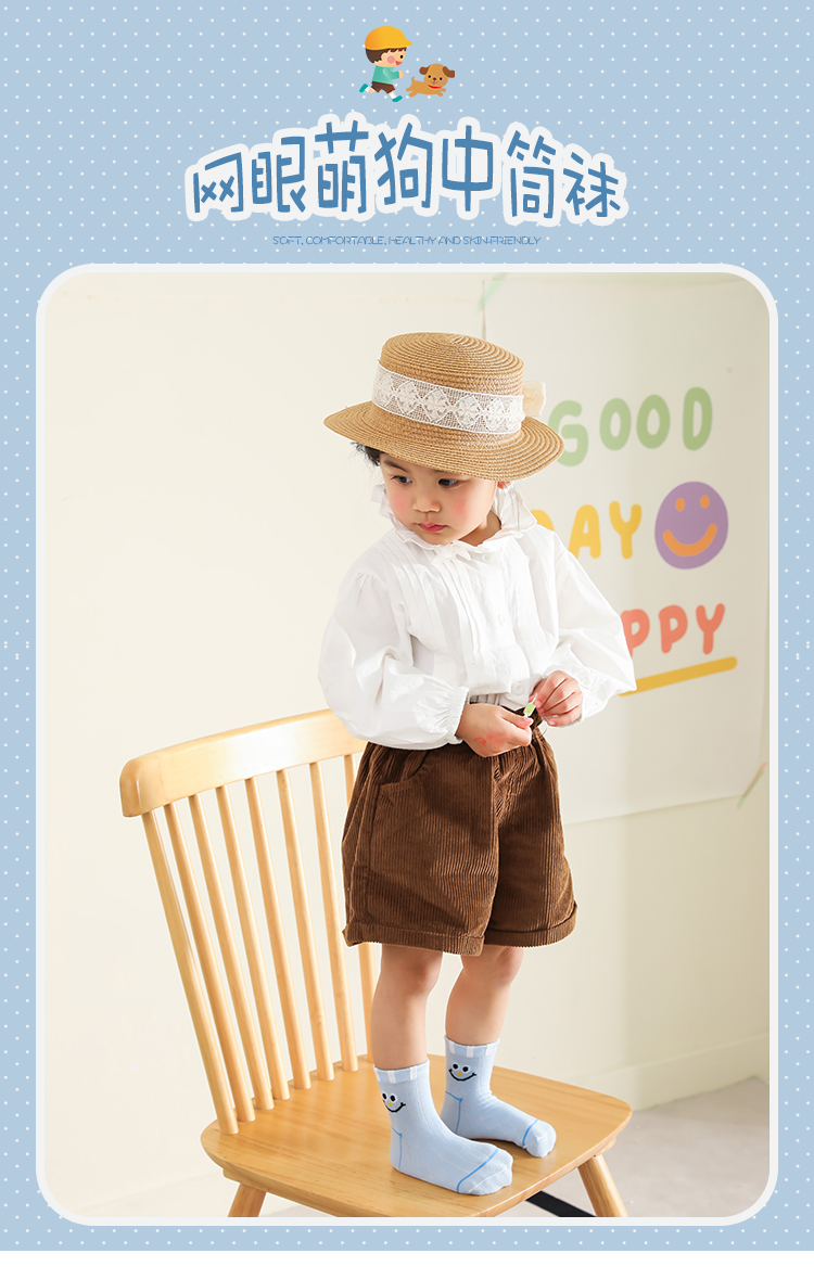 花辞日记纯棉儿童袜小狗网眼中筒袜10双装5组合