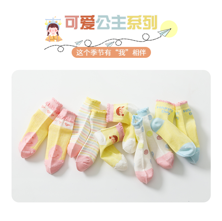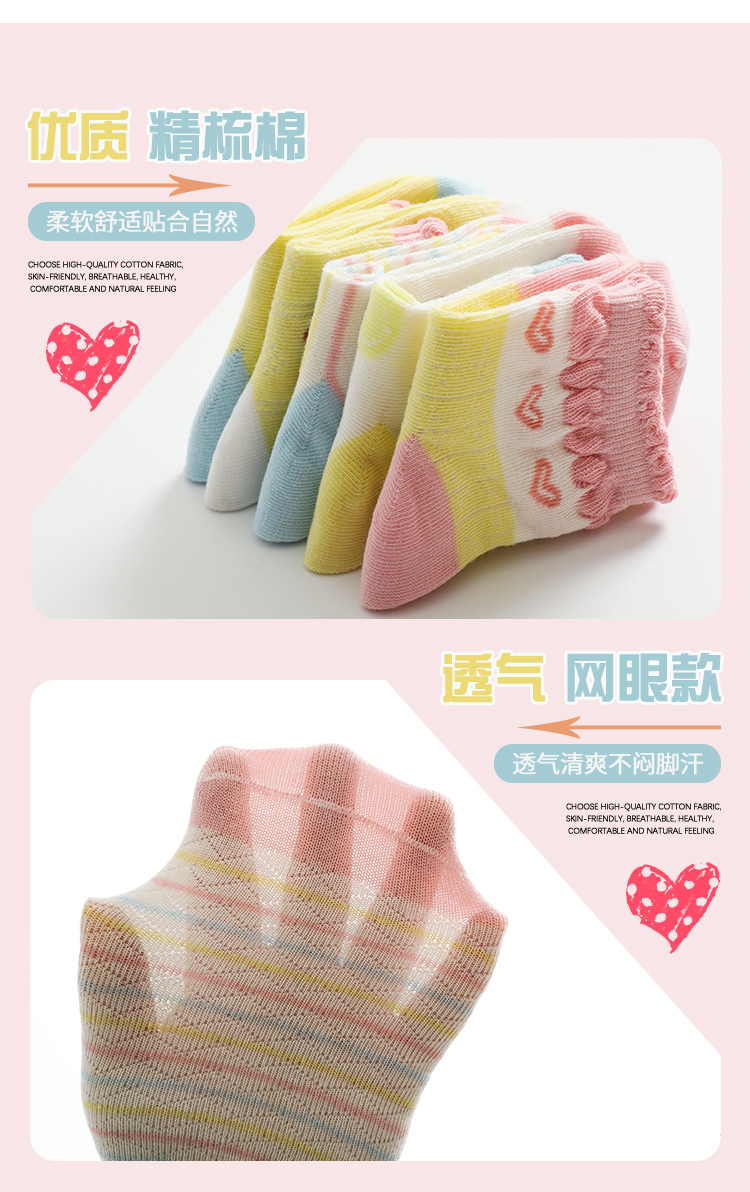 花辞日记纯棉儿童袜子小女孩爱心网眼中筒袜10双装