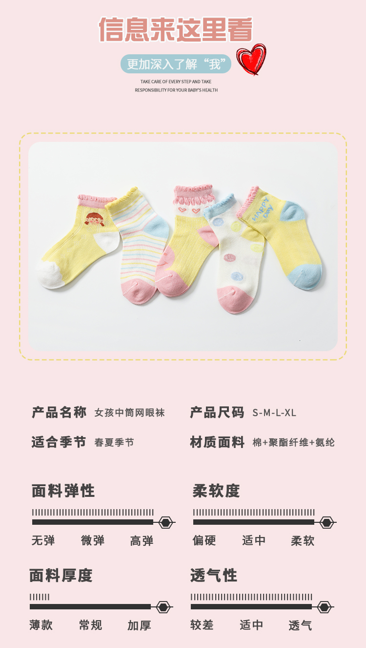 小女孩爱心网眼中筒袜【10双装5个图案】