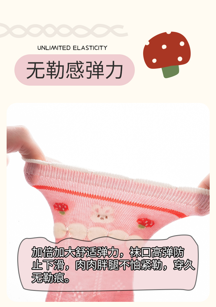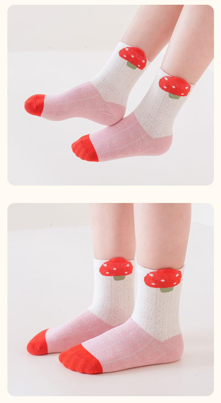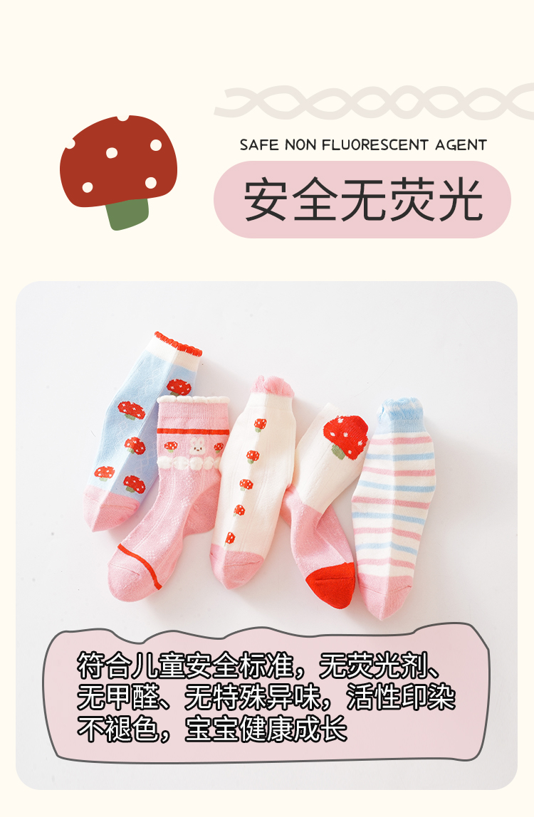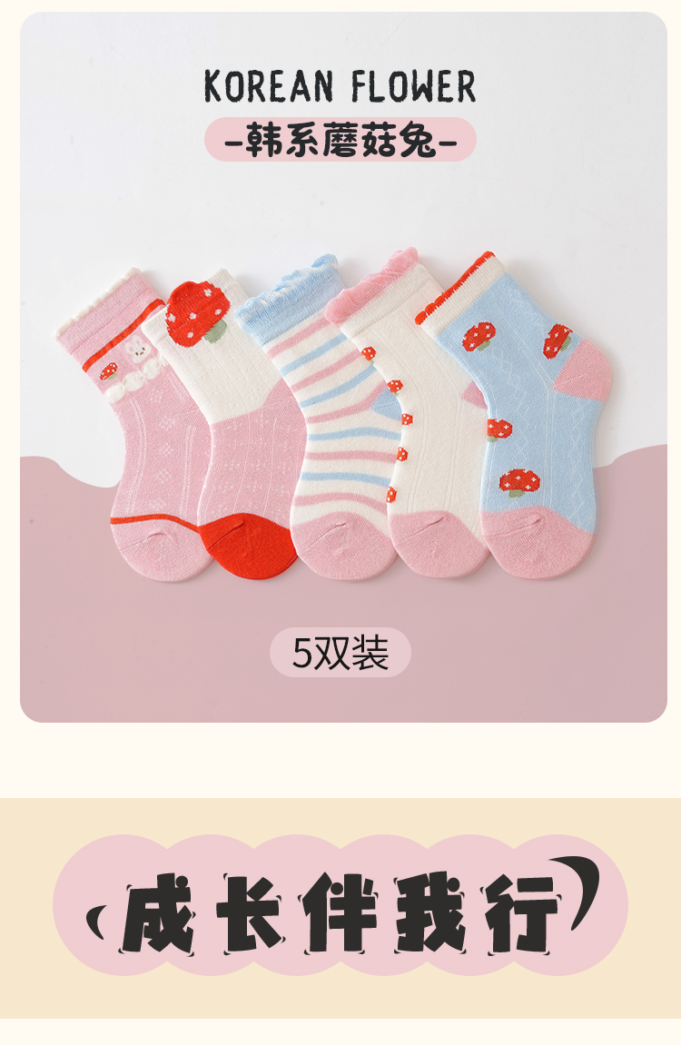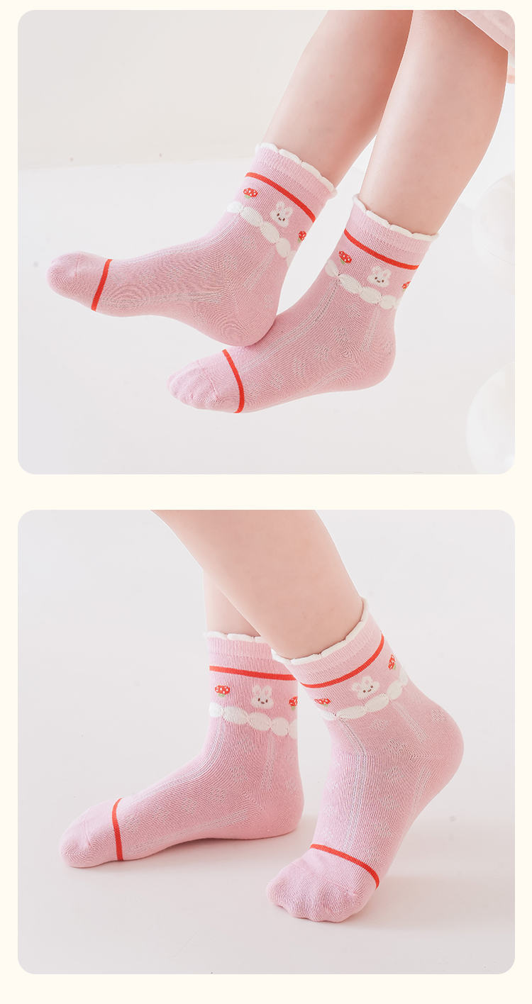 兔子蘑菇粉色系中筒袜【5双装*2包】