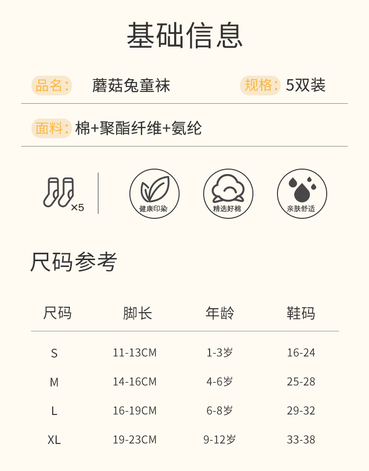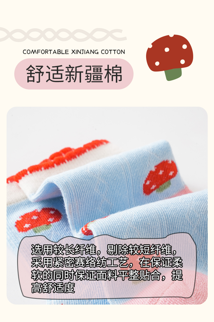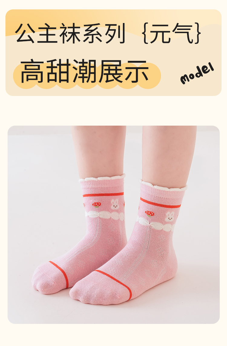 花辞日记纯棉儿童袜兔子蘑菇粉色系中筒袜10双装