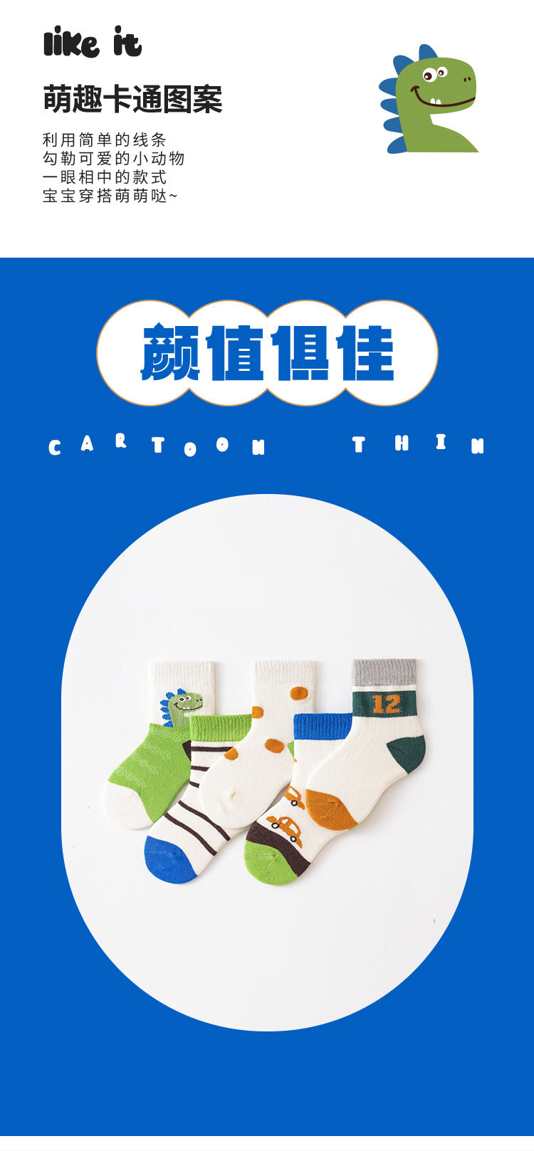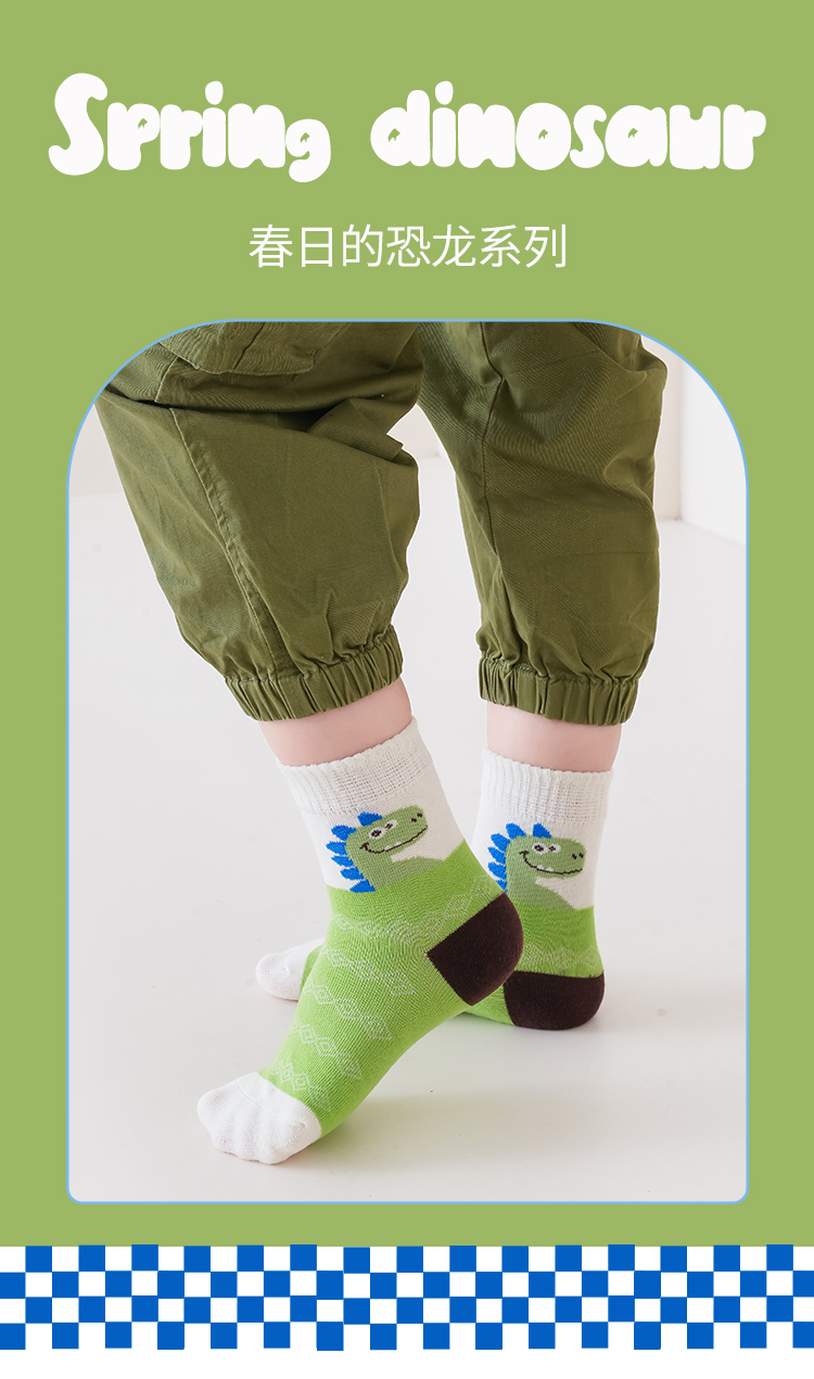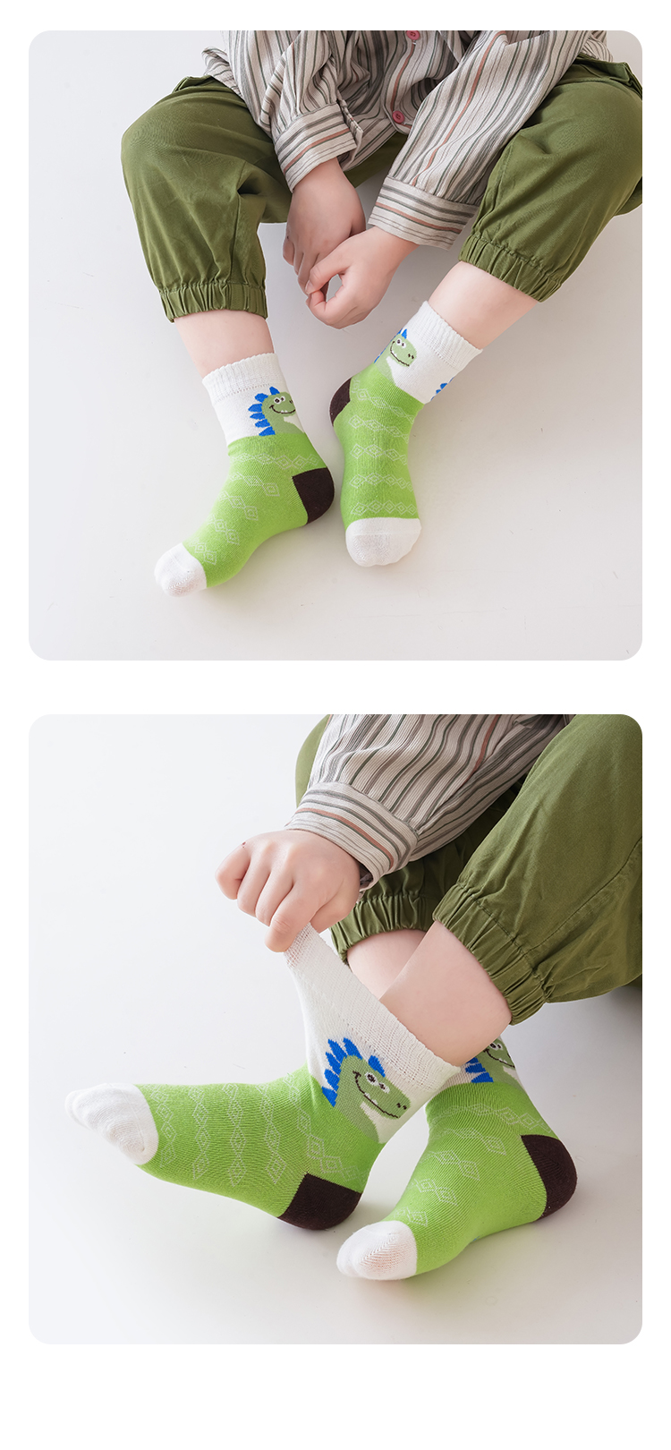 花辞日记纯棉儿童袜恐龙汽车中筒袜【10双装】