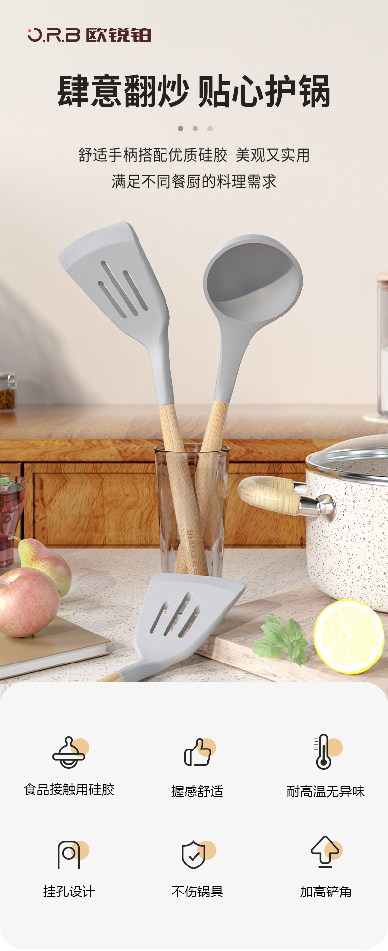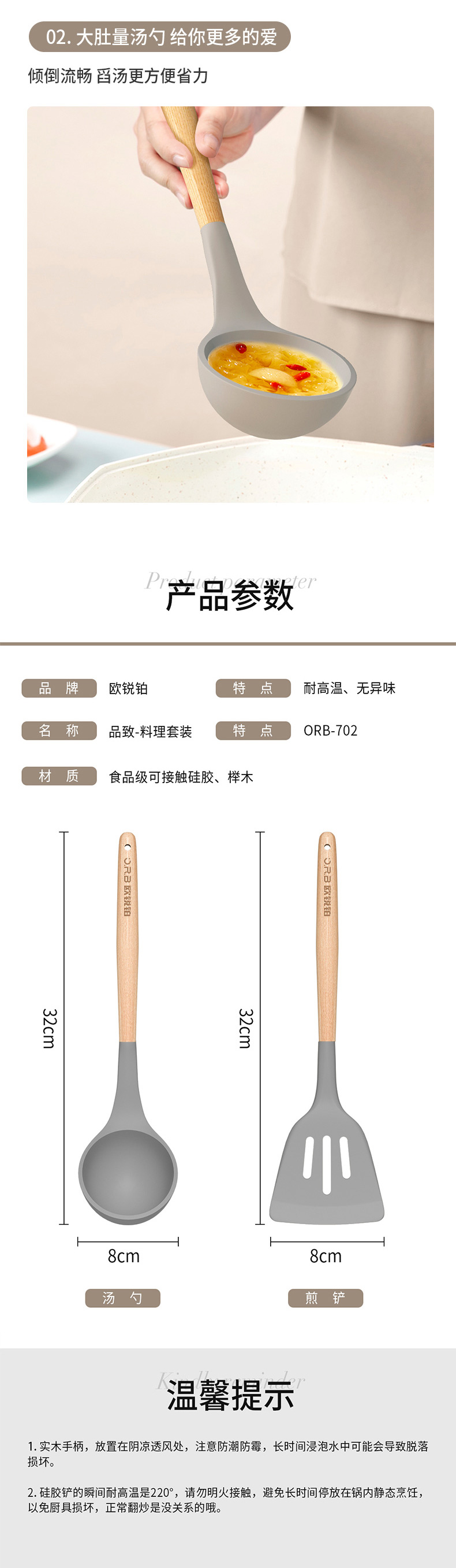 欧锐铂品致-料理套装厨房两件套耐高温硅胶汤勺锅铲套装